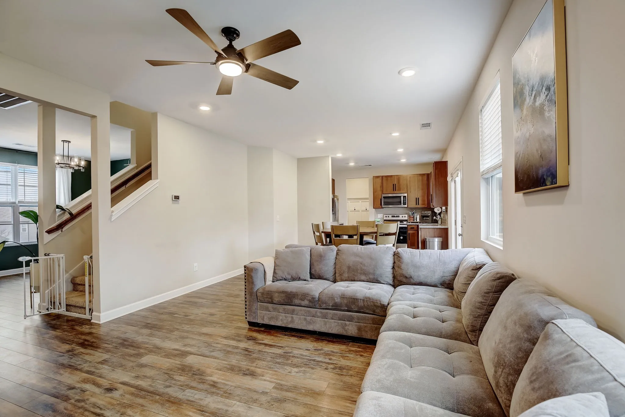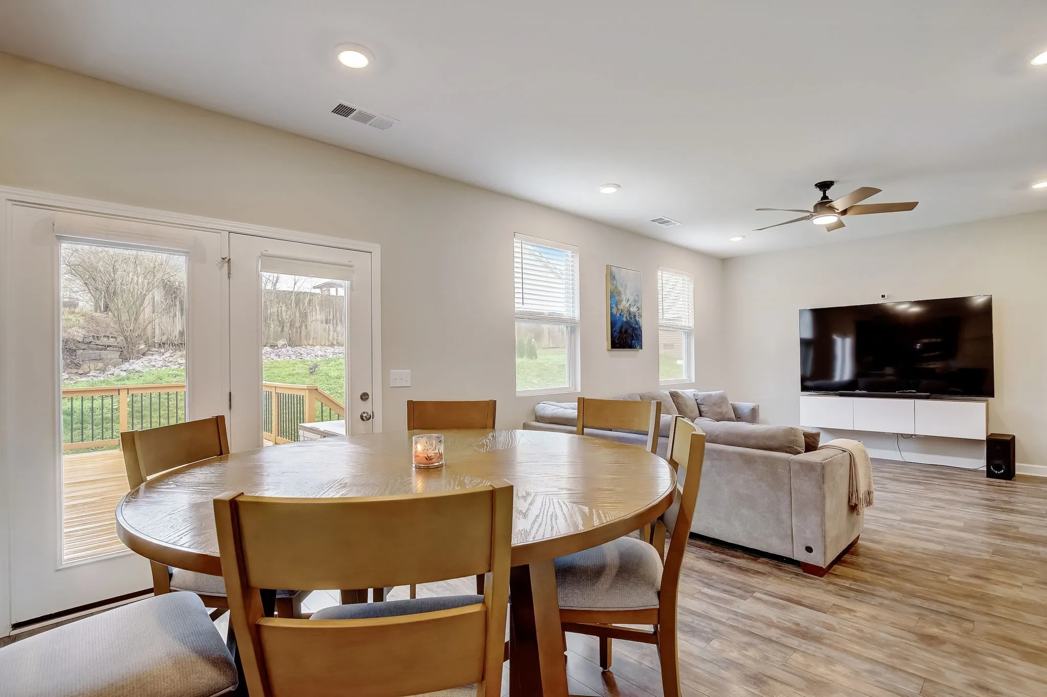 This contemporary style home is less than 4 years old and better than new! Blinds throughout home, tastefully decorated, epoxy coated garage floor. Abundant natural light throughout home. Downstairs flex room can serve as a formal dining room or an office. Open concept kitchen/dining/living room adjacent to generously sized deck- perfect for entertaining! Mud room and a walk-in pantry neighbor the kitchen. 3 bedrooms upstairs. Primary bedroom offers a spacious walk-in closet and the primary bathroom has double vanities and a large linen closet. Flex area upstairs can also be used as office space or a media room. Need storage space? Tons of storage space in the garage, as well as attic storage and enclosed space under the deck perfect for lawn equipment. This property is just 12 miles from downtown Nashville, 7 miles from Percy Priest Lake and 6 miles to BNA airport.