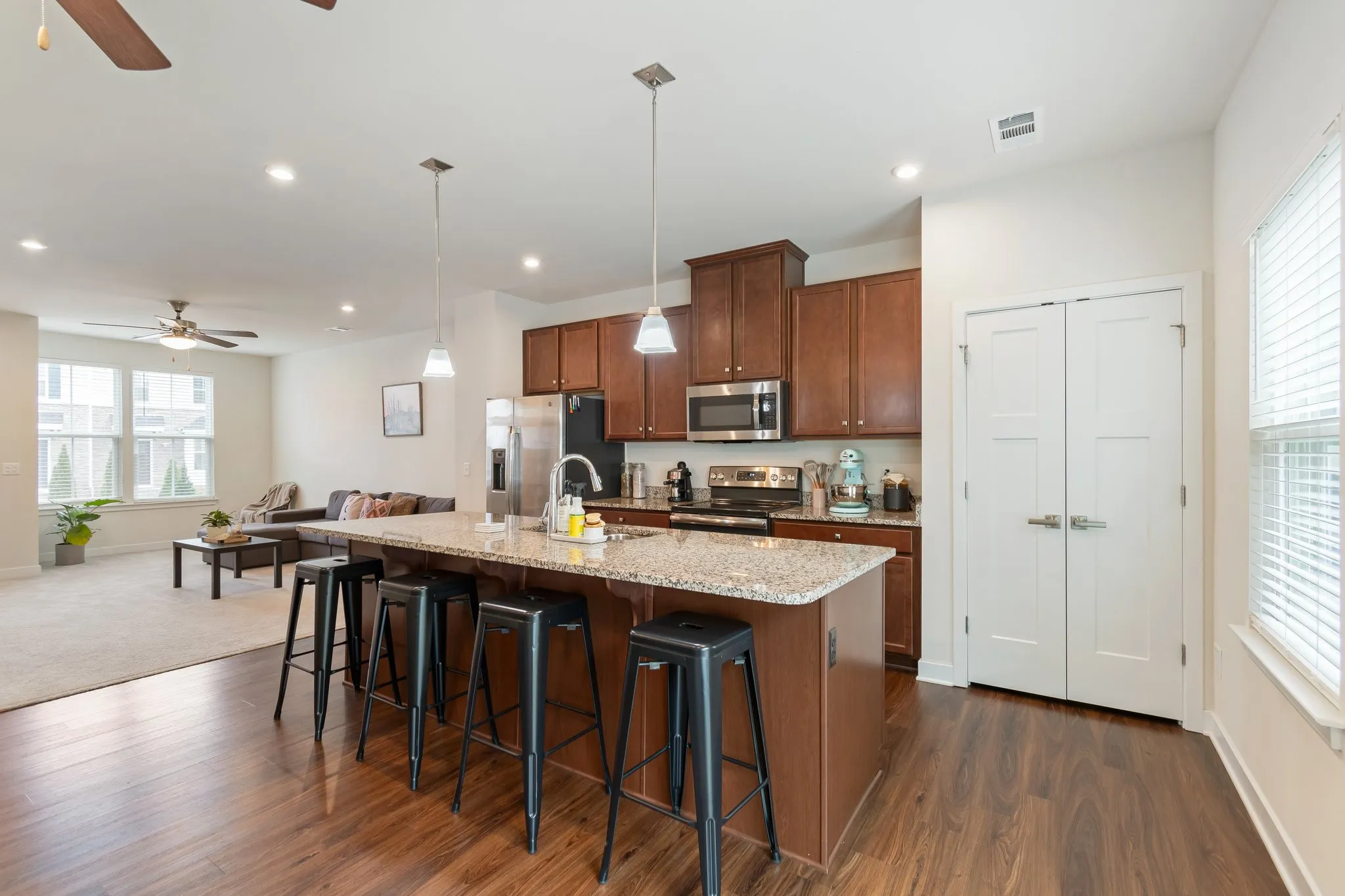 Welcome Home to this beautiful bright and airy east-west facing, 2-story end-unit townhome in a gated community with a pool. Open concept gourmet kitchen featuring a large 9ft kitchen island with extra seating, stainless steel appliances, granite countertops, and dark cabinets. Primary suite features tray ceiling, walk-in closet and private bathroom with dual shower heads and dual vanity. Recessed lighting throughout the home. Enjoy your morning coffee on your front porch while watching the sunrise, and unwind on your patio watching the sunset skies. Location, location! – Conveniently located within 3 miles from I-24, brand new shopping and restaurants at Tanger Outlets, and Mill Ridge park – 5 miles from Long Hunter State Park – 6 miles from Percy Priest Lake – 8 miles from BNA Airport and Recycling Center – 15 miles from Downtown Nashville- Don’t miss the opportunity to call this townhouse your new home! Owner Agent