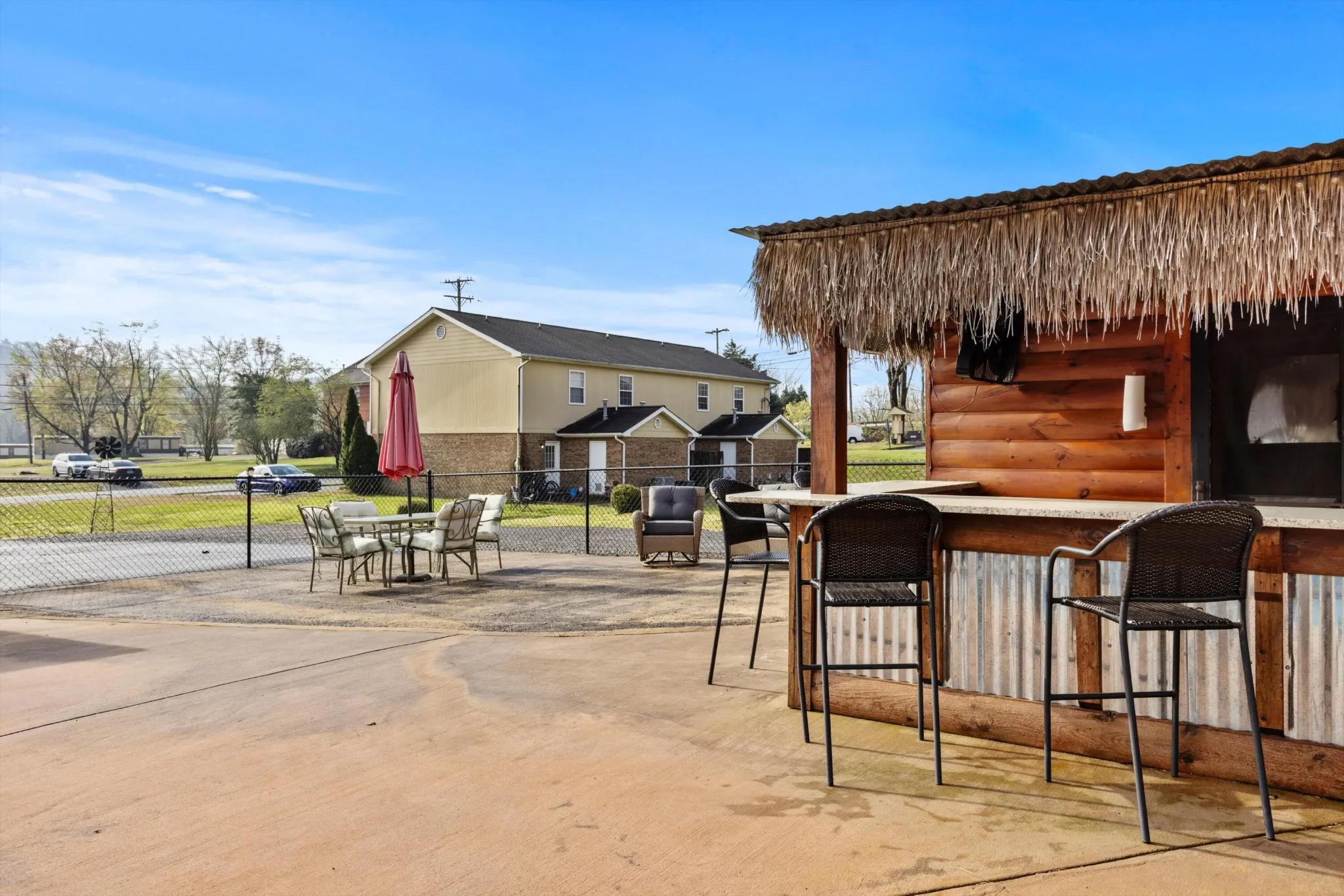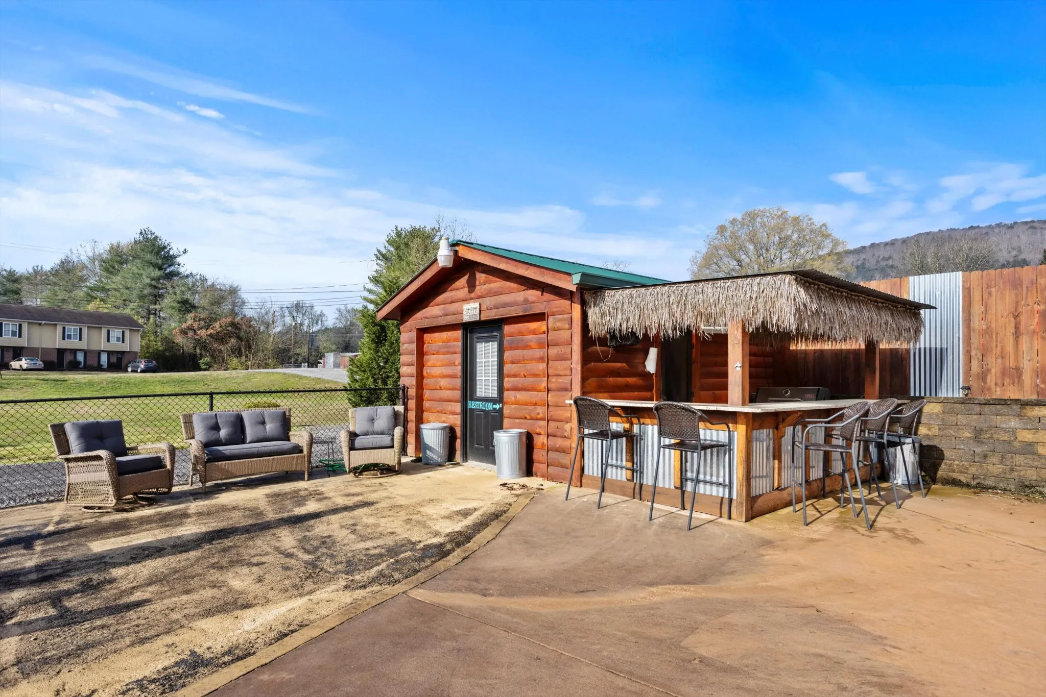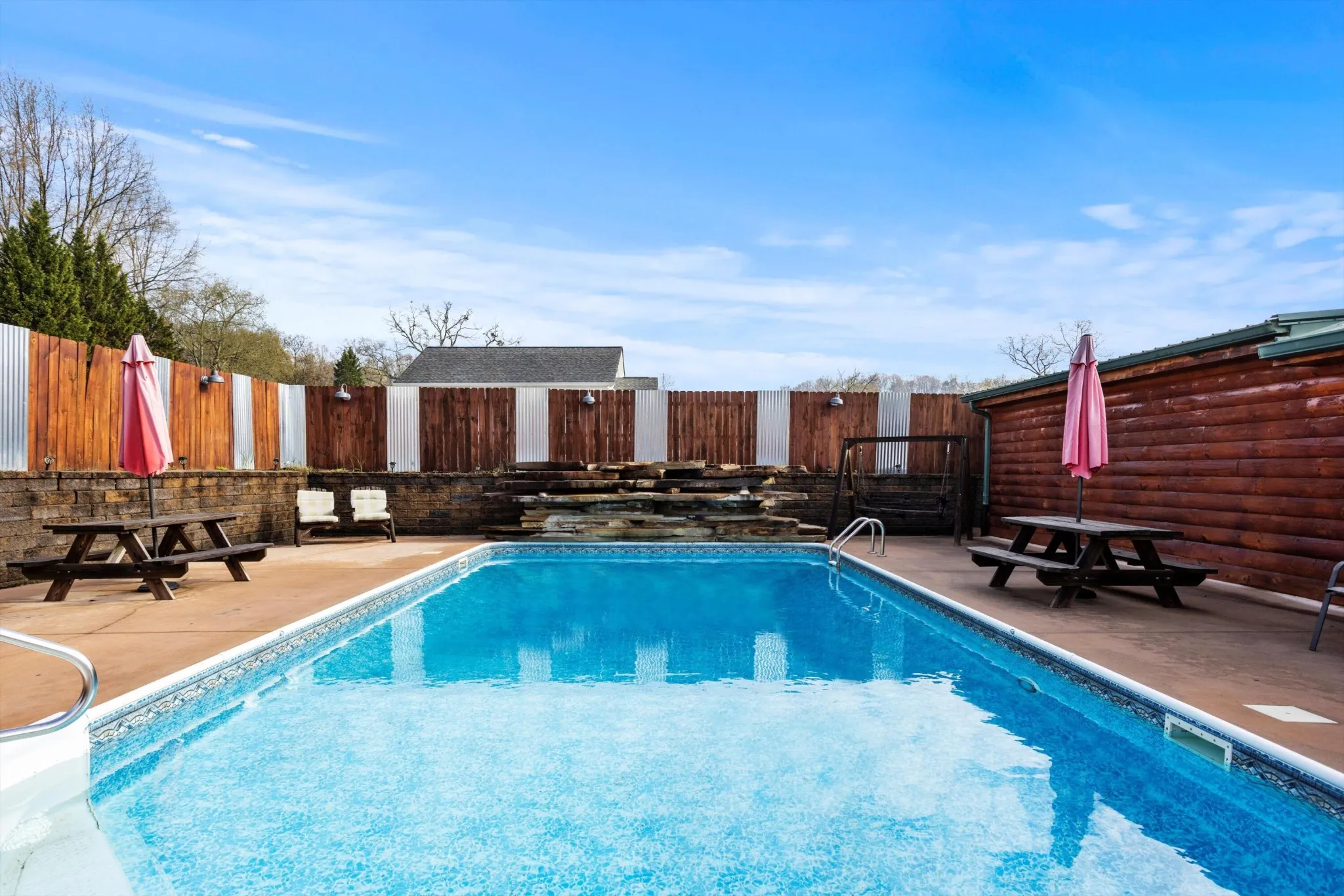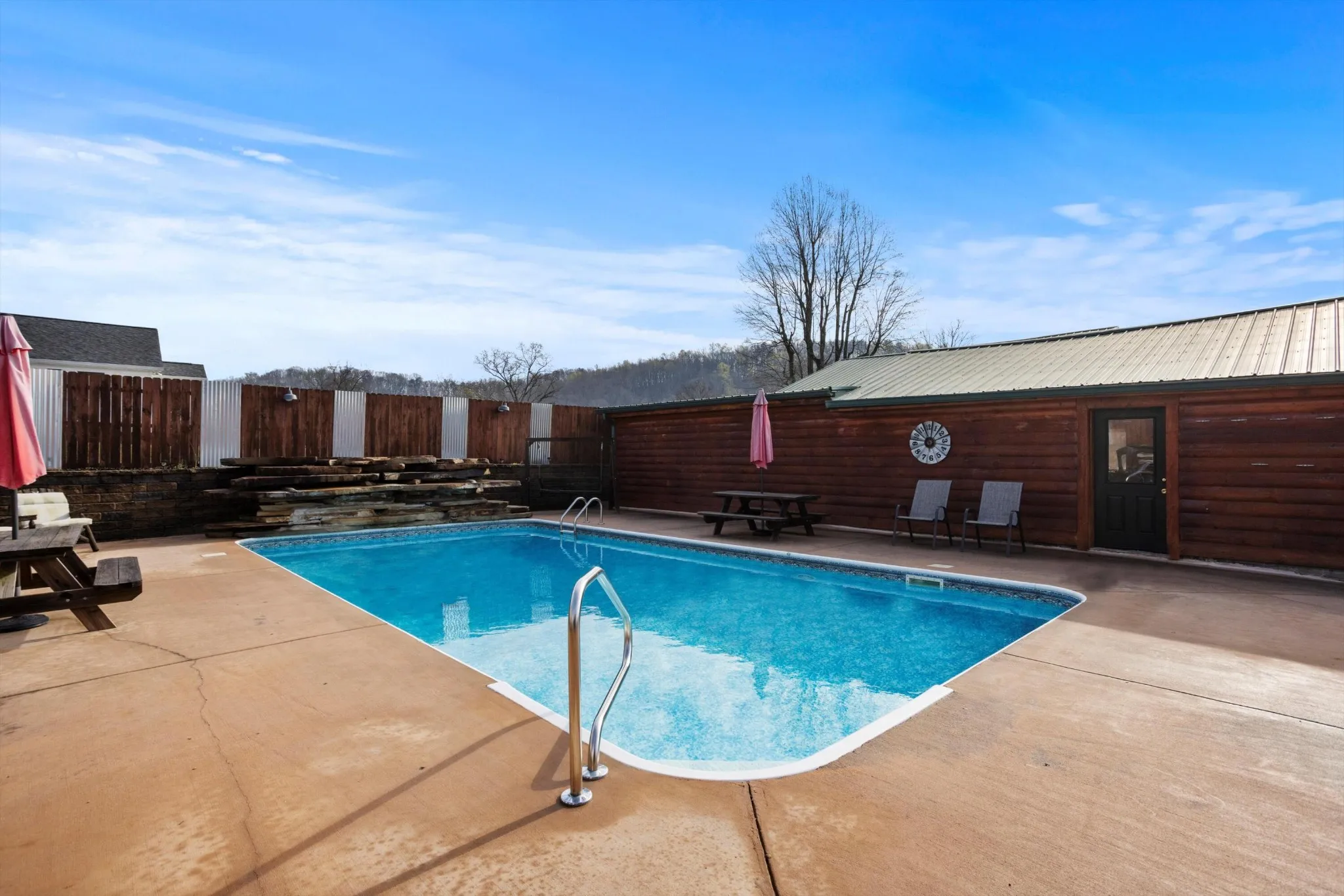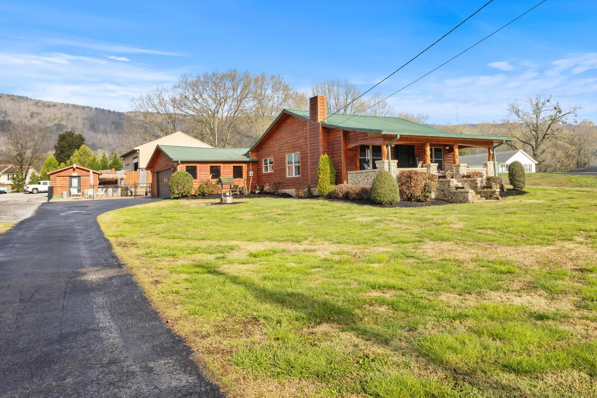 This super unique home is one you will want to see! Situated on over a half acre lot and conveniently located near US-27 for a quick commute to Hixson and Downtown Chattanooga. The home has seen many updates and improvements throughout the years to include a unique log style interior and exterior façade to give it a Tennessee mountain cabin vibe! The home has a beautiful front porch overlooking a large front yard, a spacious living area, kitchen and dining areas, 3 bedrooms and 2 full bathrooms, a separate office, attached garage, an additional pool house with tiki bar overlooking a beautiful inground swimming pool with a rock waterfall gratto for added beauty as you enjoy summers entertaining in your fun new back yard. Out back, your car enthusiasts, wood working hobbyist or work from home business owner can enjoy 3,300 square feet of garage space for plenty of storage for lawn equipment, auto restorations or anything else you could dream of. This home will not last long so please schedule your private tour before it’s gone!