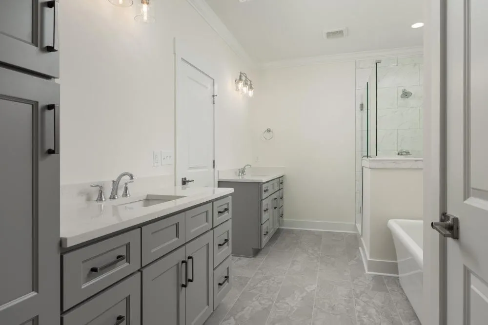 Master Suite Retreat: The large master bedroom is a sanctuary of its own, offering separate vanities, a walk-in closet, a soaking tub, and a tiled shower. Immerse yourself in luxury and tranquility with these well-appointed features.