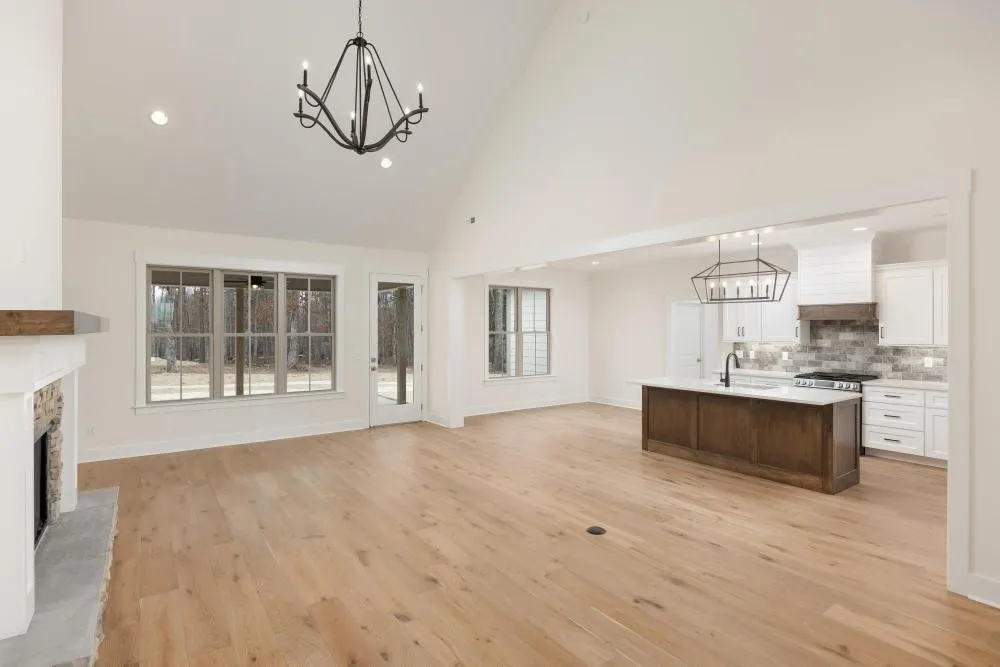 Open Concept Living: The heart of the home is the inviting living space, anchored by a stunning stone gas fireplace that adds warmth and charm. The seamless flow extends to the dining area and a chef’s dream kitchen.