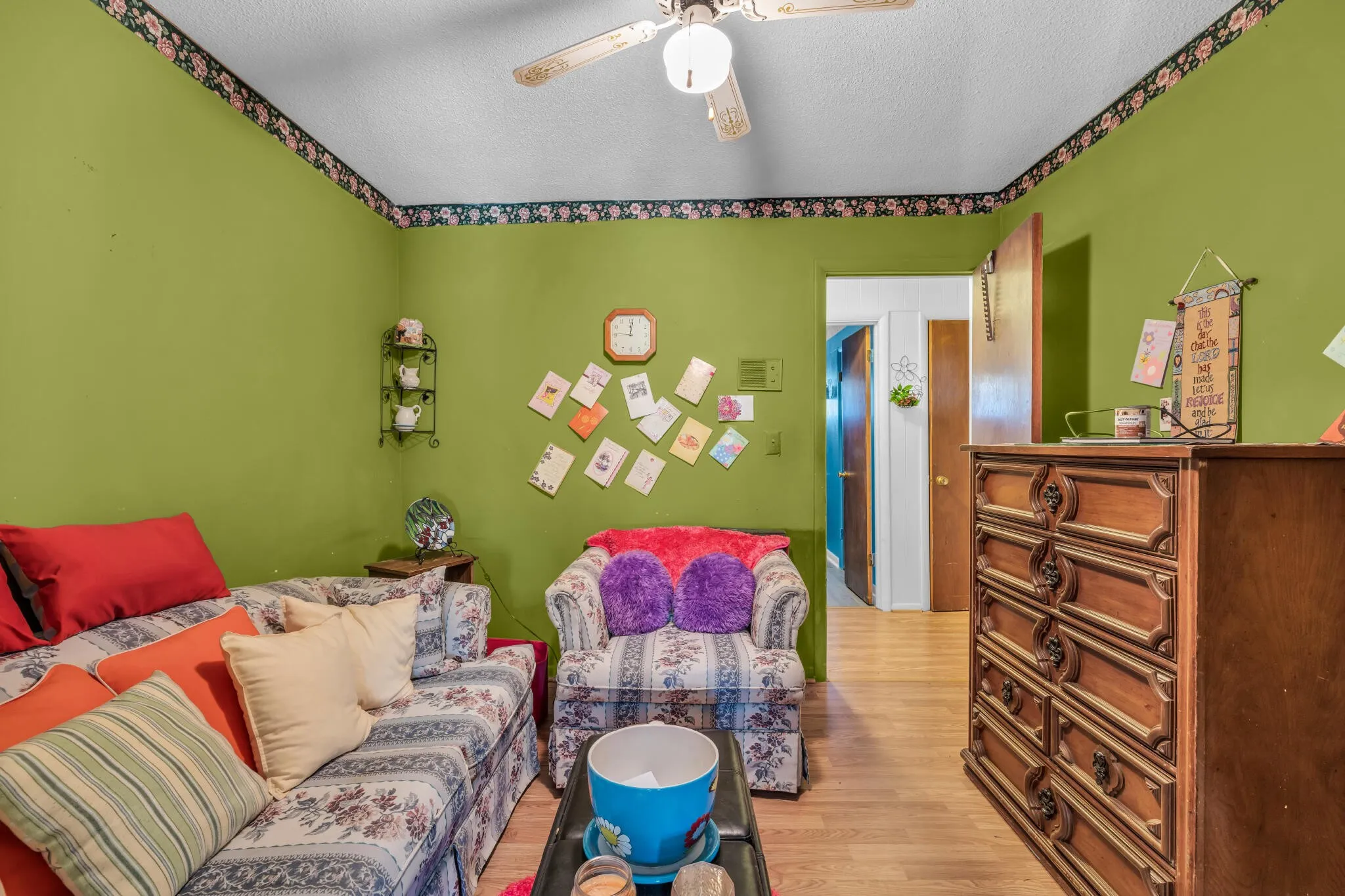 Welcome to Spradling Road, a tranquil country retreat. Enjoy your morning coffee on the porch while listening to the melodies of birds. Take a stroll around the spacious yard and decide where to plant herbs, and vegetables or set up a chicken coop. The cozy kitchen includes an eat-in area, vintage hardwood cabinets that offer plenty of storage space, and a fireplace to settle into warm evening conversations. Entering the double doors from the driveway, you’ll find a long living area that connects directly to the kitchen. This space features a walk-in pantry and laundry room with ample shelving to store all your garden canned goods, just steps away from the kitchen. The original living room has beautiful hardwood flooring, and upfront, there is additional space perfect for entertaining or family gatherings. Down the hallway, an updated full bath, three bedrooms, and a couple of hall closets await. A small sitting room is tucked away off the main room for your reading and writing pleasure. The opposite side of the kitchen leads back to the garage converted into a den. With a little tender loving care and some elbow grease, this tranquil country home can soon be yours.