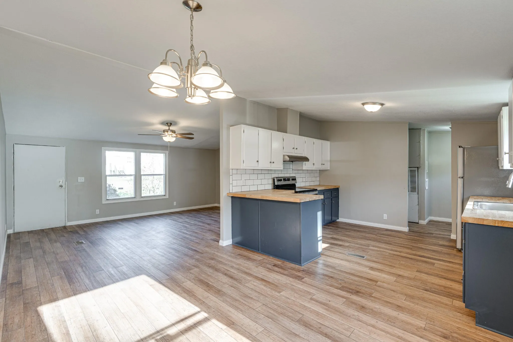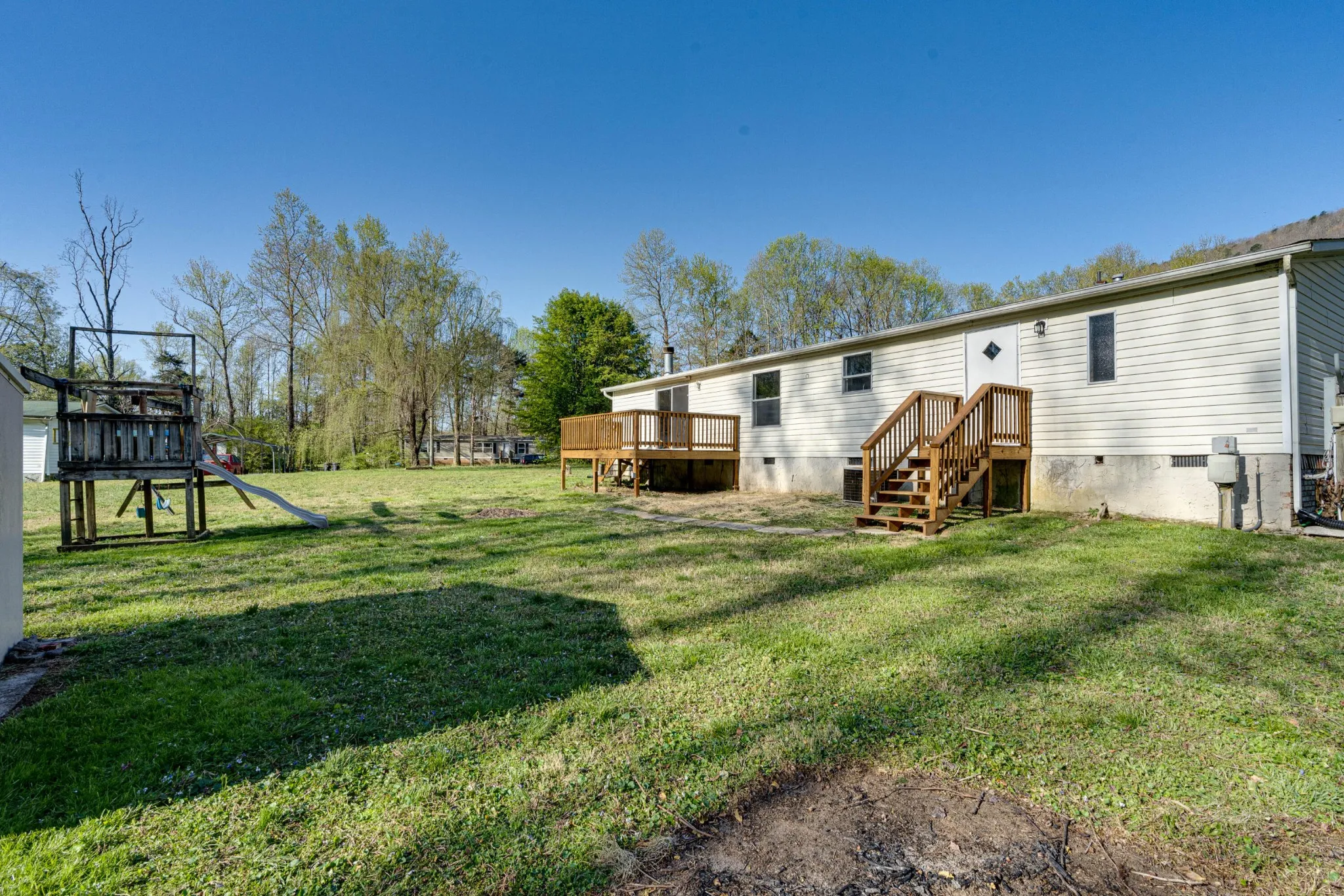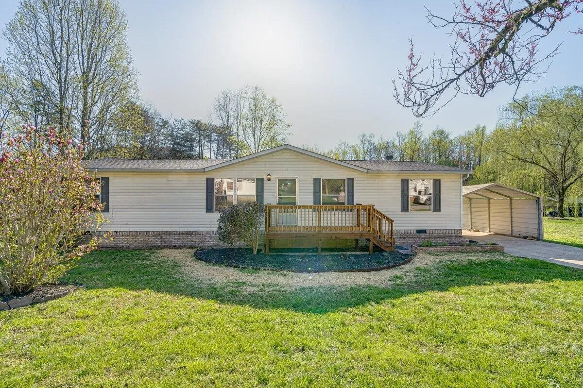Come see this GORGEOUS, NEWLY RENOVATED home in Soddy Daisy! This 3br, 2ba home was manufactured in 2000 and has been placed on a permanent foundation on a large corner lot in a quiet cul-de-sac. The property was just updated head to toe featuring a new roof, new flooring, new paint, new cabinets and countertops, new bathrooms, new front and back decks, and more!! Entering the home, you are welcomed into an open living room with vaulted ceilings, looking back to the gorgeous kitchen with food-prep safe butcher block countertops, subway tile backsplash, and stainless appliances. On one side of the main living space, you will find two good sized bedrooms that share a beautifully updated hall bath as well as additional living space with a large den. But you will fall in love with the owner’s suite on the other side of the home! It features a large en-suite bathroom with a custom tile walk-in shower as well as a garden tub to relax after a long day. There is so much to be said about this property, you’ll just have to see it yourself! Schedule your showings today, this won’t last long!