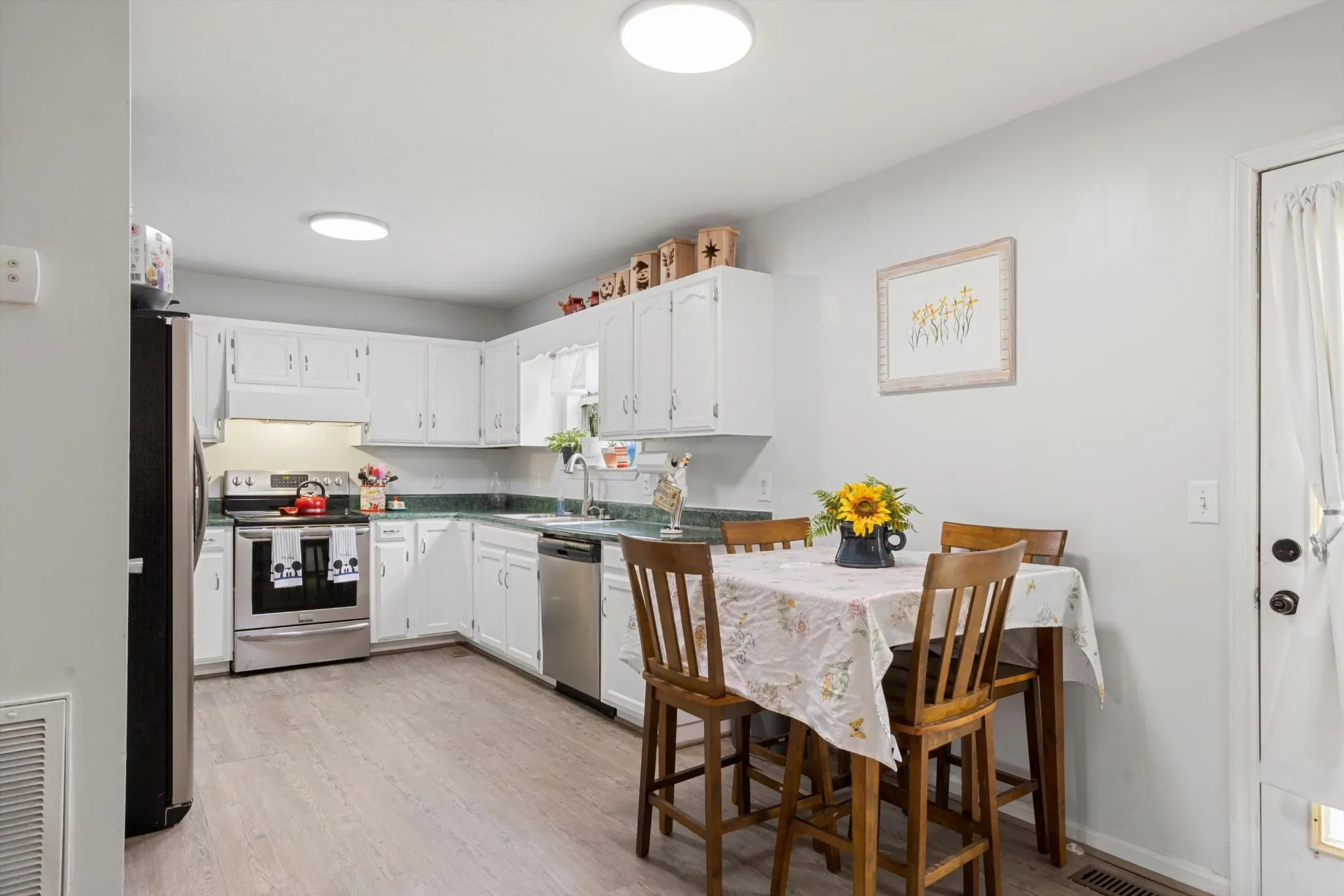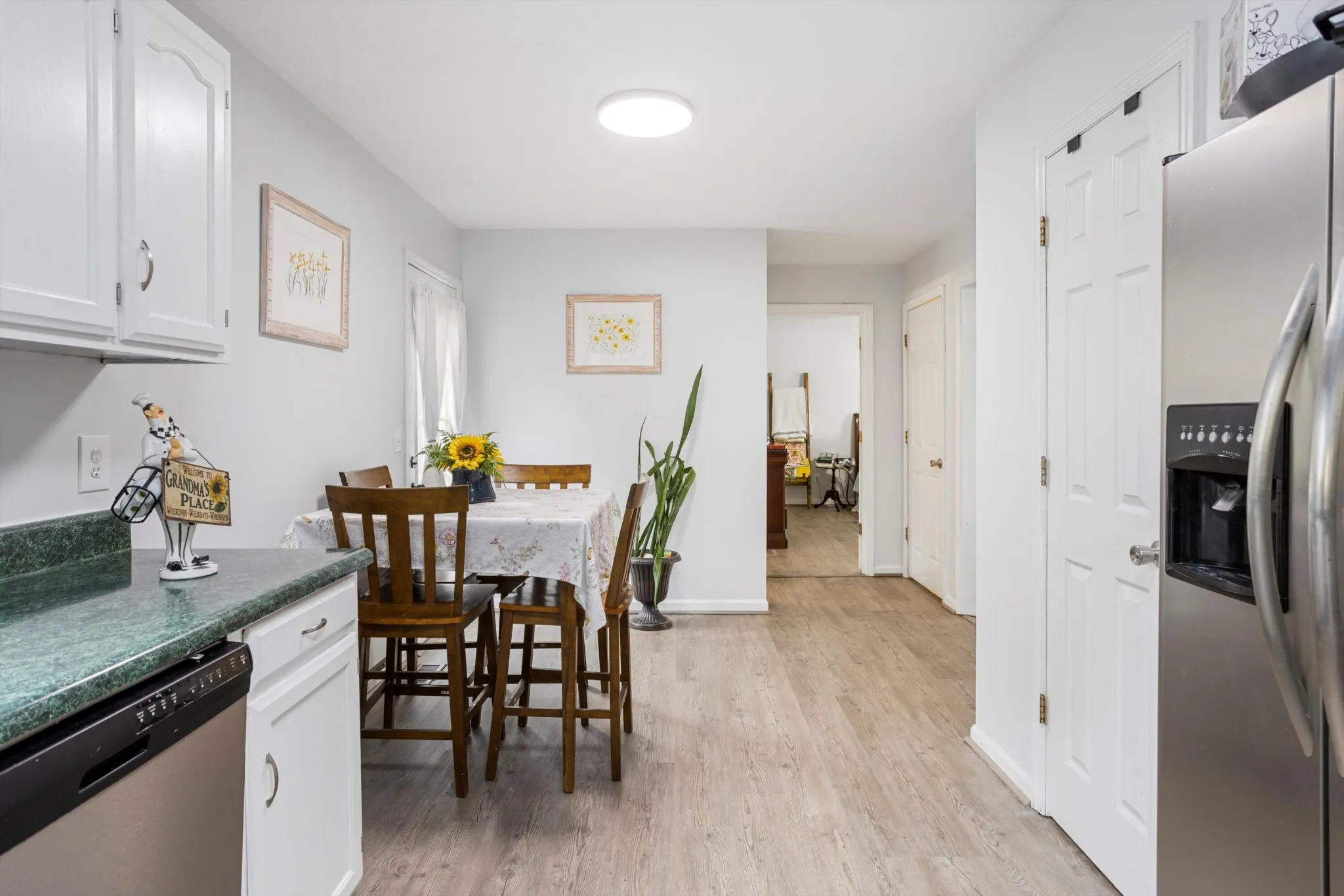 Experience the charm of this stunning two-story home with a cozy covered rocking chair front porch. As you step inside the main level, you’ll find a beautifully designed living room with custom-fit wood blinds, perfect for relaxing or entertaining. The kitchen with a dining area features modern appliances and ample storage space. The main level also offers a spacious owner’s suite with a full bathroom and convenient access to the back deck, which overlooks the large yard. Upstairs, you’ll find two more spacious bedrooms and a full bathroom. Both bathrooms have been recently updated with new paint, mirrors, and fixtures, providing a fresh and modern feel. The partial basement has a two-car attached garage, providing convenient parking and additional storage space. This home is located in a friendly neighborhood, offering a peaceful atmosphere and ample outdoor space. With its charming features and modern updates, this home is the perfect place to call your own.