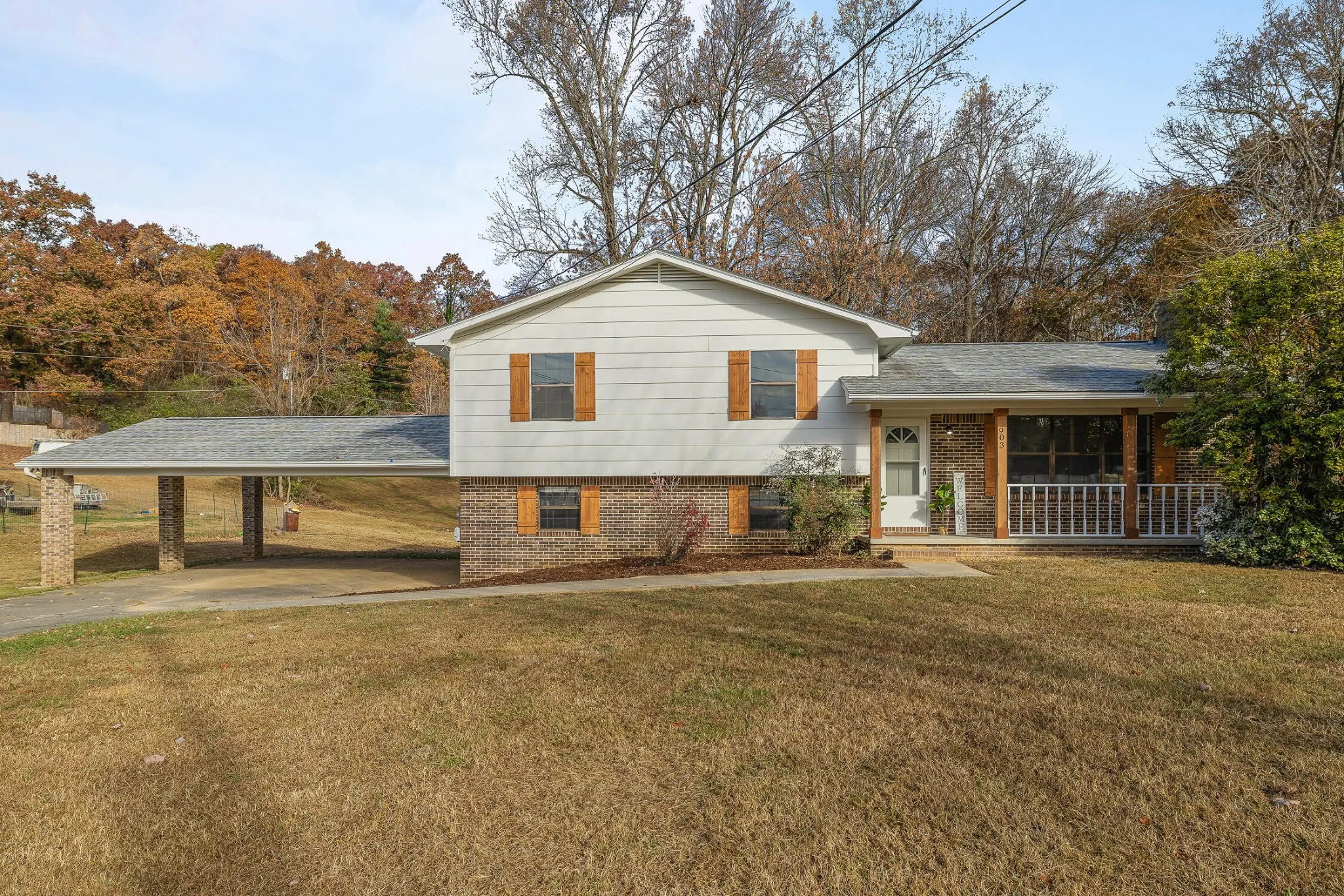 As you approach, a large carport welcomes you, providing convenient covered parking. The front porch invites you to unwind, setting the tone for the warmth and character found within.