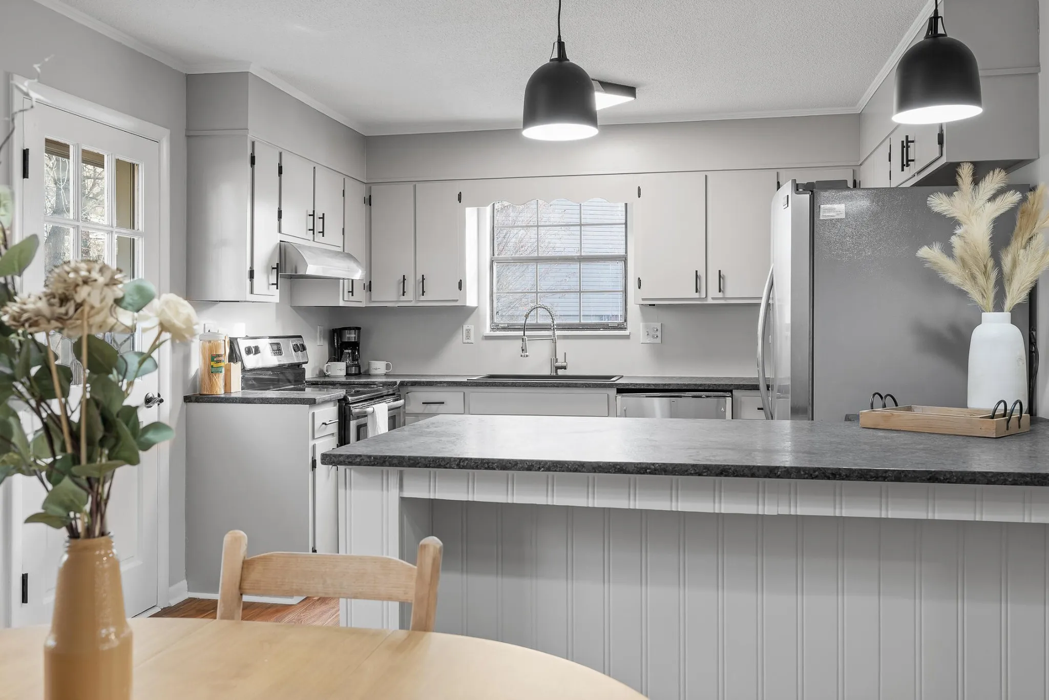 The updated bathrooms boast modern fixtures and stylish tile, adding a touch of luxury. The stainless steel appliances in the kitchen elevate the heart of the home, making it a chef’s delight.