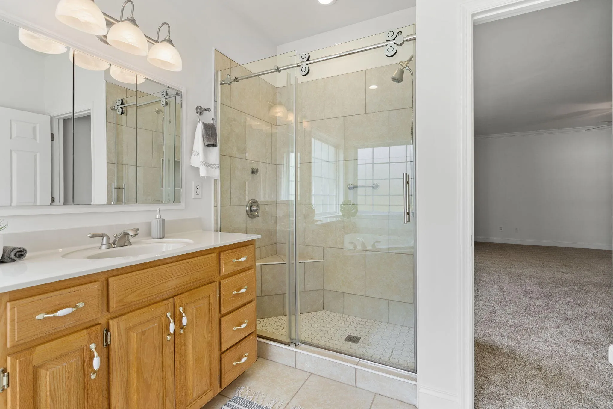 The large bonus room above the garage offers plenty of privacy and is the ideal space for a teenager hangout, office space, entertainment room or home gym.