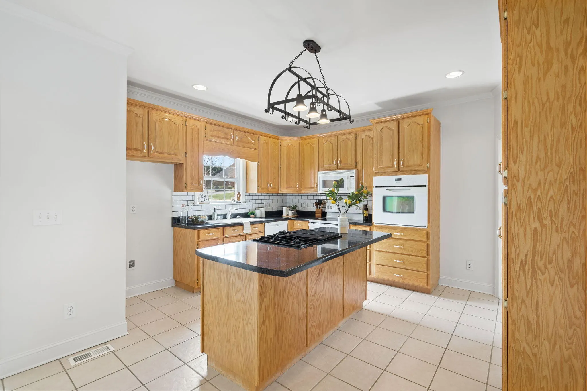The well-appointed kitchen is a chef’s delight, featuring a gas stove, ample cabinet space, and sleek countertops, making meal preparation a joyous affair. Adjacent to the kitchen, the dining area offers a perfect setting for intimate dinners or casual gatherings with loved ones. Or enjoy entertaining in the formal dining room.