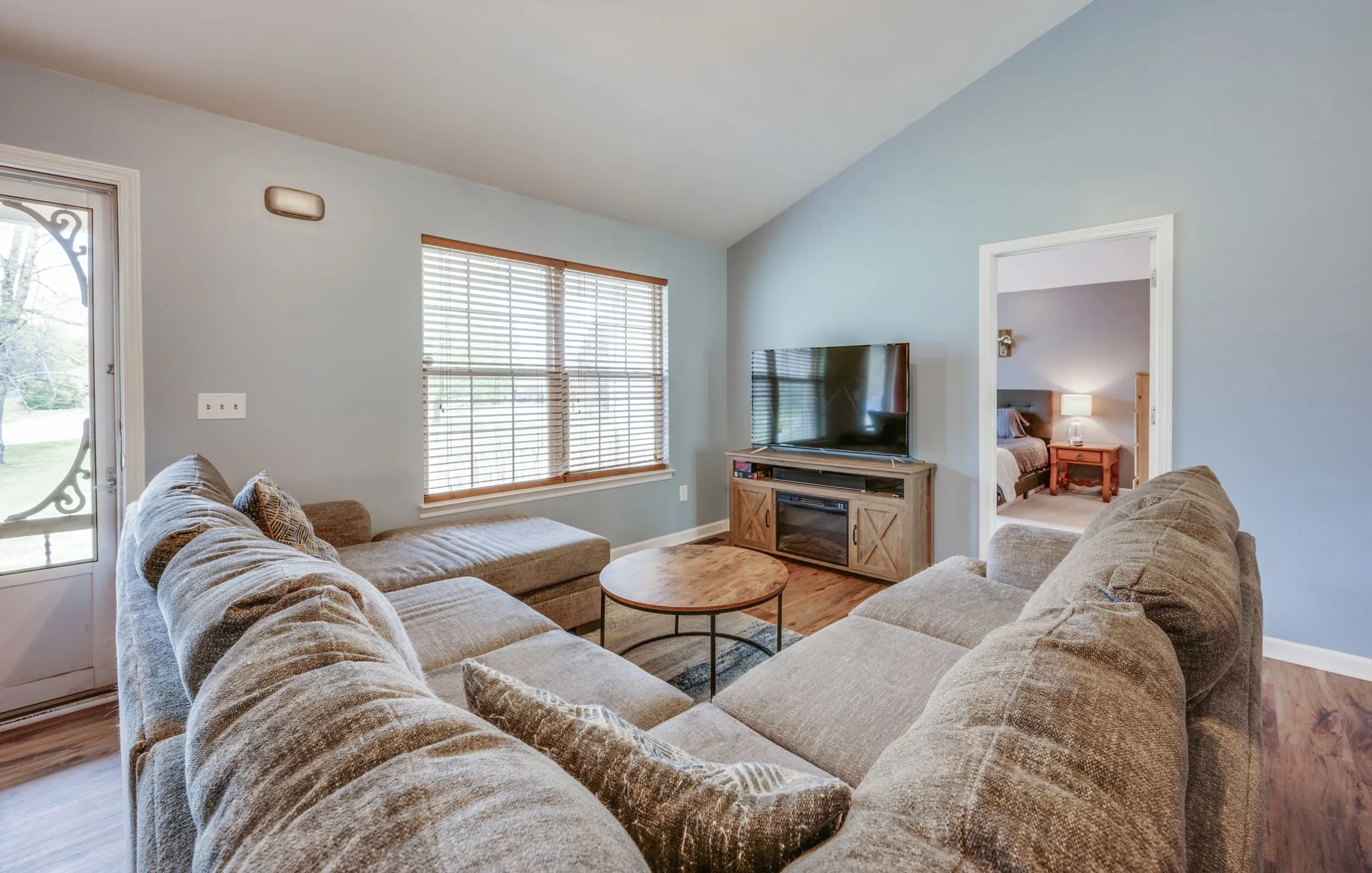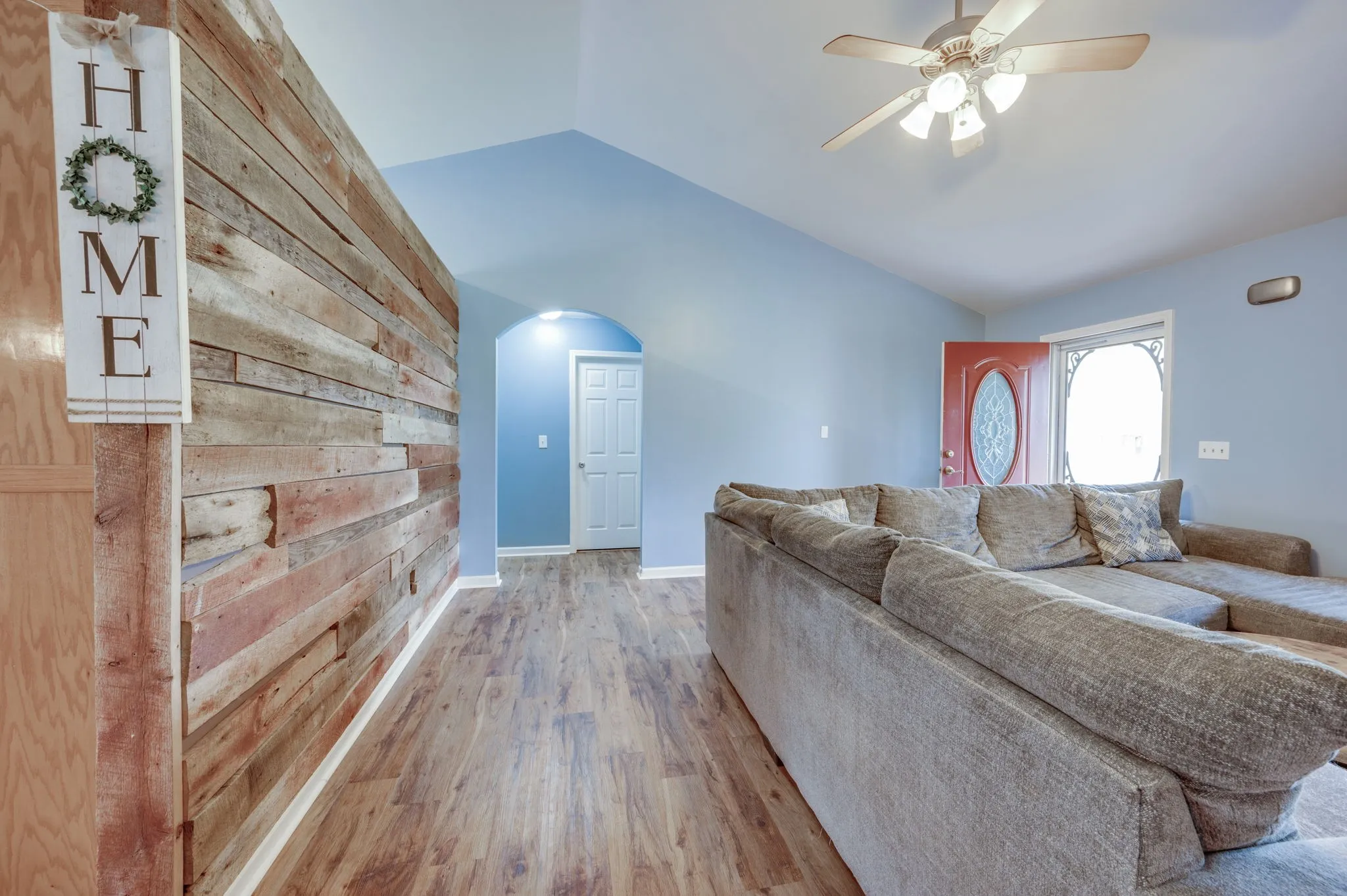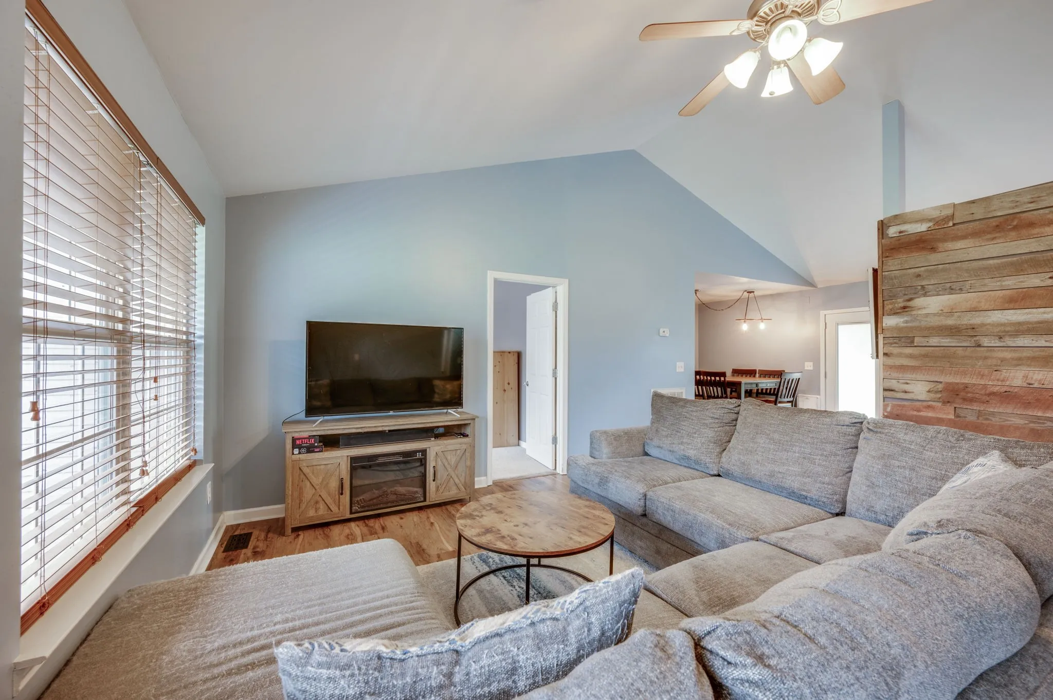 One level home on a flat one acre culedsac lot! Split bedroom plan, hardwood floor in common spaces, vaulted ceilings in living room with beautiful Tennessee barnwood accent wall, remodeled master bath, 2 car garage, fenced in yard & more!