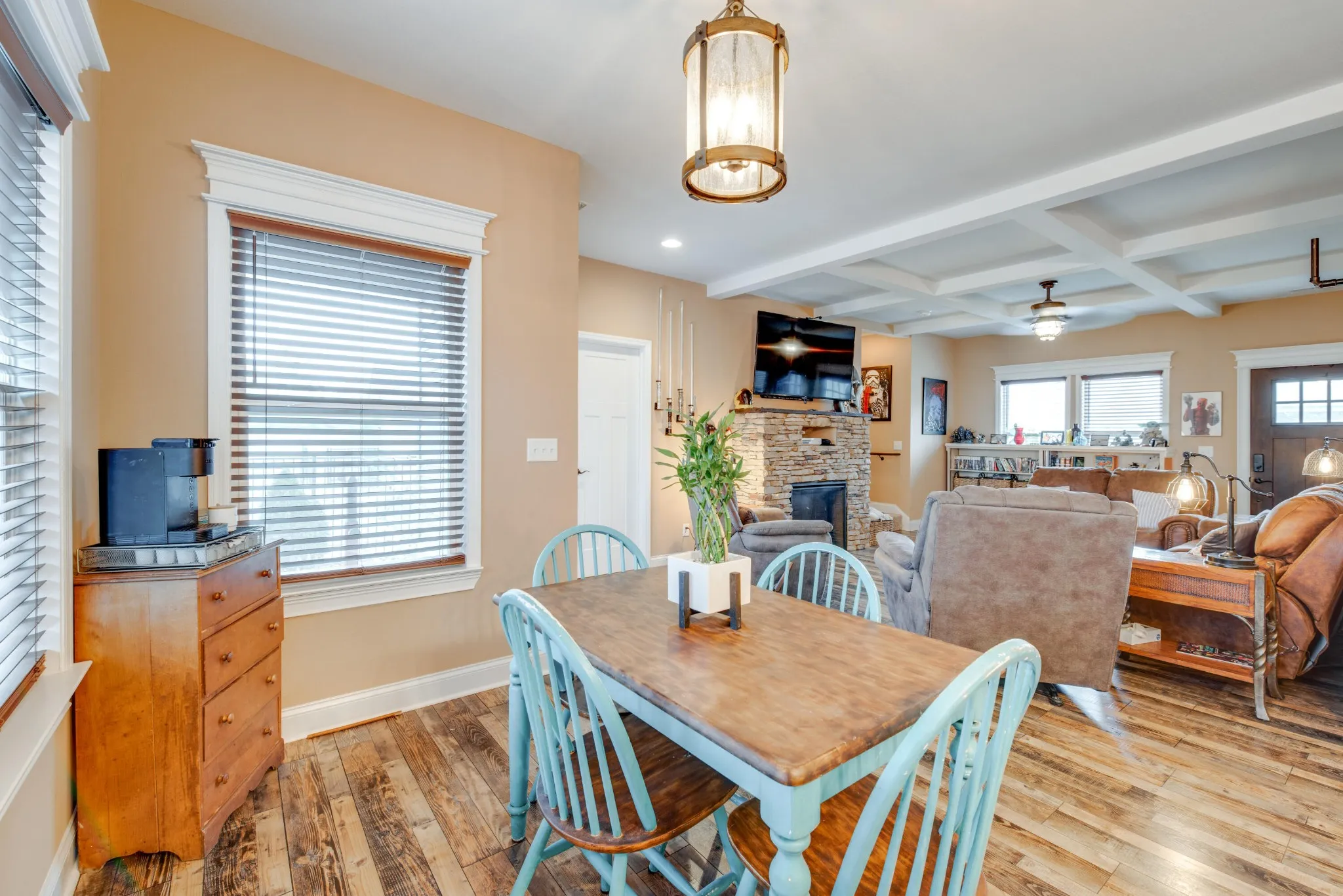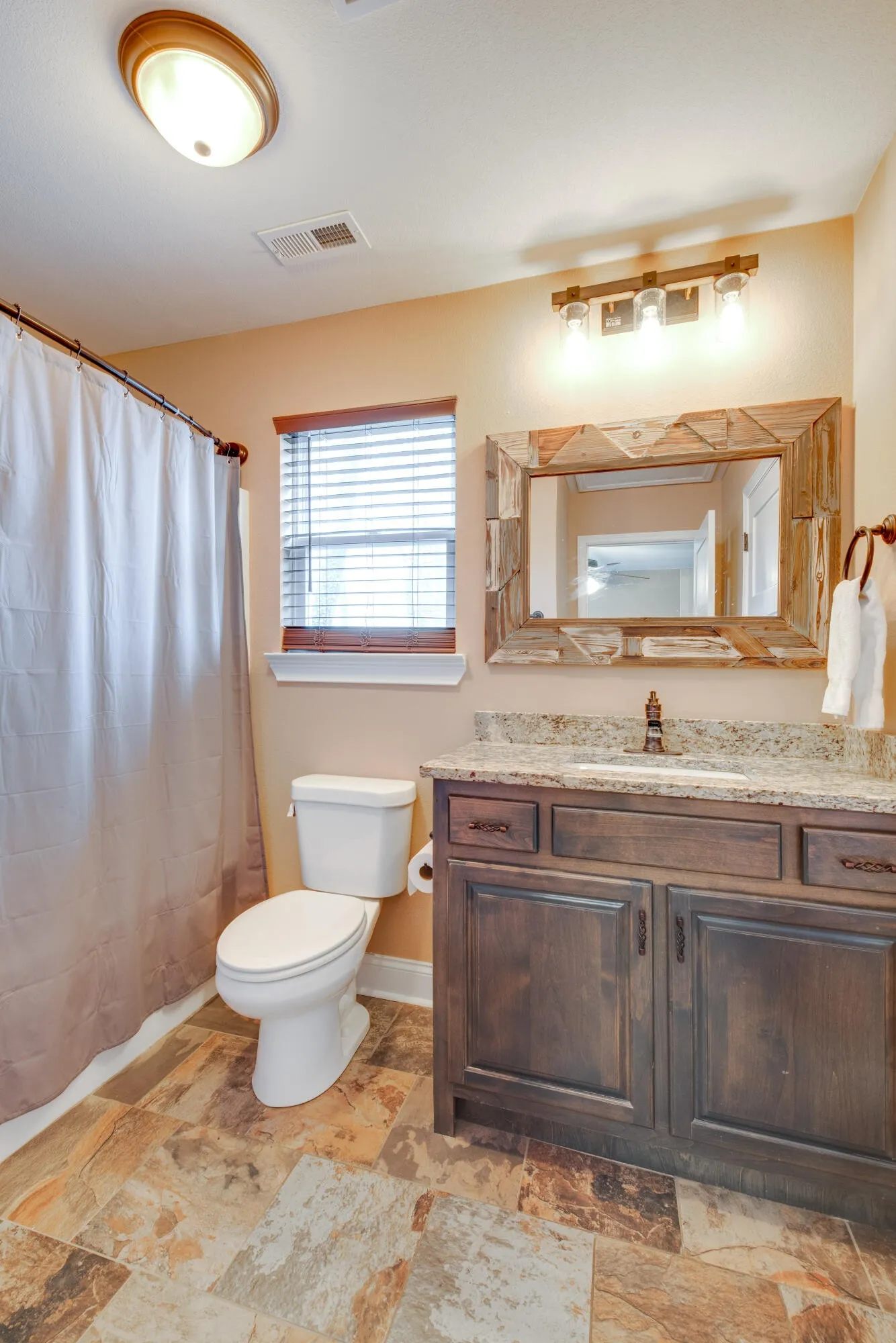 Stonebrook subdivision in Ringgold, GA just minutes from East Brainerd shopping. This beautiful, move-in ready home has a cozy farmhouse feel. 3 bedrooms, 2 1/2 baths with charming stack stone fireplace, beautifully detailed ceilings, farmhouse style lighting, and granite countertops. The master bedroom is comfortably situated upstairs with a private balcony and an oversized ensuite bath with his and hers sinks, walk in closets and spacious slate tile shower. The laundry room is conveniently located upstairs along with 2 additional bedrooms and a Jack and Jill style bathroom.