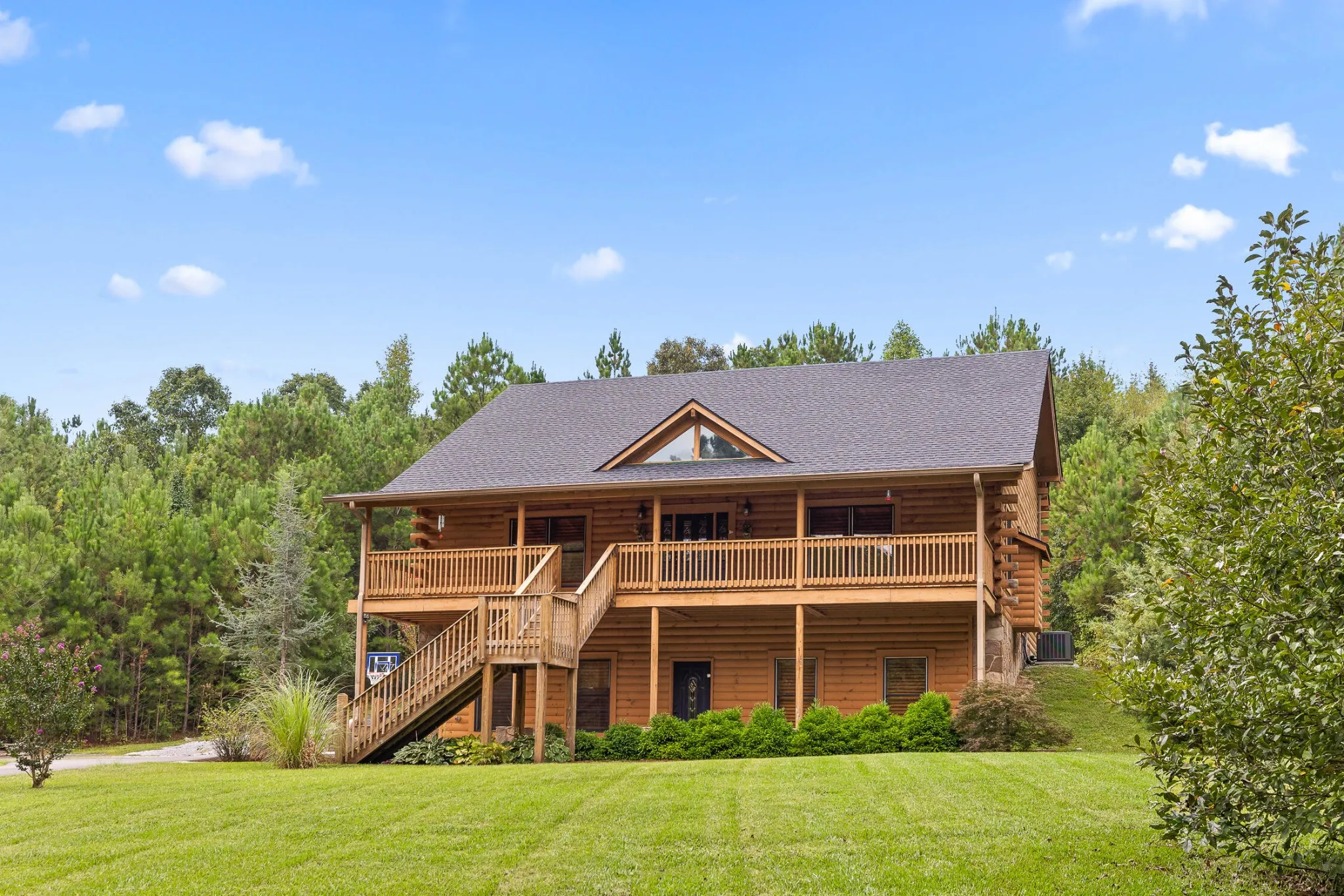 This 3 Bedroom, 3 Full Bathroom Log Cabin Home awaits. Sitting on 1 acre of land in Catoosa County and conveniently located to I-75, shopping, dining, entertainment and Heritage Middle and High Schools, this unique home boasts traditional log cabin charm and coziness with the exposed log beams and hardwood floors. The interior displays an open floorplan with seamless views from the Kitchen to the Great Room featuring a stone, gas fireplace creating a space of warmth and comfort. In addition to the two Bedrooms and Full Bathroom on the Main Level, you will find stairs that will lead you to a second story loft. When the home was originally built this area was designated, and has been used as, the Master Suite. From the loft you will find a spacious Full Bathroom, expansive Walk-In Closet and Laundry Room. The loft also features access to a private deck where many mornings and evenings relaxing will be spent. The Third Bedroom, Full Bathroom, and access to the 2 Car Garage are located in the finished Basement. Storage should not be an issue in this home in that there is walk-in storage in the basement as well as extra space inside the garage. New roof installed within the last 11 months. New AC unit installed June 2023. The second unit was replaced within the last 5 years.