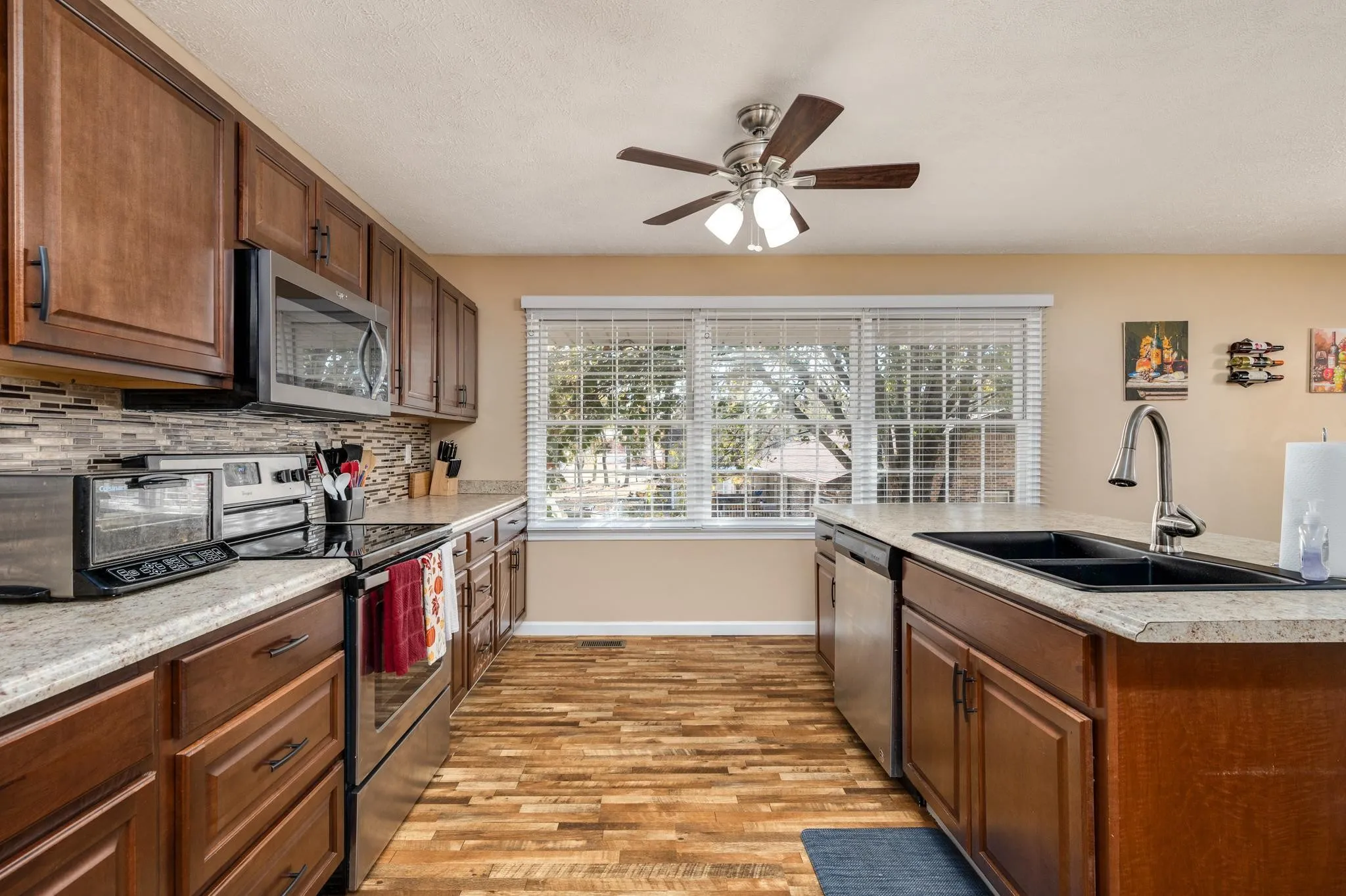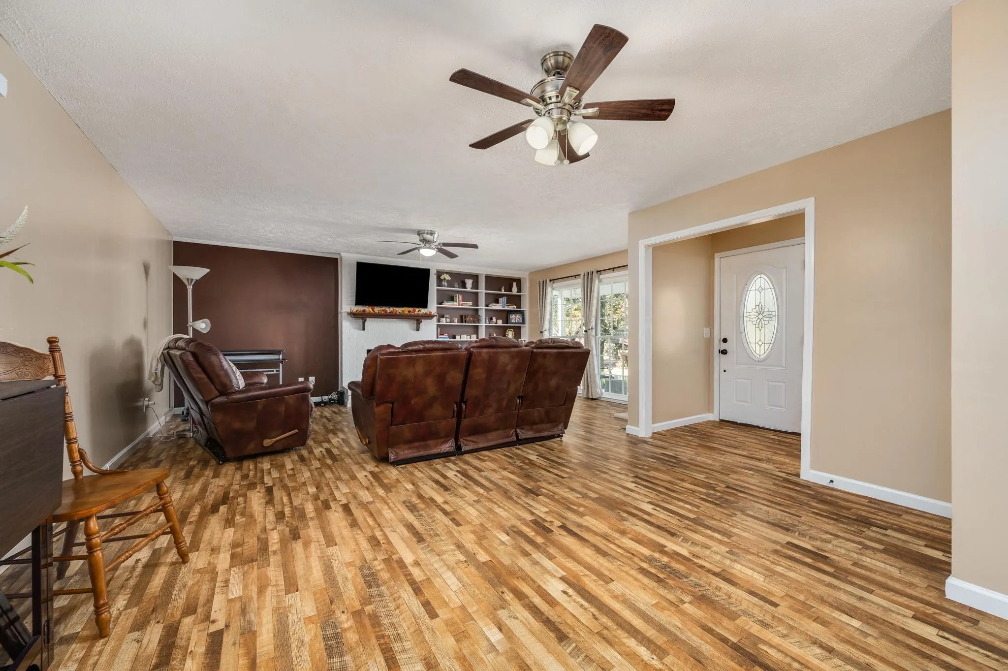 Charming abode alert! Nestled in a prime location, this delightful home boasts all-new plumbing, HVAC system, duct work, roof replaced in 2021, fresh paint, and cozy new carpet. It’s further enhanced by sleek stainless steel appliances that add a modern touch to the functional kitchen. The living room, warm and inviting with a fireplace and built-in bookshelf, is the perfect retreat for chilly evenings. Large windows fill the space with natural light, offering a bright and airy ambiance. This home is a canvas for your imagination and personalization. Come, make it yours!