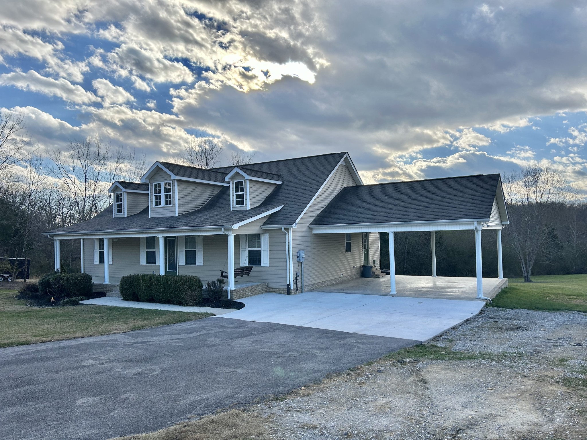 Very spacious & unique property with several added features. This home has a total area of 2,982 square feet of living space that includes a full basement plus, a one-car attached garage, and a two-car attached carport. This property also has a paved driveway for additional parking. Inside the home, there are six bedrooms and three full bathrooms, providing ample space for everyone!! The living room, kitchen, and dining area has the open floor plan concept that makes this large home ideal for having guests and entertaining the entire family!! Additionally, there are two living rooms, one on the upper level and one on the lower level, allowing for separate living spaces. The property sits on a generous 2.06-acre lot with no restrictions. This home boasts country living and privacy while only being 5 minutes from the City Limits!! The yard and porches are picturesque!! Huge front porch with two ceiling fans and a porch swing plus a large back deck and a concrete patio from the basement!!