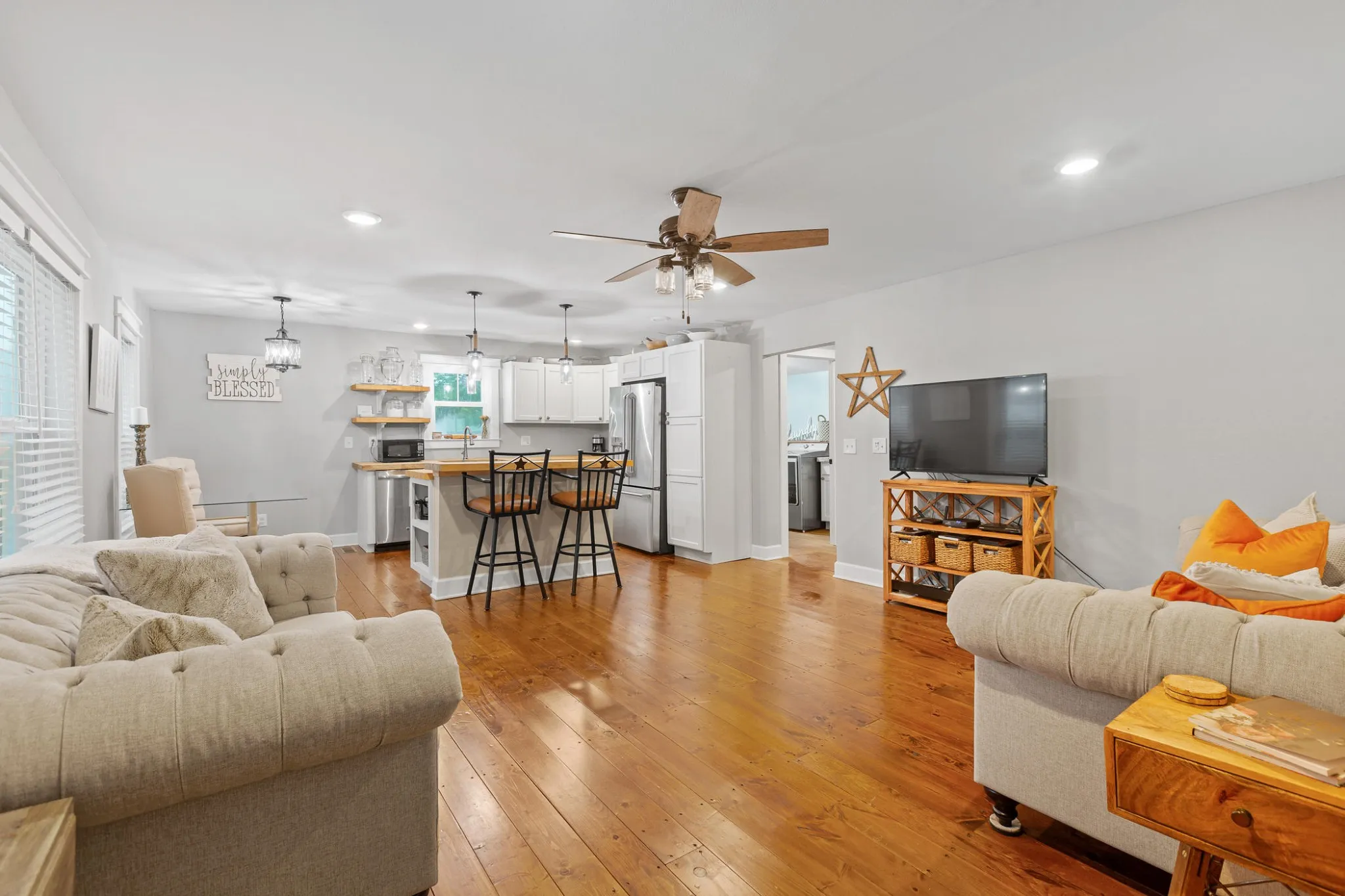 ”Pinterest Worthy” Three bedroom, two bath home is an absolute ”must see”! The curb appeal is perfection and the inside is just as charming. Completely remodeled from the floors to the doors, to the fixtures and finishes. SUPER COOL rustic wood floors run throughout the home except for the bathrooms. Open floor plan features a kitchen has a large island, new cabinetry, and precious twine wrapped handles and knobs. The primary bedroom has a fantastic ensuite with double sink vanity, tile shower and amazing soaker tub. This great home also has a large front yard and huge backyard complete with a storage shed! Located minutes to I-59 and the cute heart of Trenton. If you are looking in the area, you’ll want to see this home!