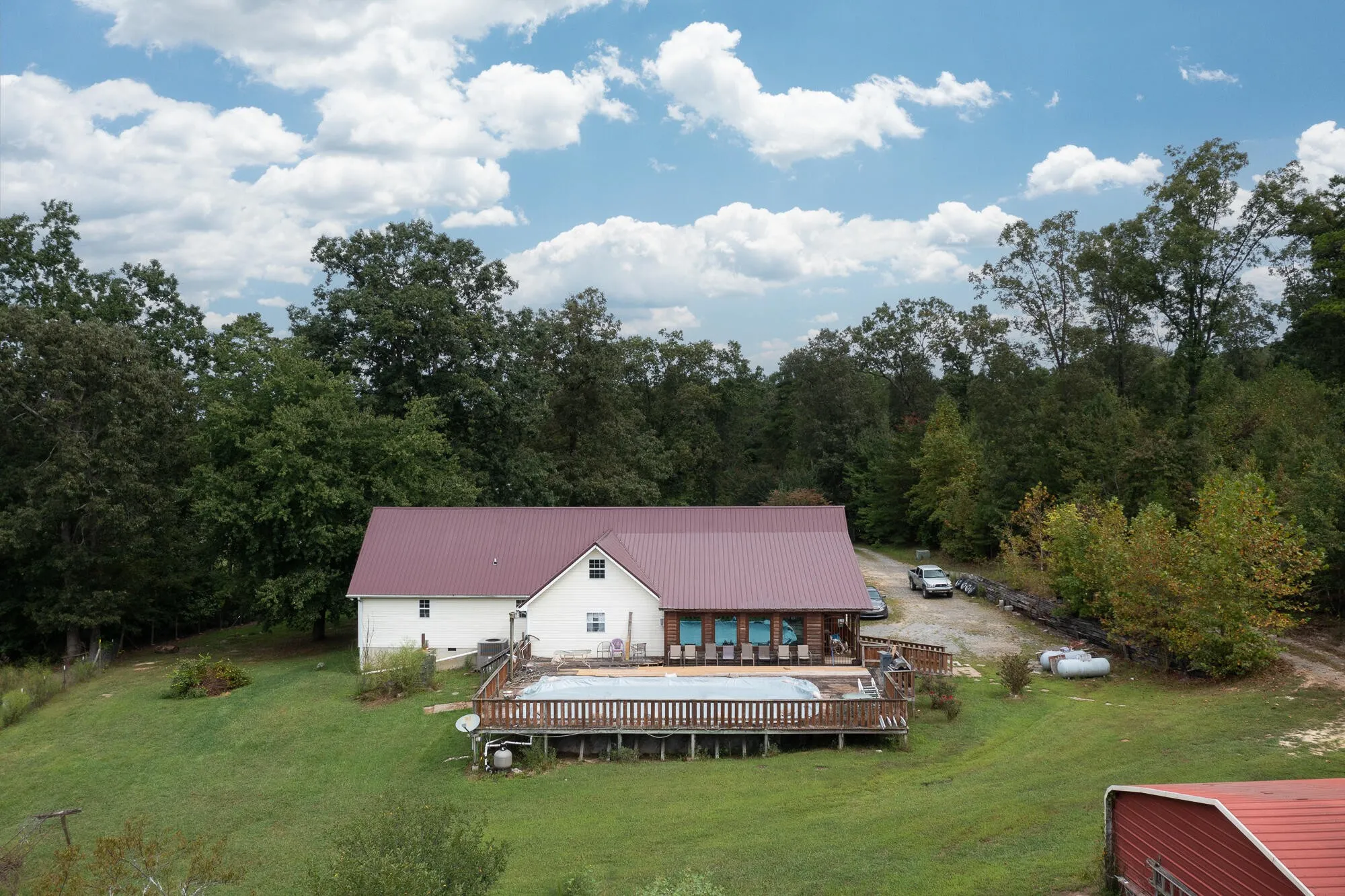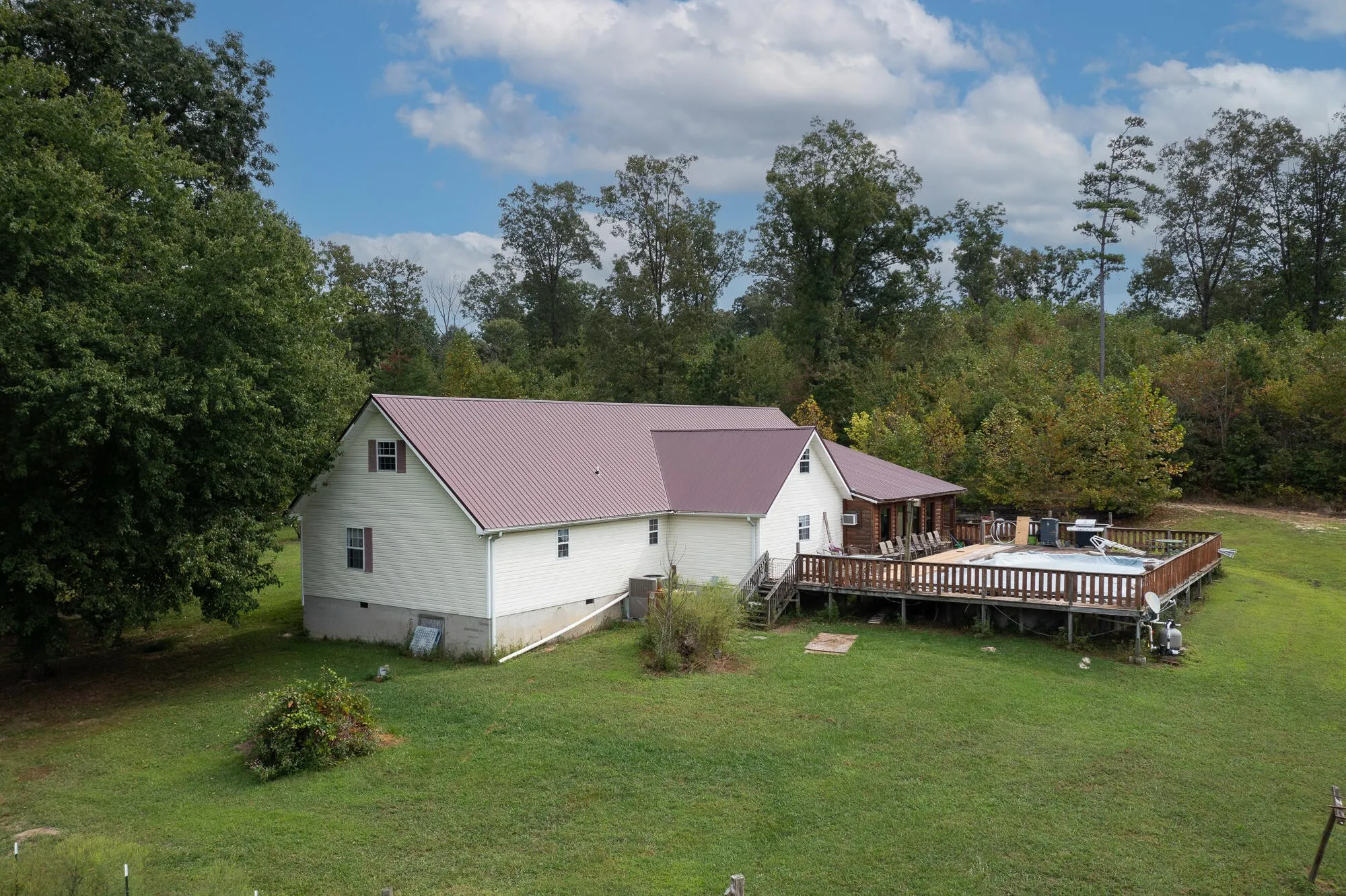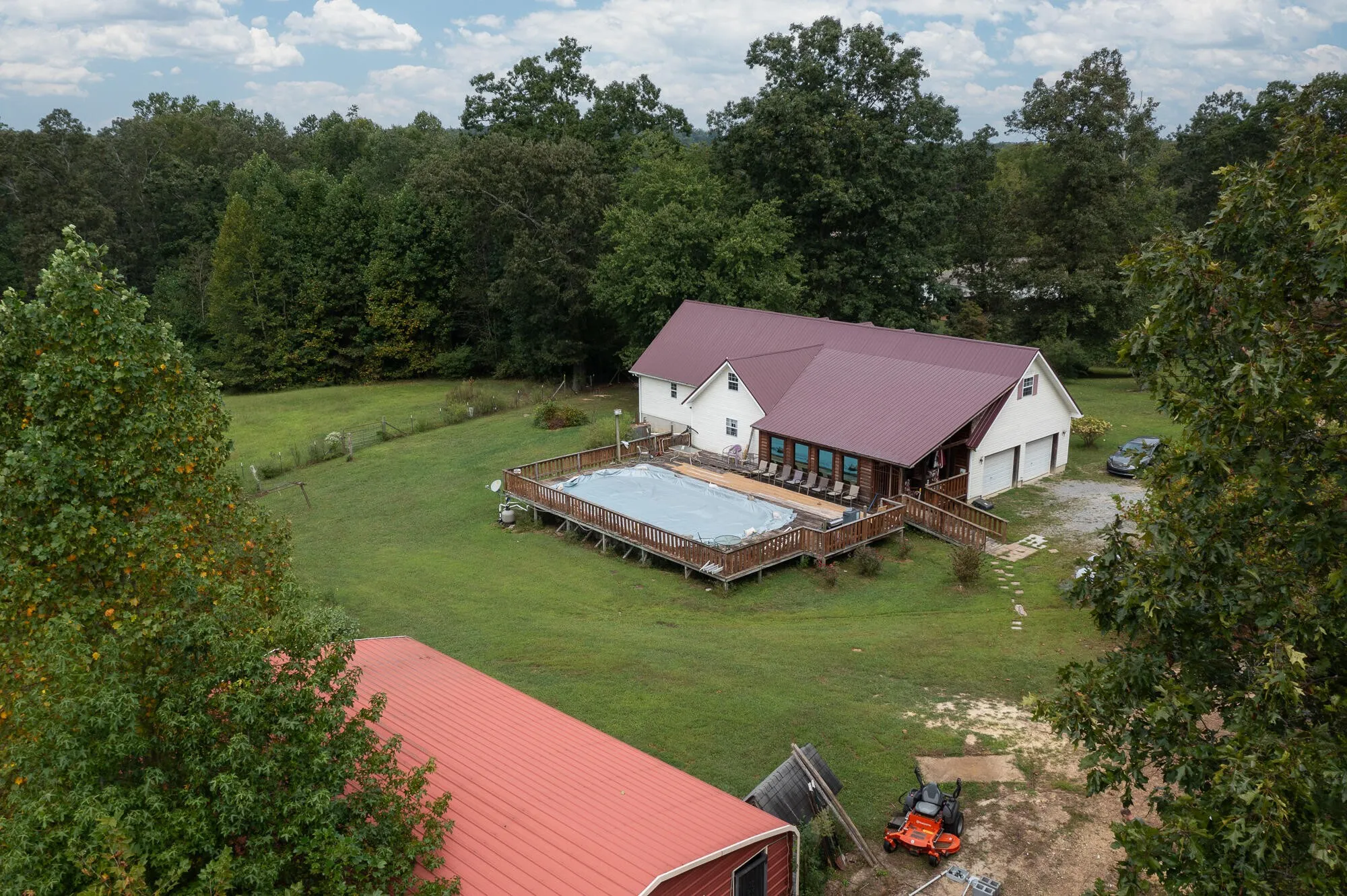 If you are looking for a property with acreage and room to grow, this is it! This home is over 3200 sq ft and features a huge kitchen and dining area, primary suite on the main level, office space, a cozy yet spacious den, and an upstairs with huge bonus room and three bedrooms and a bath! There is also a whole house water purification system. You can relax and cool off in the above ground pool with huge deck, or get some work done in the 25×40 workshop with power. During hunting season you won’t have far to go. The 15.65 acres have plenty of deer and wildlife, as well as fruit trees including peach, cherry, blueberry, and more! New carpet is needed but the home has been priced accordingly. Call today to schedule a showing!