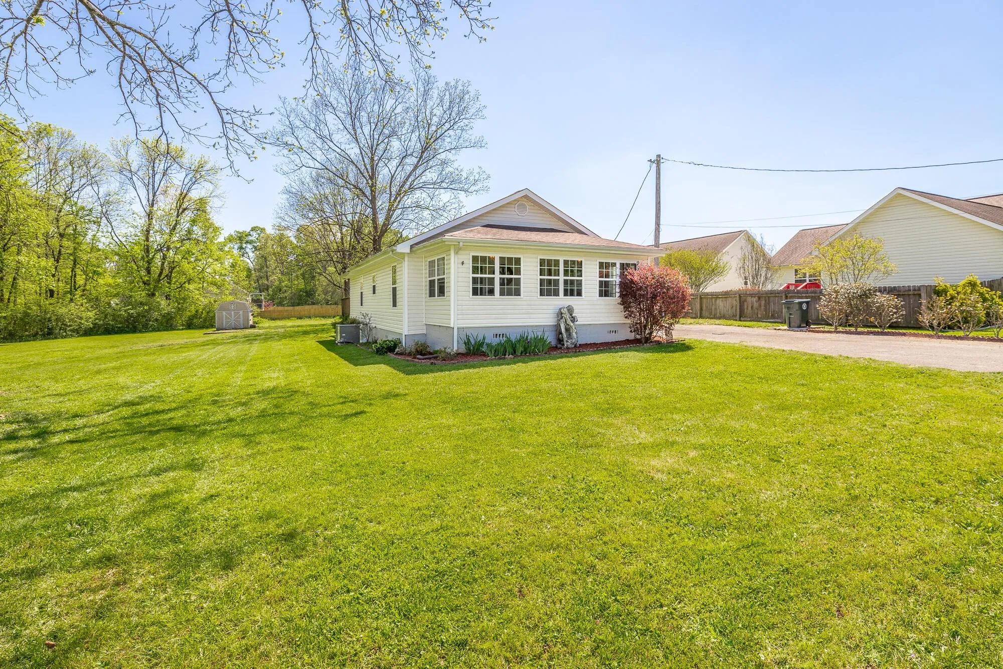 The exterior of the home is just as impressive as the interior. The home sits on a spacious lot with plenty of room for outdoor activities and gardening. There’s also a covered porch, perfect for enjoying your morning coffee or evening cocktail.