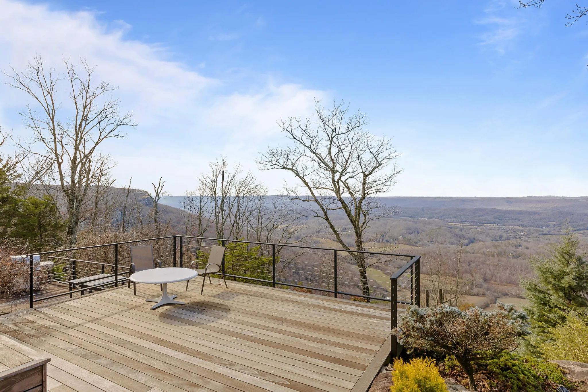 Own a private piece of Lookout Mountain–just 8 miles from downtown Chattanooga! Once in a lifetime opportunity to purchase a magnificent property with a gorgeous home including extraordinary brow views of Lookout Mountain Valley. Built in 1993 and situated on 3.85 acres of scenic mountain top land on a private road in a secluded neighborhood–with more than 2000 square feet this property boasts 3 bedrooms and 2.5 baths. In addition, there is an oversized two car garage with ample amounts of storage. The large fully equipped kitchen is perfect for entertaining. The two large bedrooms offer king beds with the primary bath, including a rare luxurious option of radiant heat. The third bedroom includes a full over full bunk bed (or queen if needed). With custom finishes and floor to ceiling windows with amazing views, this home is exceptional throughout. The home is currently used as a short-term rental and is extremely successful. *Property is being sold fully furnished including all garden utilities, etc as the owner is moving abroad in 2024. This is a rare opportunity to own a turn-key, highly successful short-term rental business or make it the primary residence of your dreams. *There are several pieces of staged furniture that will be replaced with the owner’s furniture. Please inquire if you have any questions.