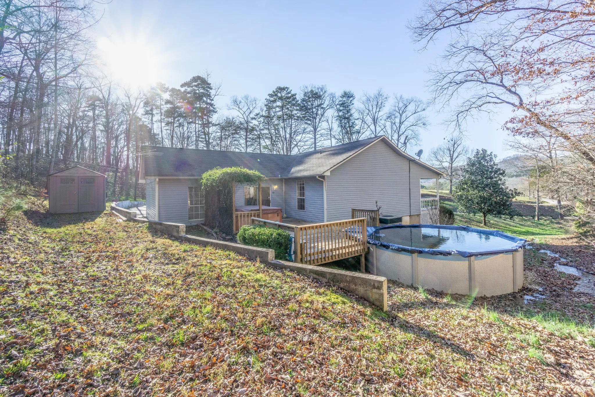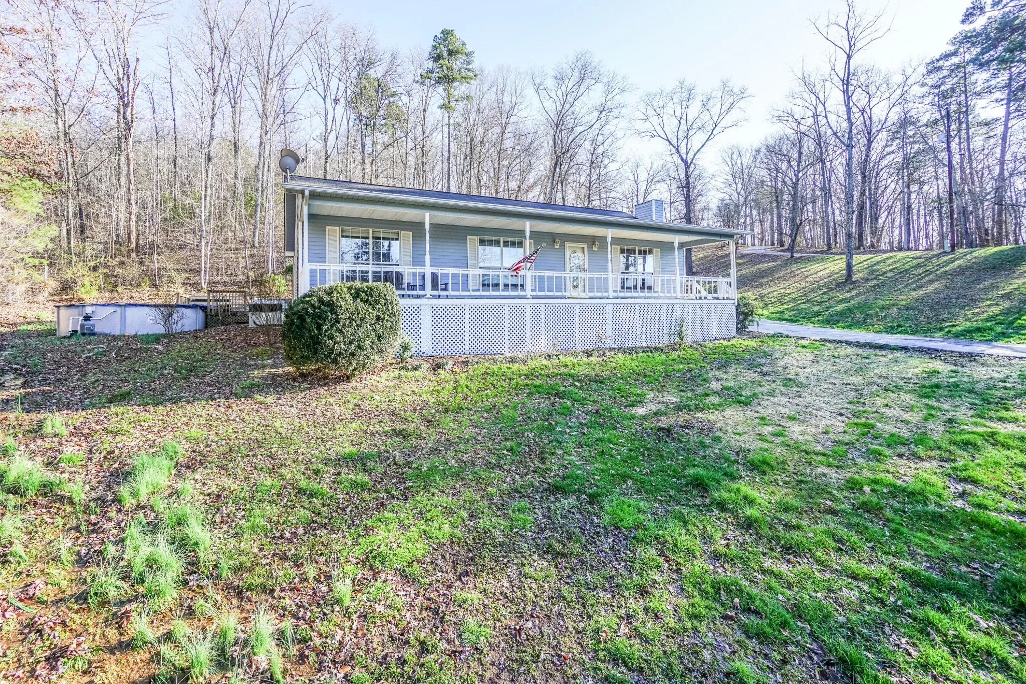 Enjoy beautiful mountain view’s with the whole family on your 50x8ft rocking chair front porch, set back off the road with long gated driveway. Enough parking for work trucks, visitors, & the family. Inside has a formal living room, as well as a second larger entertainment room, just off the kitchen. 4 full bedrooms, with 2 full baths, and a dedicated laundry/storage room. Hang out on the private, oversized entertainment deck in the back, next to your pool & hot tub. New dishwasher & water heater installed. 15 minutes to downtown Chattanooga, & 10 minutes to Trenton.