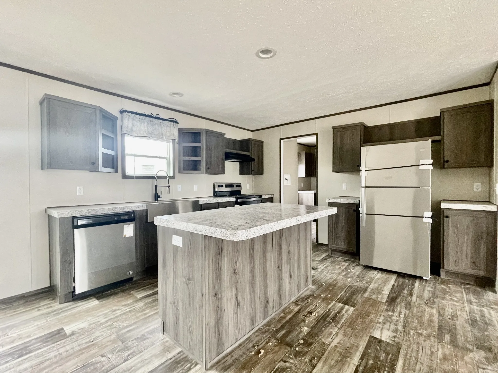 Welcome to this beautiful, never-been-lived-in 2022 Fleetwood Double Wide! This spacious home boasts a generous 1,456 square feet, providing ample room for comfortable living.Upon entering, you’ll be struck by the open and modern floor plan, which allows for easy flow between the main living areas. The large laundry/mud room with sink is conveniently located off the kitchen. The kitchen features sleek stainless steel appliances and a charming farmhouse sink. The home offers three generously sized bedrooms, each with its own large walk-in closet. There are also two modern and well-appointed bathrooms, with the master bath featuring an oversized corner soaking tub, perfect for relaxing after a long day.This home is conveniently located extremely close to town and schools. Don’t miss out!