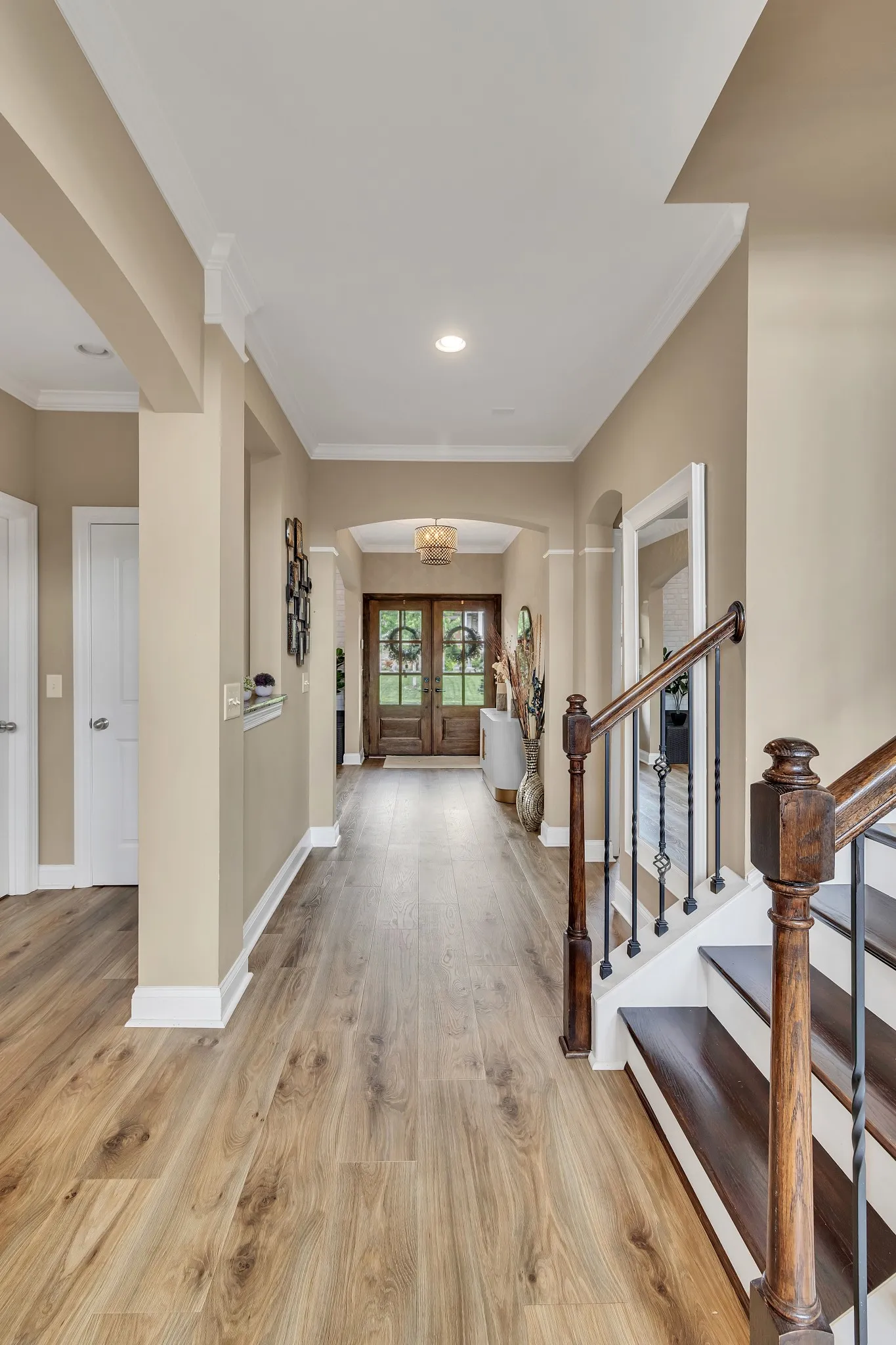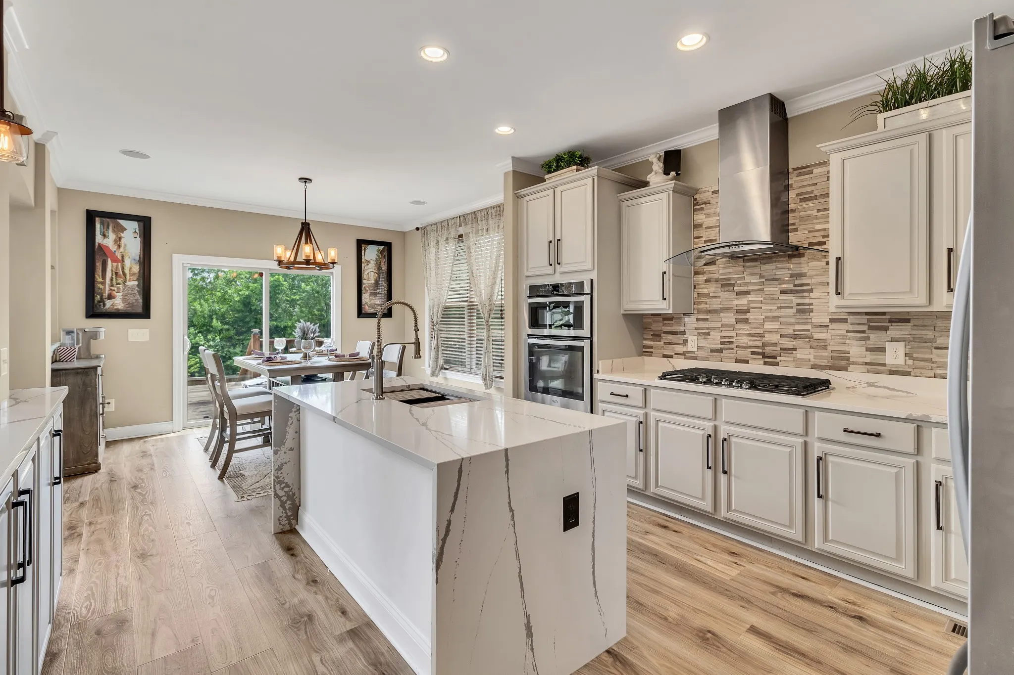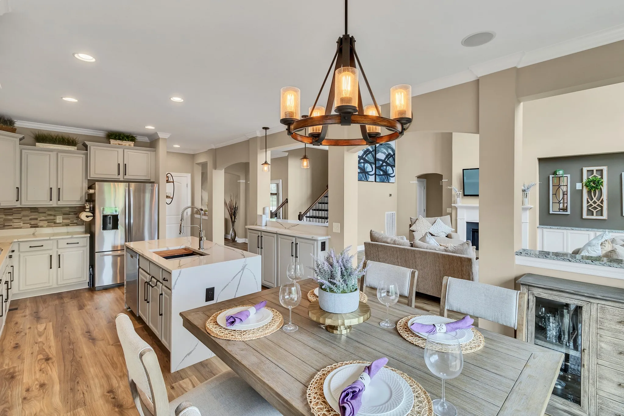 Don’t miss your opportunity to purchase or lease this recently renovated Providence home on a premium lot, boasting recent high-end renovations. The spacious living room with high ceilings and hardwood floors is perfect for gatherings. The open layout connects seamlessly to the dining area. The modern chef’s kitchen features stainless steel appliances, quartzite countertops, and a breakfast nook. The primary bedroom offers a California walk-in closet and en-suite bathroom with double vanity and soaking tub. A unique feature is the second bedroom and full bathroom on the primary level. Upstairs, enjoy the media room and generously sized guest bedrooms. Outside, the backyard oasis includes a large deck and wooden fence for privacy, perfect for relaxation and entertaining. Community amenities include walking trails, playground, and a community center with a pool. New Architectural Roof with Turbine Vents.