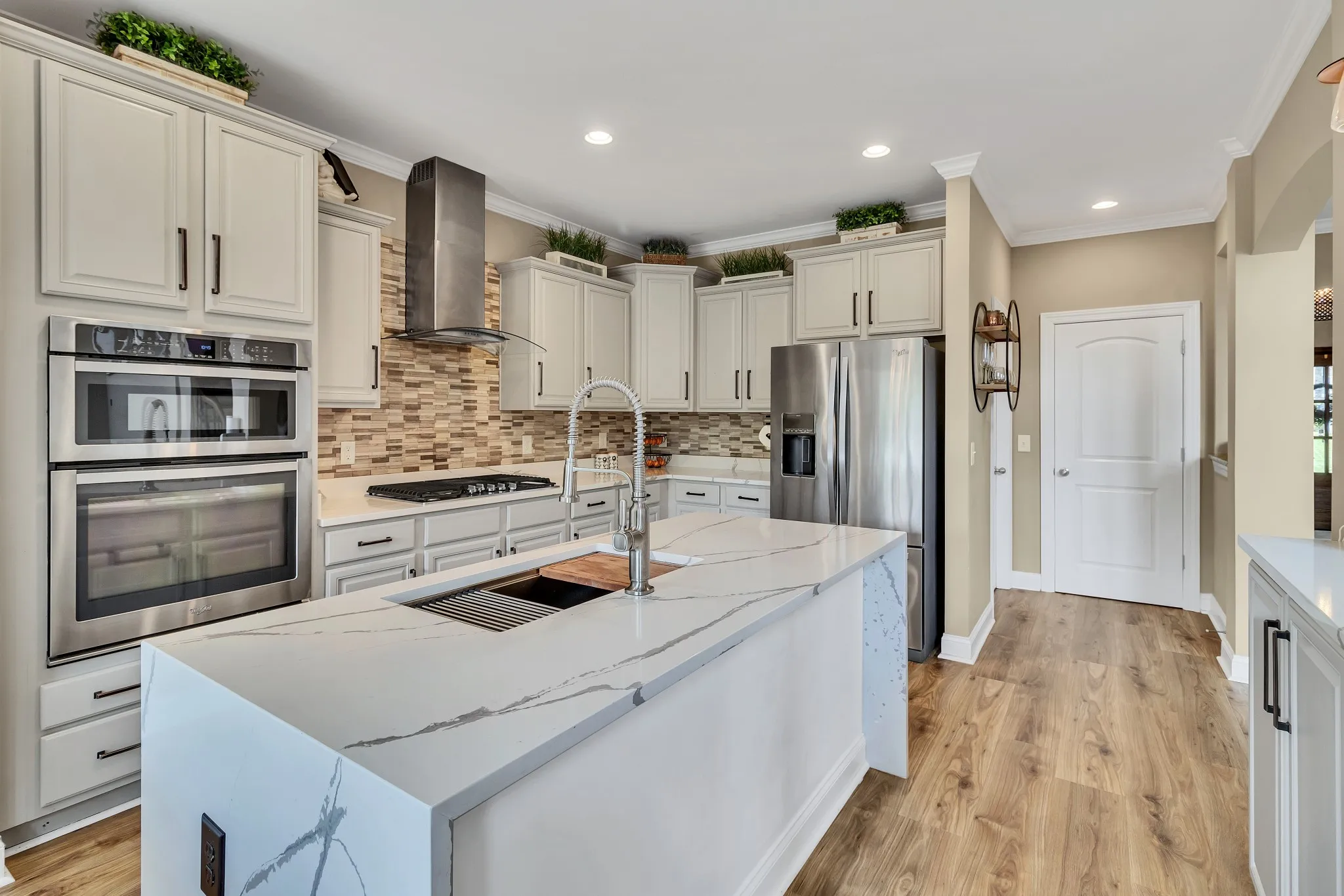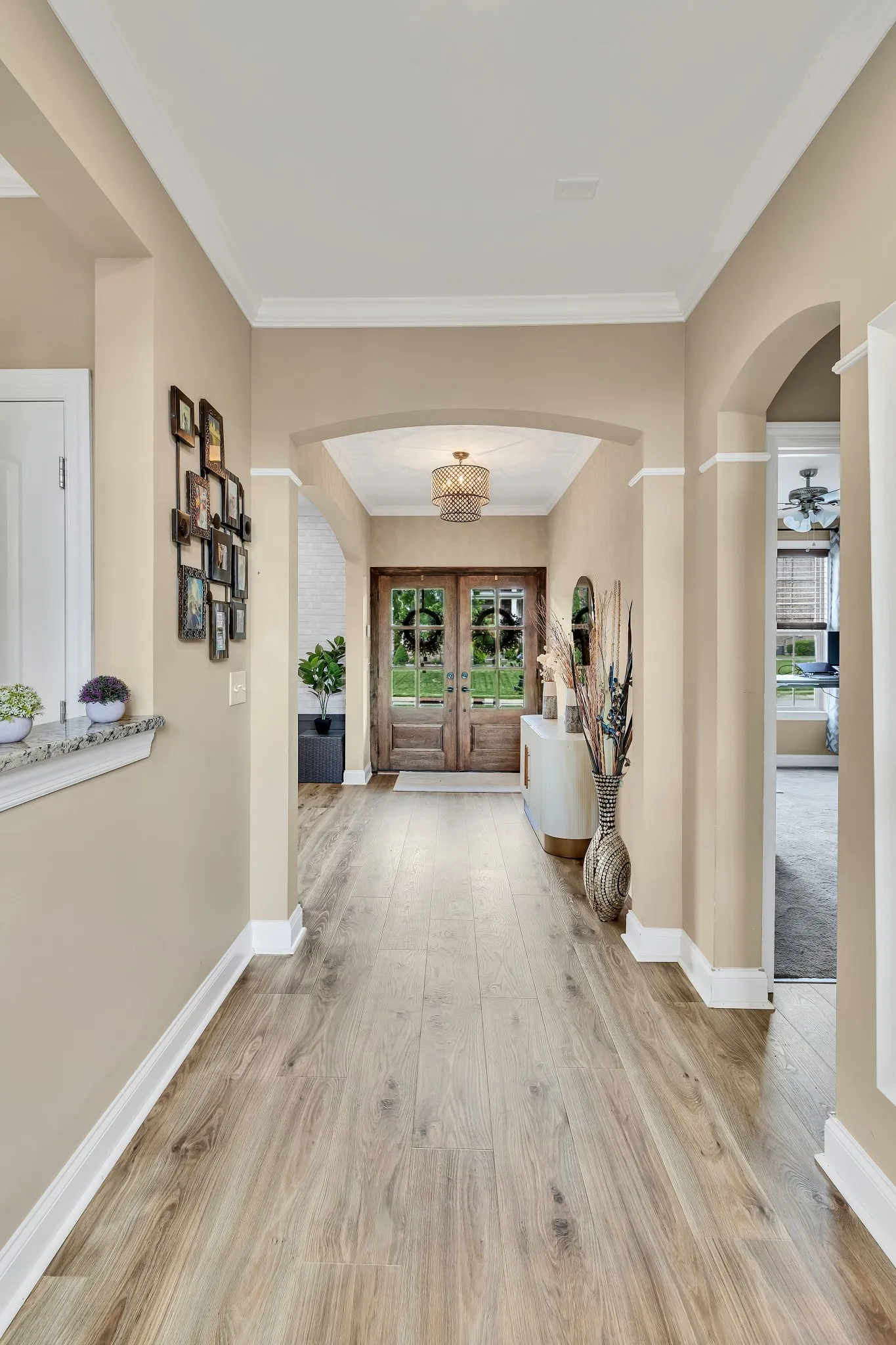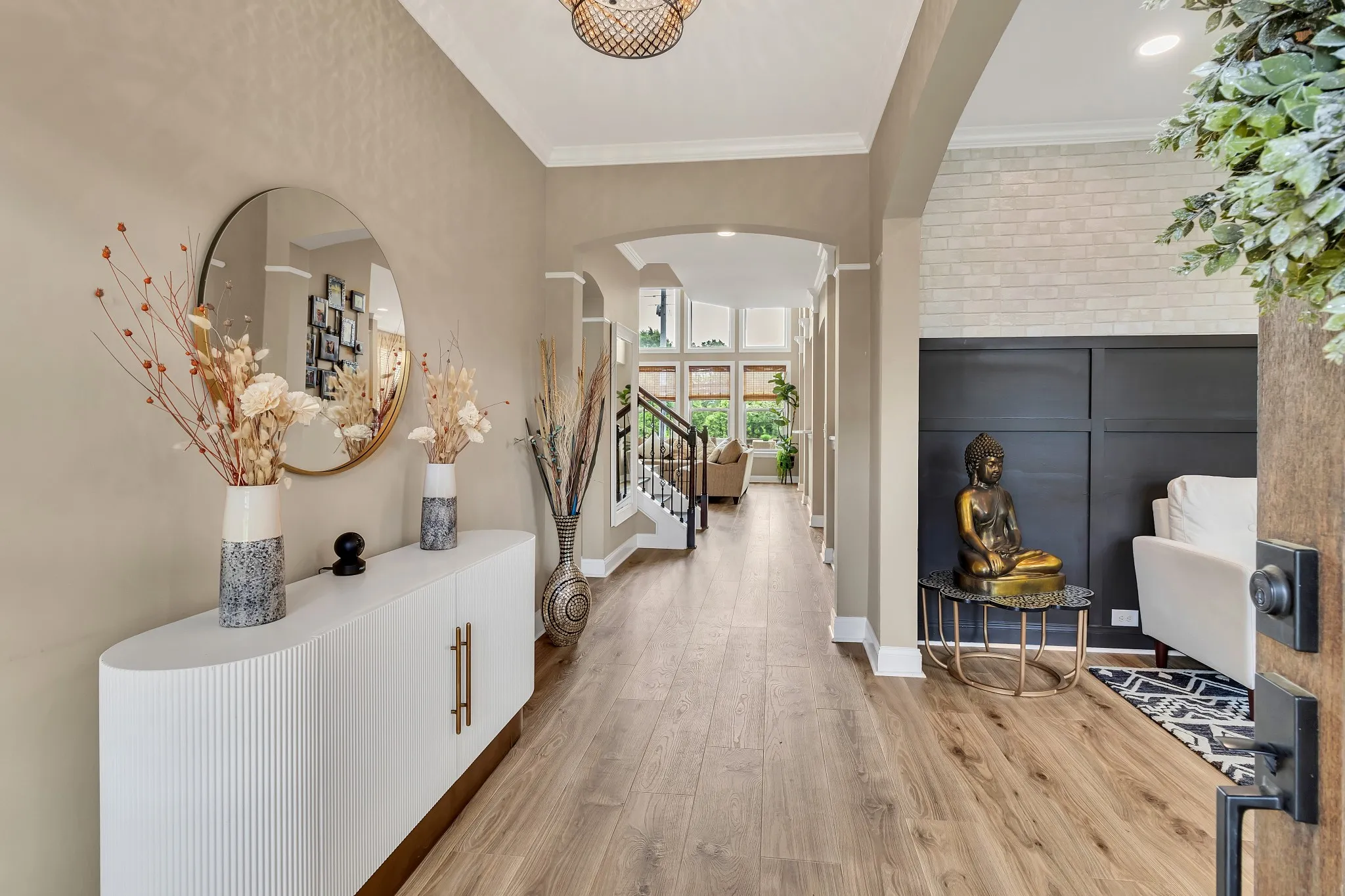 Don’t miss your opportunity to purchase or lease this recently renovated Providence home on a premium lot, boasting recent high-end renovations. The spacious living room with high ceilings and hardwood floors is perfect for gatherings. The open layout connects seamlessly to the dining area. The modern chef’s kitchen features stainless steel appliances, quartzite countertops, and a breakfast nook. The primary bedroom offers a California walk-in closet and en-suite bathroom with double vanity and soaking tub. A unique feature is the second bedroom and full bathroom on the primary level. Upstairs, enjoy the media room and generously sized guest bedrooms. Outside, the backyard oasis includes a large deck and wooden fence for privacy, perfect for relaxation and entertaining. Community amenities include walking trails, playground, and a community center with a pool. New Architectural Roof with Turbine Vents.