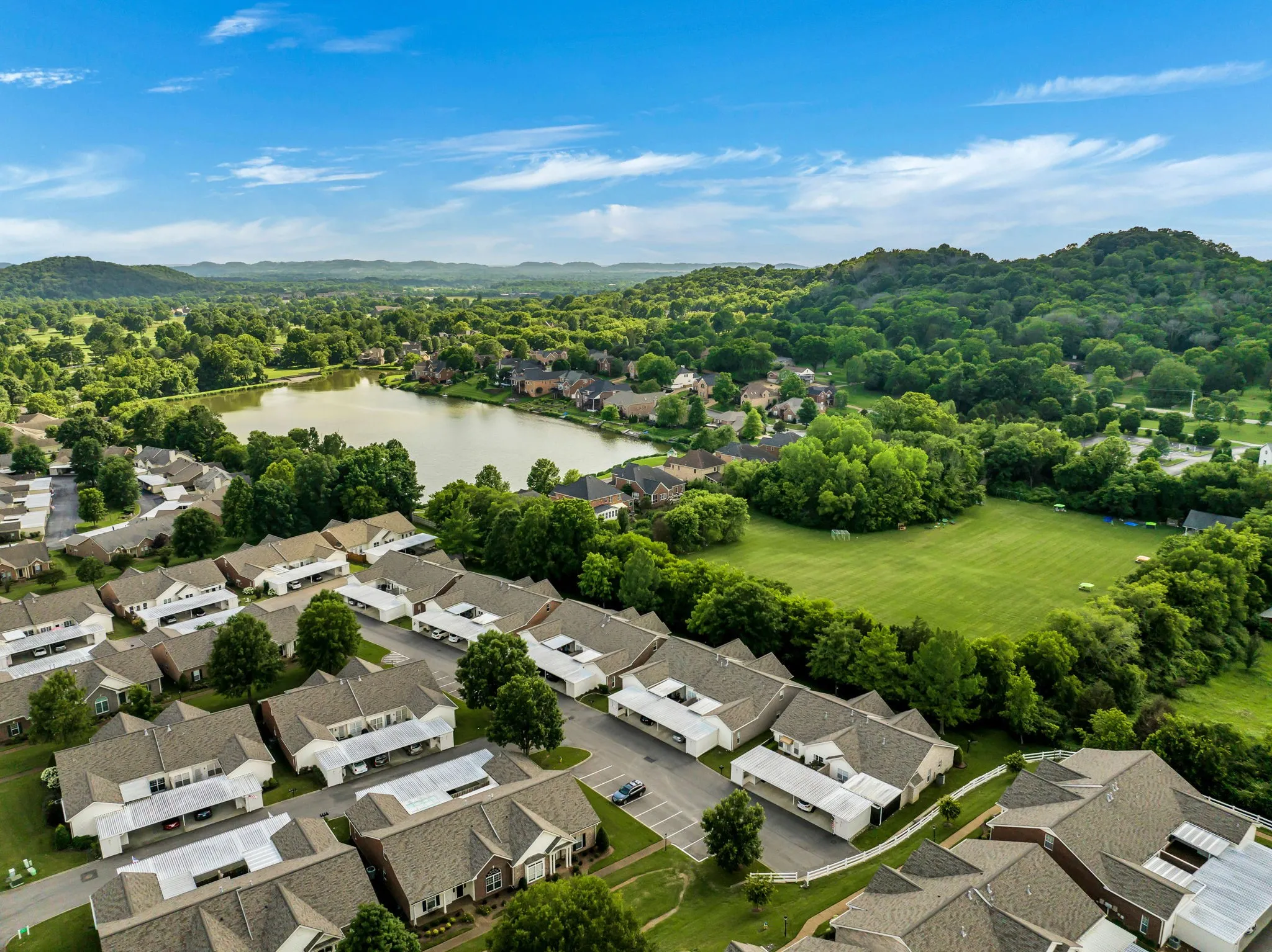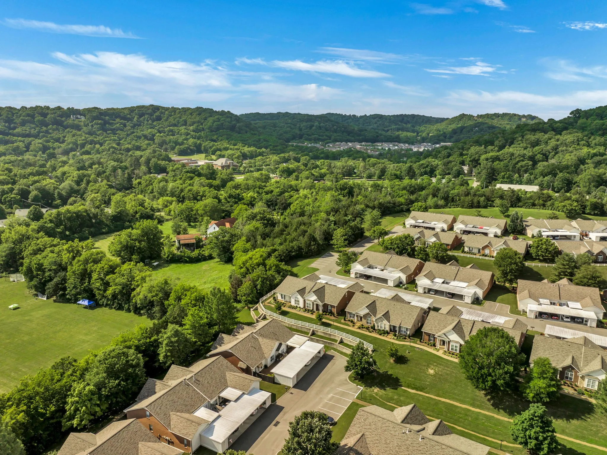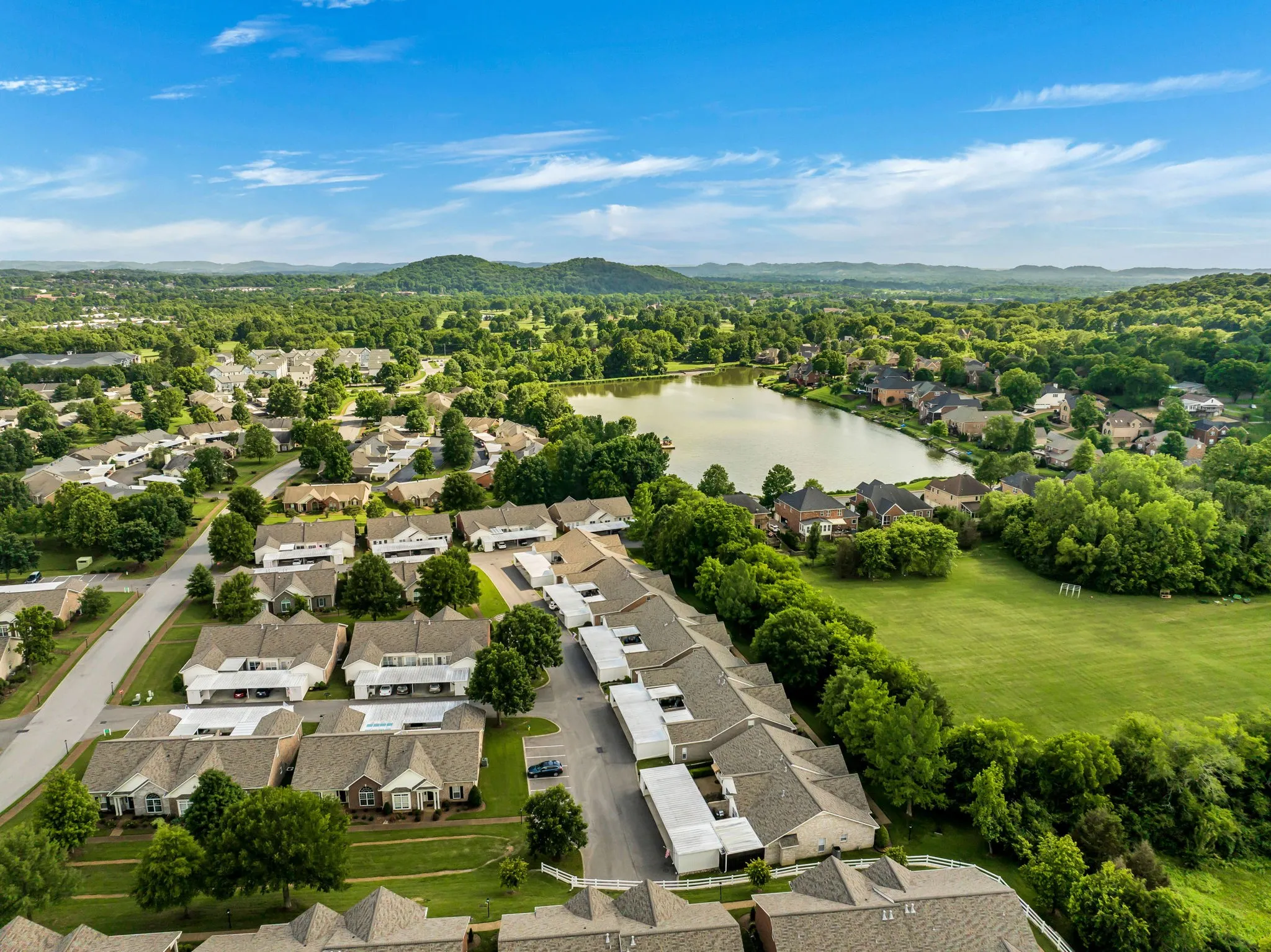 Rare 2 bedroom/2 full bath home with stainless appliances in the FABULOUS sought-after Morningside 55+ community!! Nestled in a beautiful part of Franklin, this community has so much to offer!! Located right across from a golf course, 5 minutes from major shopping, restaurants, I-65 and Downtown Franklin! New HVAC in 2023 and Roof (HOA) in 2021. The patio is huge and is impeccably landscaped! Walk right out your front door and you will see nothing but trees and a beautiful landscape of green space! (see drone photos) This home is very private and shaded!