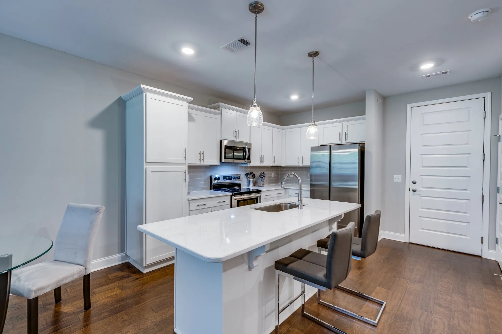 Welcome to this beautiful, newly furnished one-bedroom condo on the third level. The tall ceiling in the living area floods the space with light. The huge bedroom features a walk-in closet. Enjoy the oversized bathroom with a gorgeous tiled shower. Washer and dryer included. The chef’s kitchen with an island is perfect for entertaining. Additional amenities include a treed walking trail, dog park, and community pool. Don’t miss this amazing opportunity Utilities and Highspeed Internet Included!