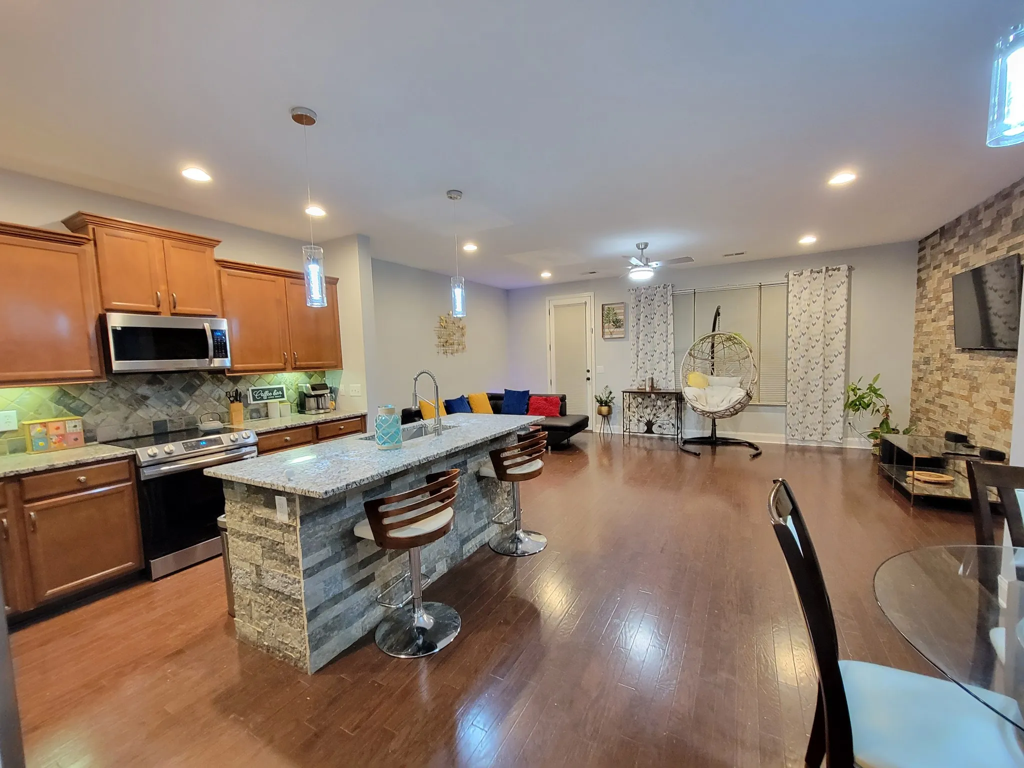 Gorgeous 3-bed, 2.5-bath townhome boasts an expansive open floor-plan, a spacious master suite, island kitchen, attached one-car garage, and abundant storage. Perfectly situated for convenience, with easy access to shopping, dining, the interstate, and the airport. Providence community amenities include a fabulous pool, clubhouse, extensive walking trails, and a playground. Recent $25K upgrades include fresh new carpet throughout the upstairs, a fresh coat of paint throughout the entire house, upgraded light fixtures and fans, a modernized kitchen featuring newly installed granite countertops and a stainless steel sink with faucet, and sleek new stainless steel appliances including a refrigerator, electric range, and microwave.Additionally, the powder bath has been upgraded with a new vanity and toilet bowls.