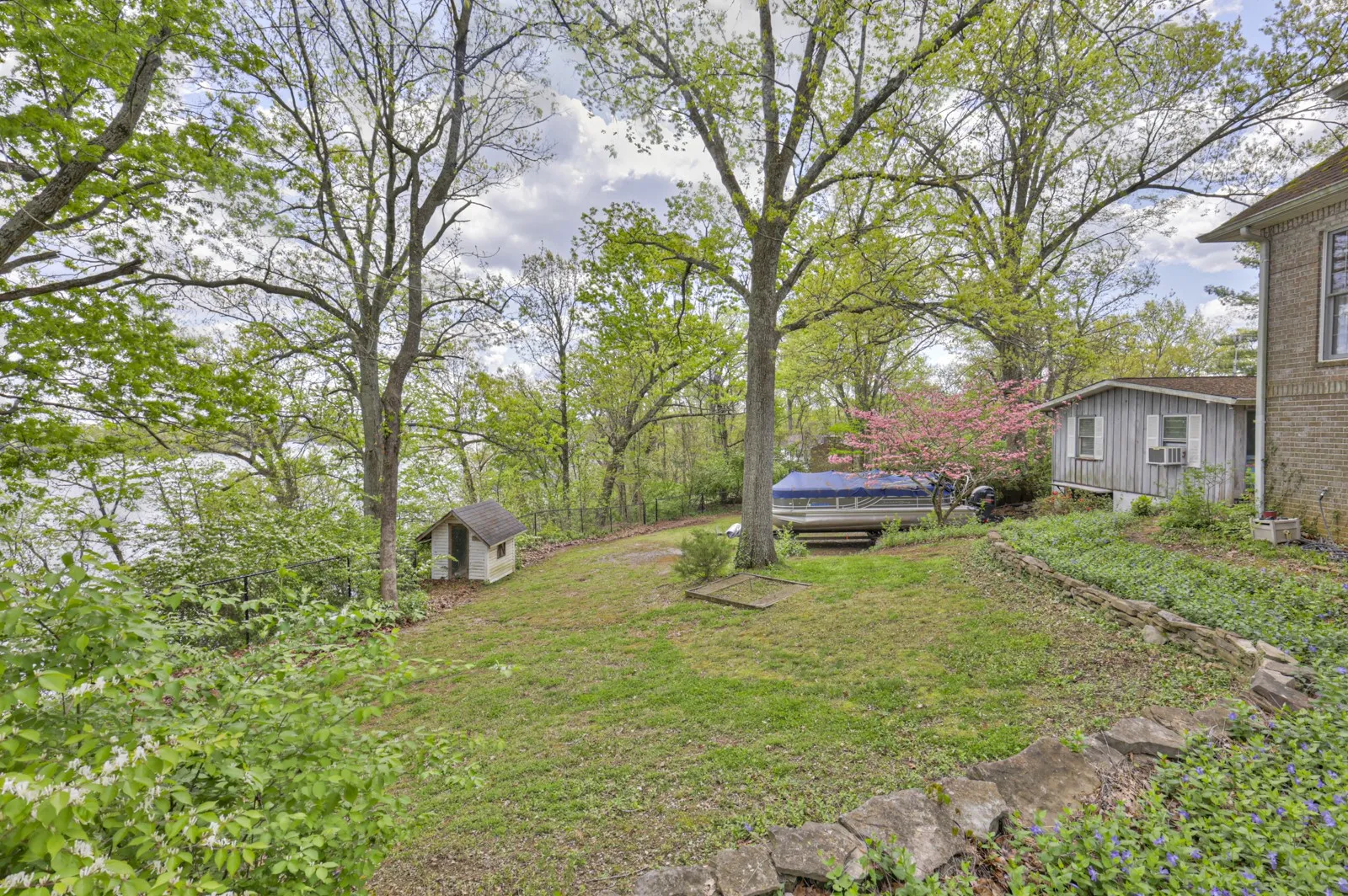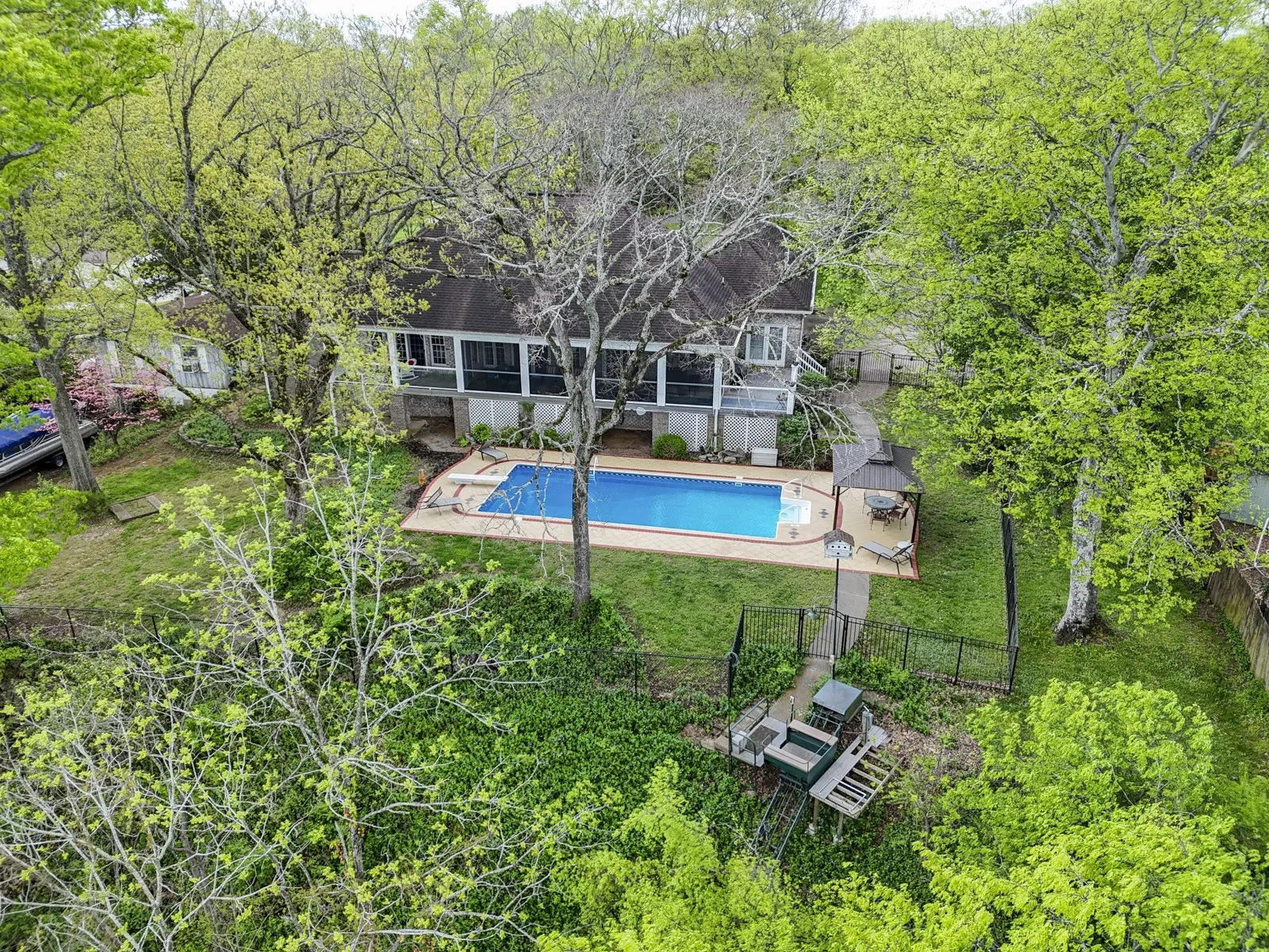 Experience the epitome of lakeside luxury living at this stunning, custom 3-bedroom ranch home nestled on the shores of Old Hickory Lake. Enjoy breathtaking views, amazing outdoor living, an inground salt water pool, and a private boat dock which is accessed by motorized trolley. Resting on over 1 acre, the home offers a spacious open-concept feel with generous room sizes. The gourmet kitchen boasts white cabinetry and stainless appls. Retreat to one of three tranquil bedrooms, including an Owners suite with its own ensuite bathroom, offering a peaceful soaking tub & steam shower to unwind. You’ll find ample storage in the 3-car garage and attic storage above it. Both HVAC systems replaced in 2022. Outside, an expansive deck w/ motorized screens overlooks the shimmering waters, providing a perfect setting for outdoor enjoyment/entertaining. It’s time to embrace lakeside living and start making memories! Guest House is currently used as a studio/workshop, but has endless possibilities.