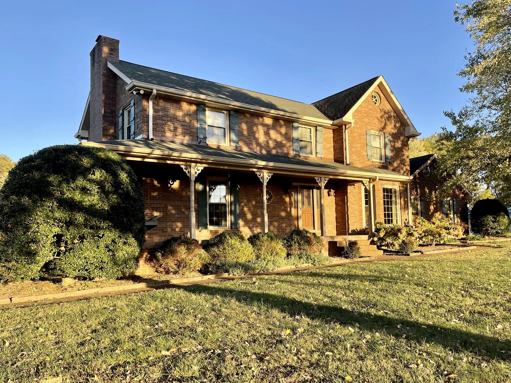 Nestled in the desirable Moreland Farms subdivision centrally located in Mount Juliet. Minutes from the interstate, schools, shopping. 2,489 square foot home sitting on 1.13 acres, 3 bedrooms & 2-1/2 baths. Enjoy a beverage on the large wrap-around porch looking out at the park-like setting. As you enter you will be greeted by a beautiful entry and gorgeous hardwood and cast iron staircase remodeled in 2022. Downstairs you will find a flowing figure-eight floor plan with a huge living room wired for surround sound, a huge eat-in kitchen, and a large dining room, all perfect for entertaining family and friends. Just off of the kitchen, you will find a half bath and a big laundry room. Downstairs flooring consists of hand-scraped hickory and ceramic tile. Upstairs bedrooms have matching hardwoods. As you exit the back door, there is a covered, screened-in back porch overlooking a large, Roman-shaped pool with shallow and deep ends. Privacy fence around the pool. NO HOA