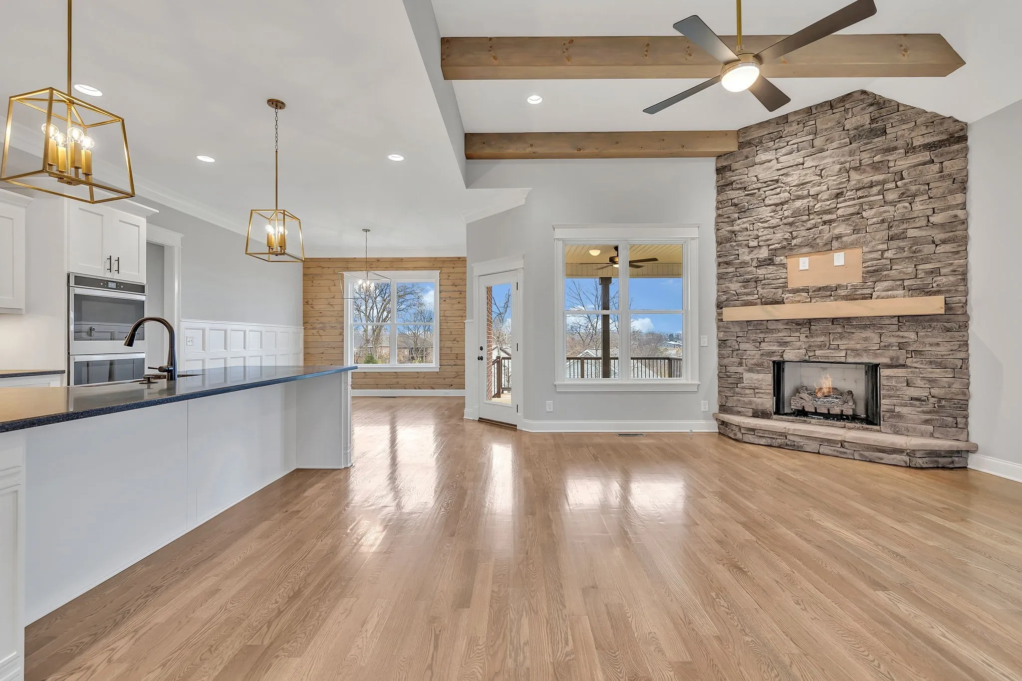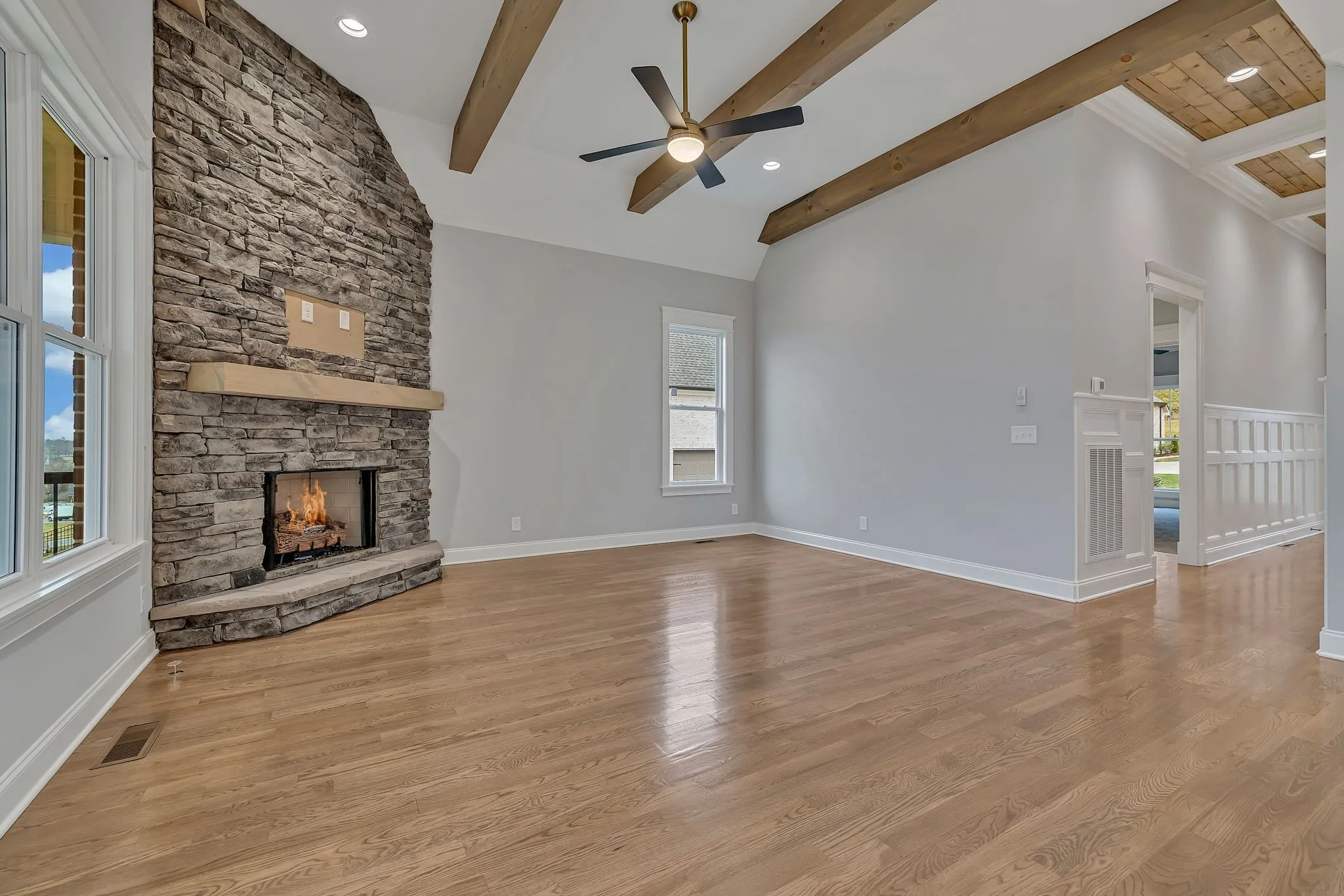 $20,000 toward closing cost and/or rate buy down with Preferred Lender Incentive. Limited Reduced Interest Rate Program Available With Preferred Lender-Call Us For More Details! The Peyton Plan, Exceptional Quality Construction by Eastland Construction Inc., This popular plan offers 4Brs (2 down), & 3 Full Baths, Living rm w/ 3/4 inch Oak Hardwood floors, Stone Gas Fireplace, and Wood Beams. Kitchen w/ Island w/ Granite tops, Custom Maple Cabinets, Hardwood Floors, Double Ovens, Gas Cooktop, Microwave drawer, and Tile Backsplash. Formal Dining Rm, Primary BR on Main level w/ Hardwood Floors & Beautiful Coffered Ceilings, 28×20 Recreation rm & pre-wired surround sound over 3 Car Side Entry Garage. Covered back deck and open patio. Excellent location in Mt. Juliet zoned Green Hills HS, Great Neighborhood Amenities and more!