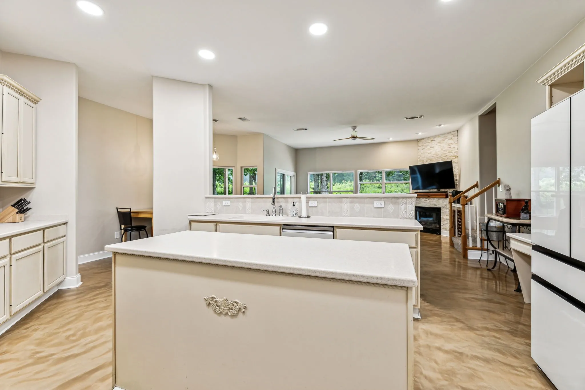 Priced below neighborhood comps! Welcome to 1035 Benton Harbor Blvd, steps from Old Hickory Lake, this home was built for entertaining!! Over 1 acre on the end of a cul-de-sac! Large kitchen with island and wraparound bar area open to the living room, 3 bedrooms, 3 1/2 baths with an office on main level and a 4th bedroom or bonus room upstairs with its own half bath, lots of mature trees, oversized covered patio, So many recent upgrades–new roof, all new kitchen appliances, custom closets, all new paint and flooring.