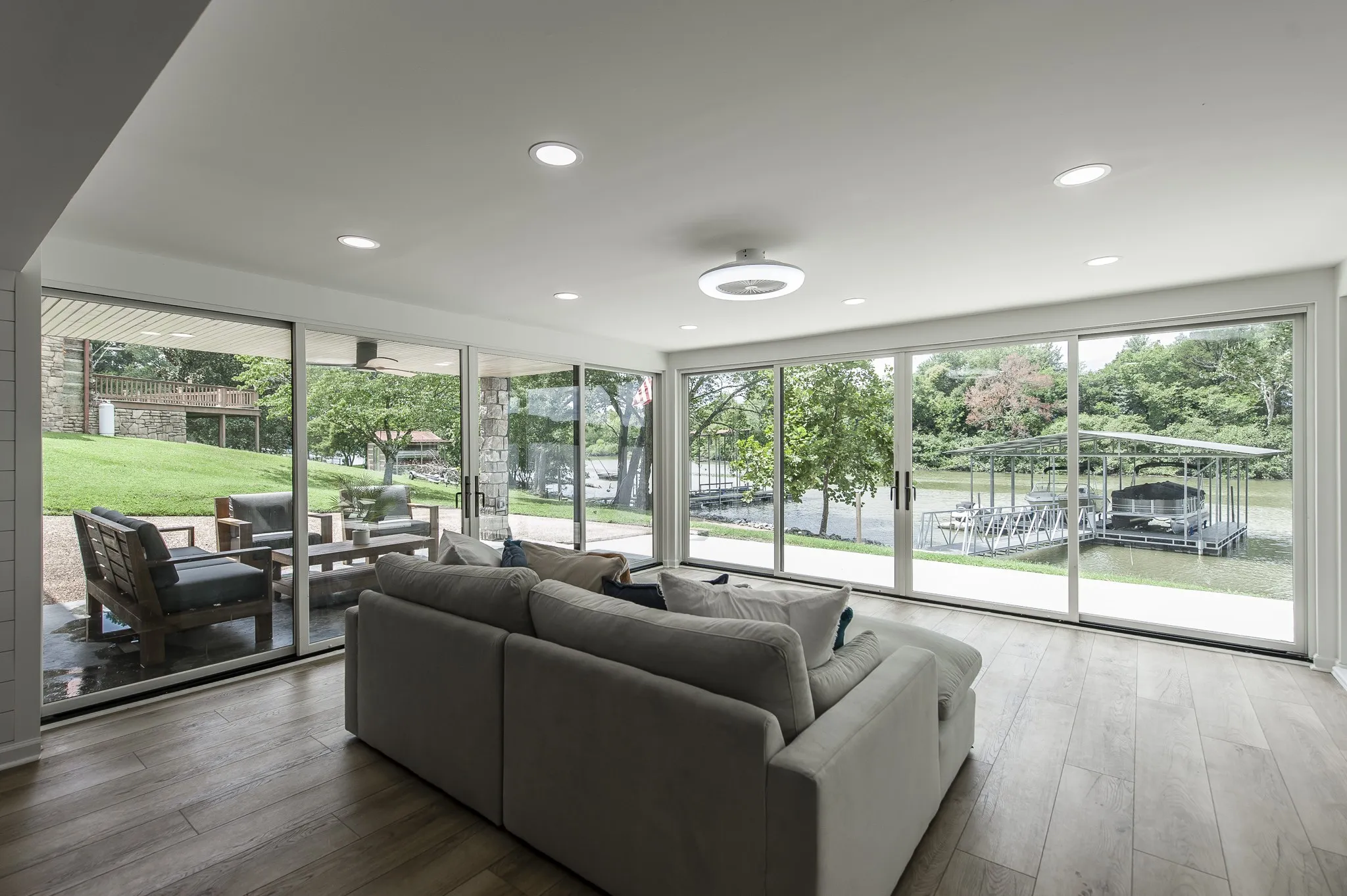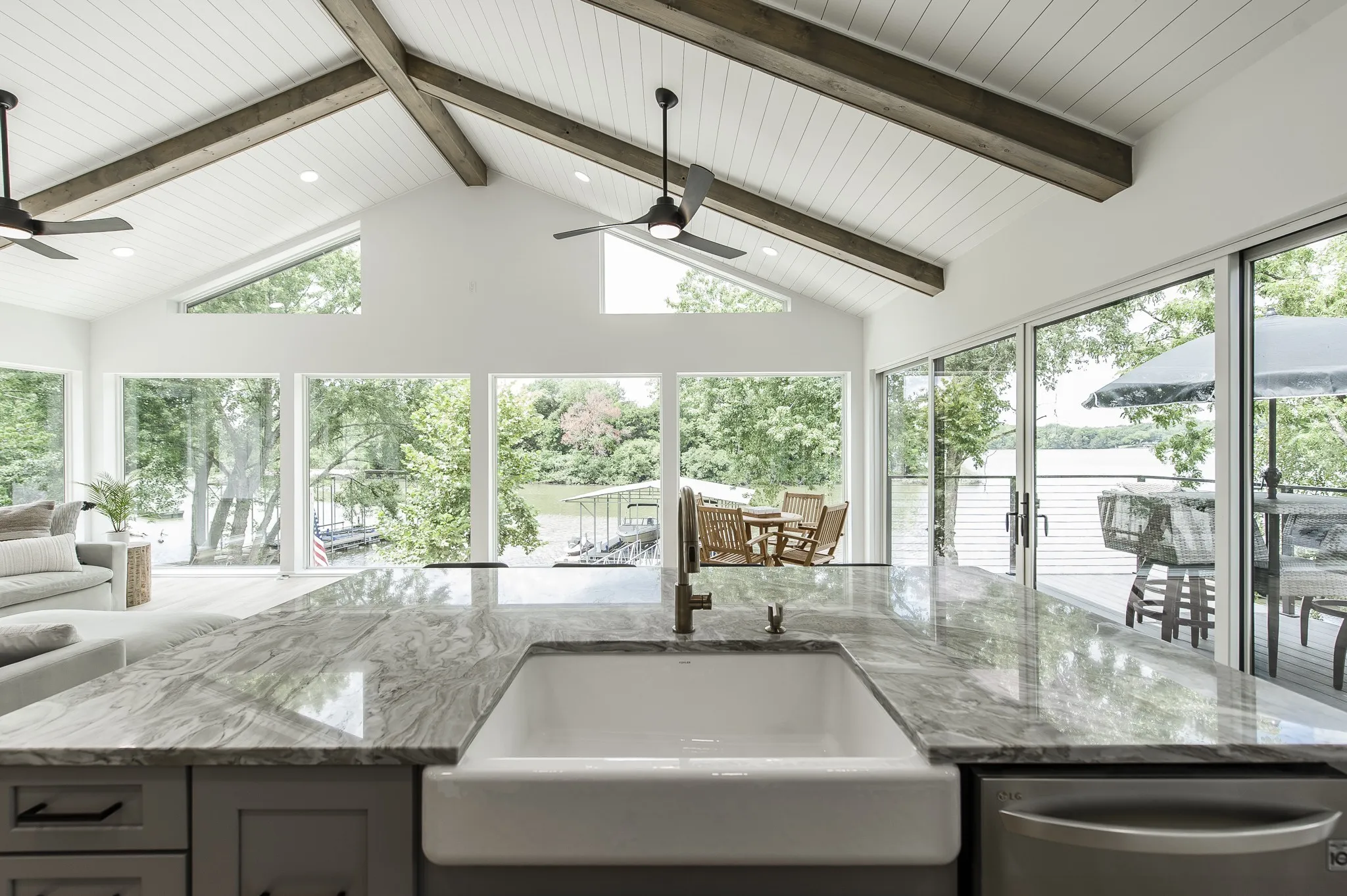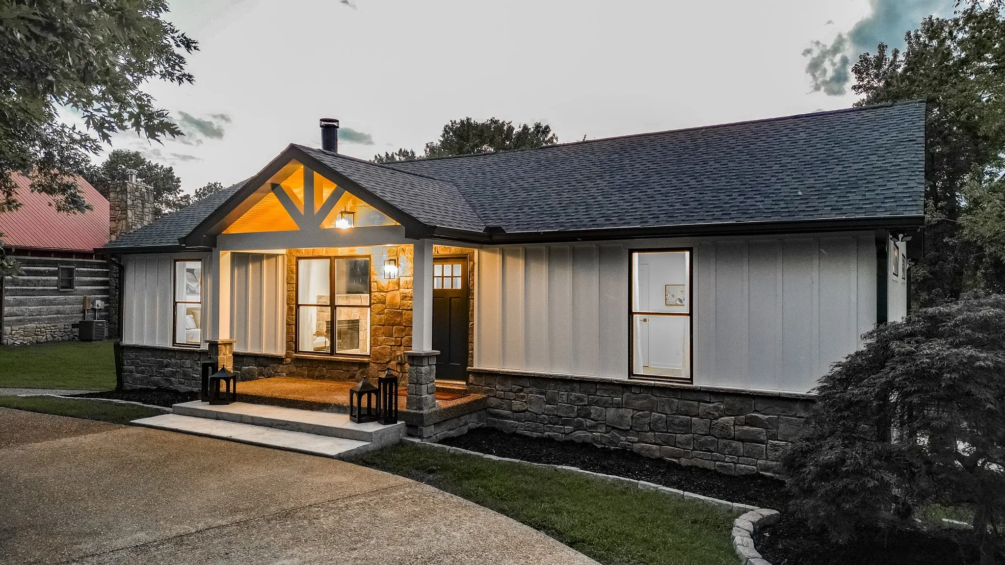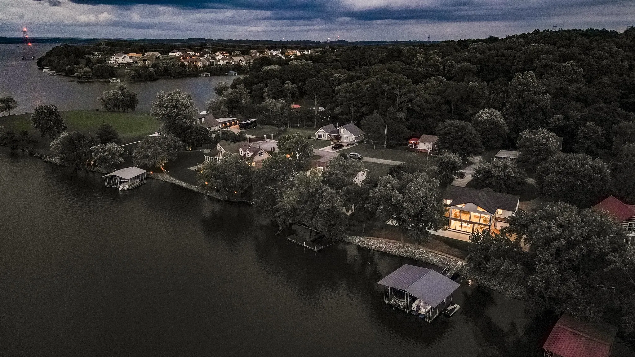 On the shores of Old Hickory Lake, this home is the perfect mix of country chic and refined luxury Offering a seamless blend of California charm and contemporary elegance, this carefully designed and unparallelled property, promises an unrivaled escape from the hustle and bustle. Better now than ever, welcome to your own private haven where luxury, comfort, and serenity weave into a timeless retreat. Step inside and you’ll find wooden beams traversing the ceiling in the great room,with west facing lake views enjoyed through floor to ceiling windows spanning the entire length of the room, filled with warmth and character. The heart of the home is the gourmet kitchen, a true culinary masterpiece. This home is the perfect second home, a weekend getaway, or a money making investment property. Sellers are only making this home available to provide the new owners years of enjoyment. This property is eligible for Short Term Rental but requires approval from the Board of Zoning Appeals