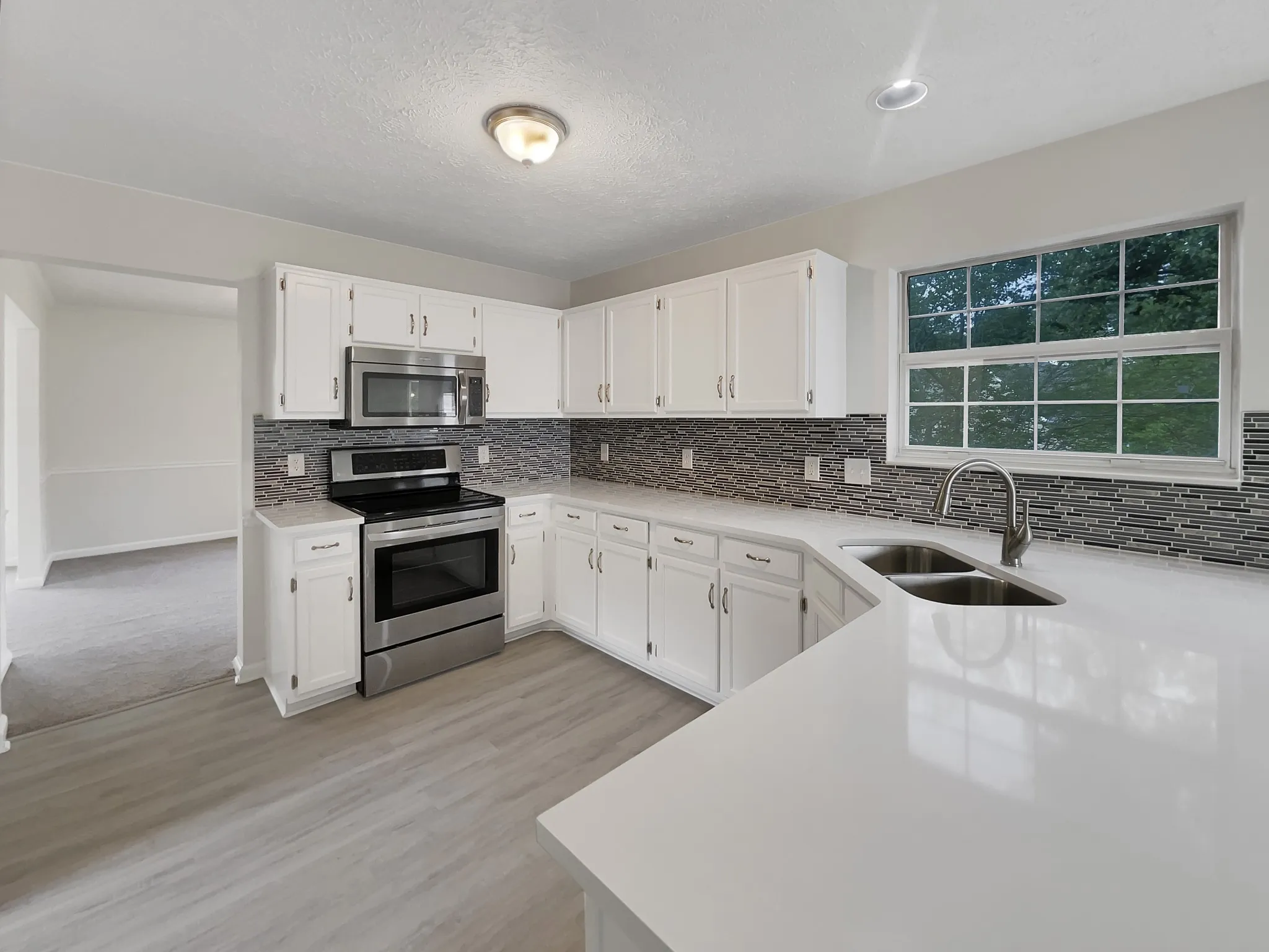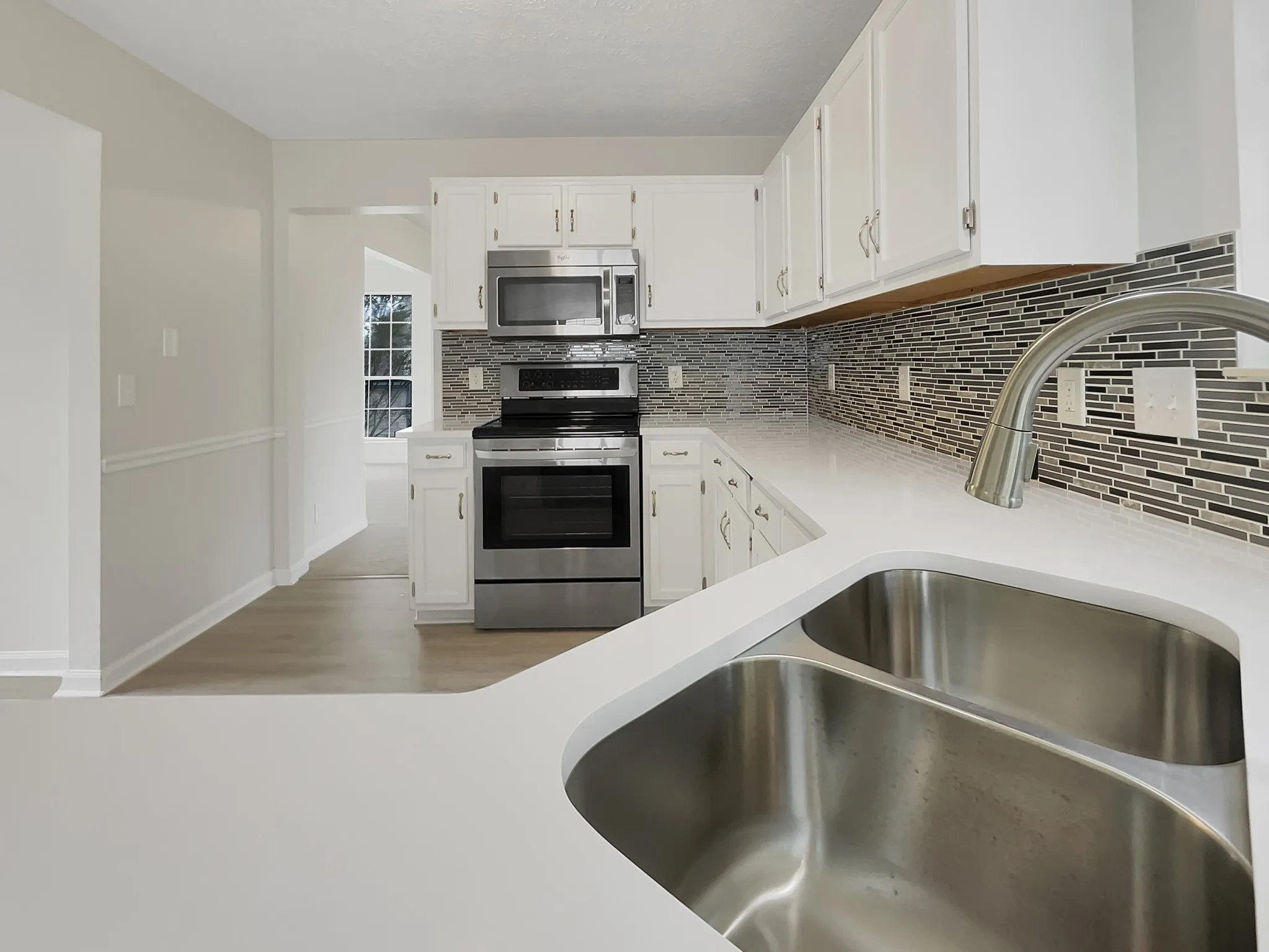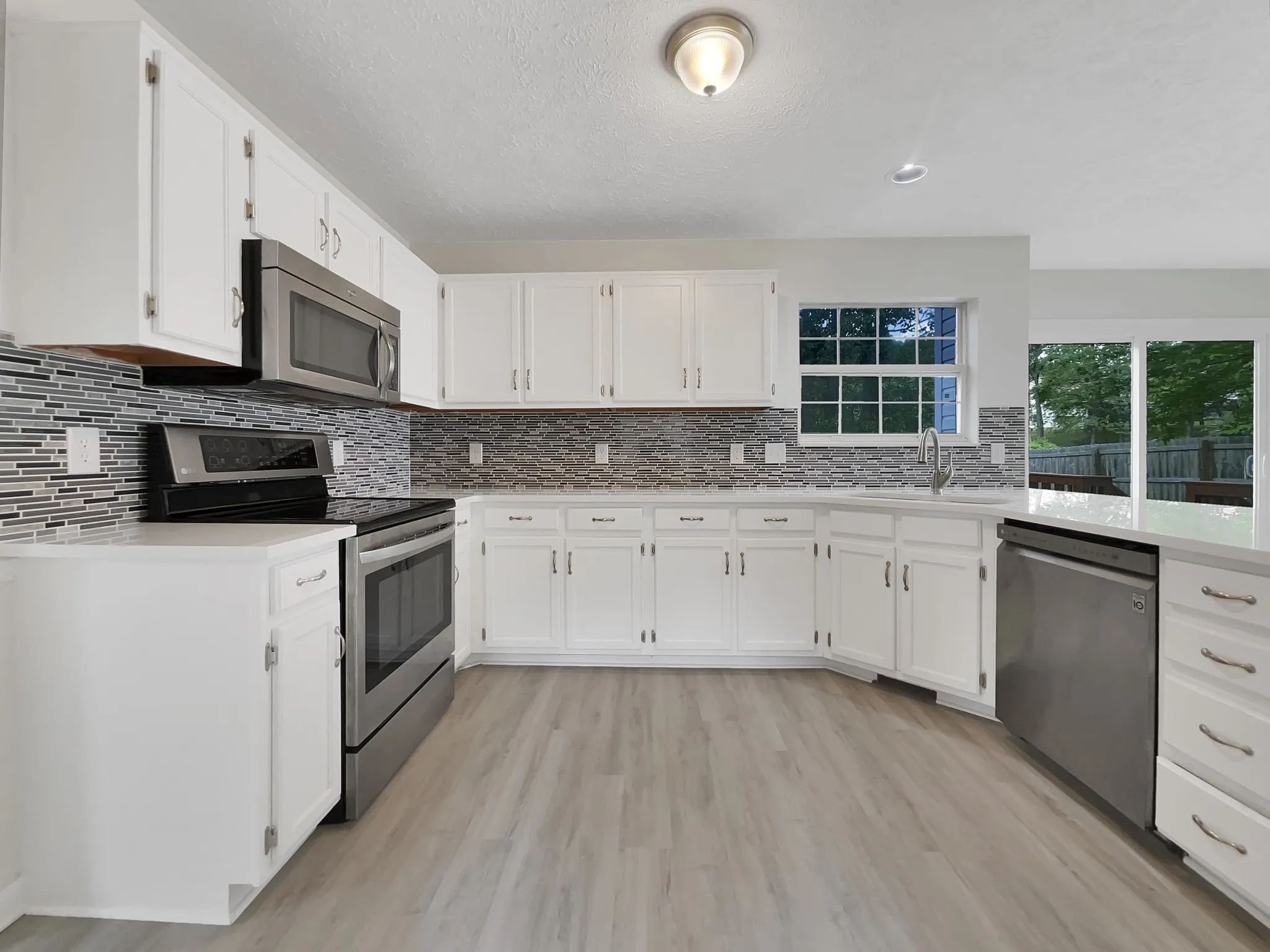 Come see this charming home now on the market! This home has fresh interior paint, new flooring throughout the home and new appliances. Discover a bright and open interior with plenty of natural light and a neutral color palette, complimented by a fireplace. Step into the kitchen, complete with an eye catching stylish backsplash. Head to the spacious primary suite with good layout and closet included. Additional bedrooms provide nice living or office space. The primary bathroom is fully equipped with a separate tub and shower, double sinks, and plenty of under sink storage. Take it easy in the fenced in back yard. The sitting area makes it great for BBQs! A must see! This home has been virtually staged to illustrate its potential