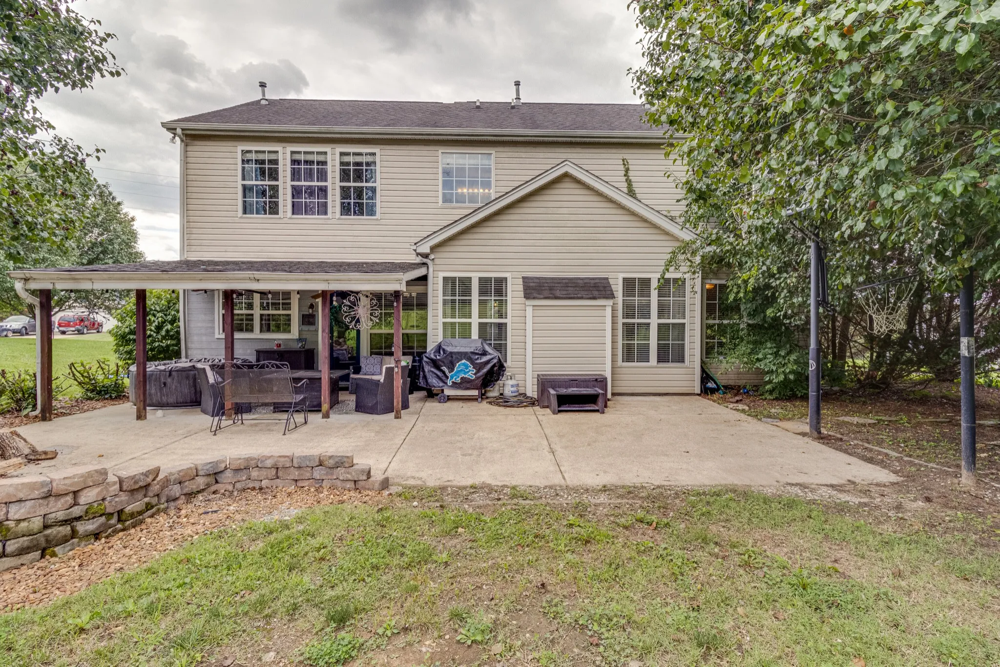 Welcome to this beautiful home in the Park @ Mt. Vernon, This property offers just over a half acre lot which backs up to the common area. Entertain in your back yard while enjoying the partially covered 17×36 extended patio with fire pit and basketball goal. The kitchen features granite countertops and SS appliances. Beautiful laminate, tile and carpeting throughout. Hardwood stair treads. Zero entry down. Flex room and office on the lower level. New lighting upstairs bath faucets & fresh paint, new tile around master tub, large master suite.. Lower than average association fees. Walking distance to the community pool and play area. Wilson County schools, convenient to the Greenway, Charlie Daniel’s Park, shopping, dining. 15 mins BNA airport. Approx. 30 mins. to downtown Nashville.