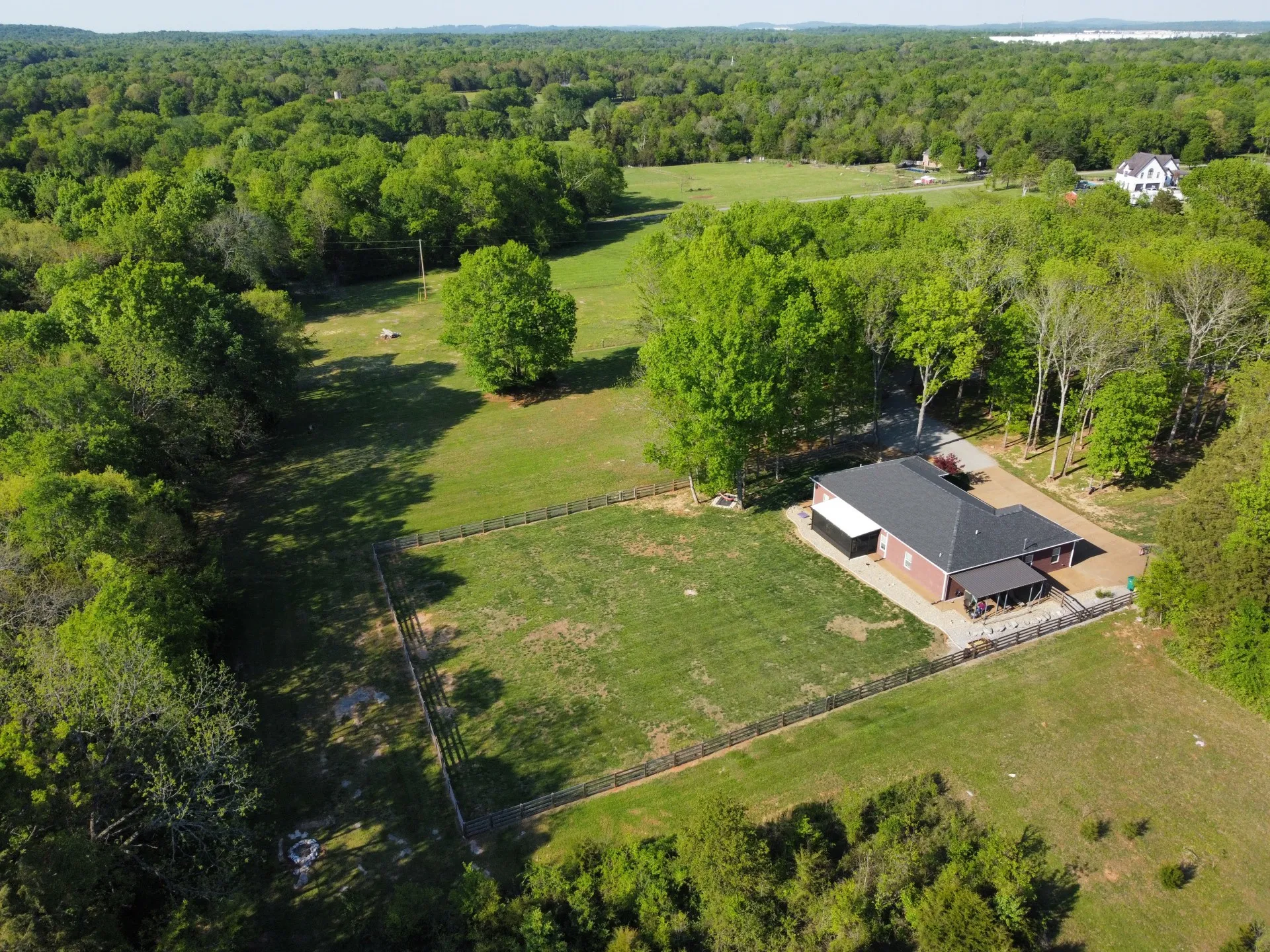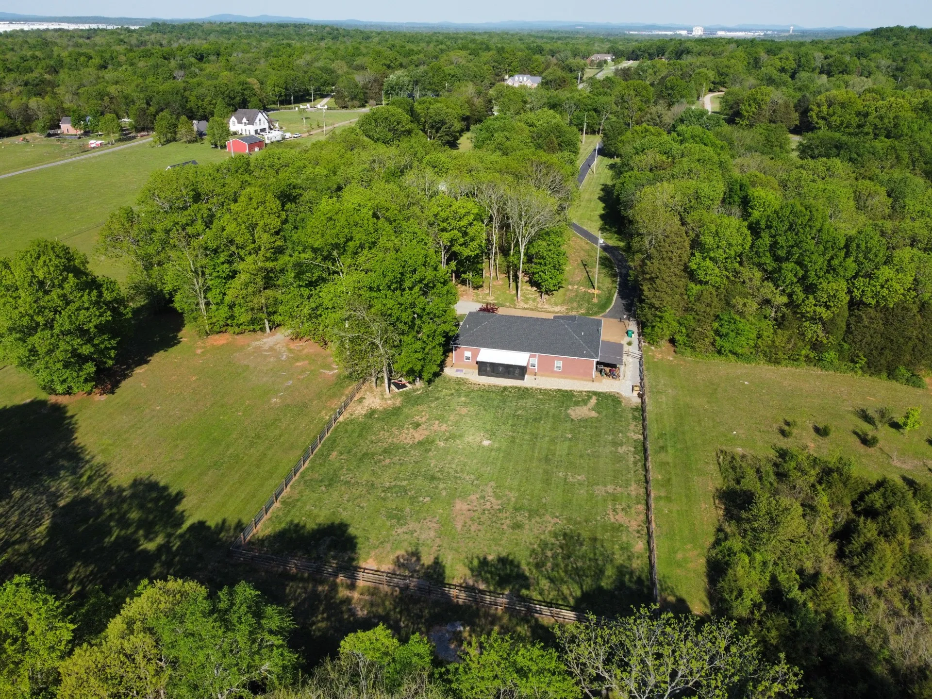 Like-new home on secluded, peaceful 5 acres set far off road & ~1 mile from Percy Priest Lake. Large primary suite w/ walk-in tiled shower & large closets. 2 more spacious bedrooms w/ full bath w/ tub. Office or 4th bedroom. Open-concept living & dining areas. French doors to screened patio w/ fans. Fenced property, 2 covered porches, large metal barn, 2 sheds, 2 carports, firepits, & attached 2-car garage. Many updates. Easy living.