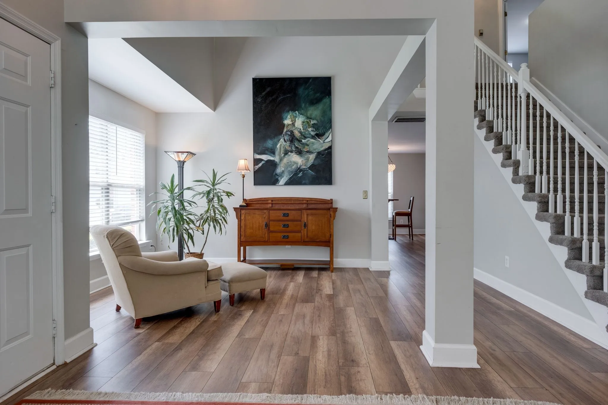 Come and enjoy this must see, sun-splashed end unit with soaring vaulted ceilings and unique interior architectural elements. Open concept living and dining with windows galore. Generous primary bedroom located on the main level. Recently renovated en suite bath with large walk-in shower. His and her closets. Built-in’s and gas fireplace in the living room with access to the back patio that offers sunshine, leafy views, and privacy. Updated, dine-in kitchen with tons of space to get creative. Office and 2 beds upstairs, one of which is oversized and would make a great den/flex space. Lovingly tended, mature gardens surround the property. Front entry garage.Terrific location to Nashville, the airport and especially if you love the lake life!