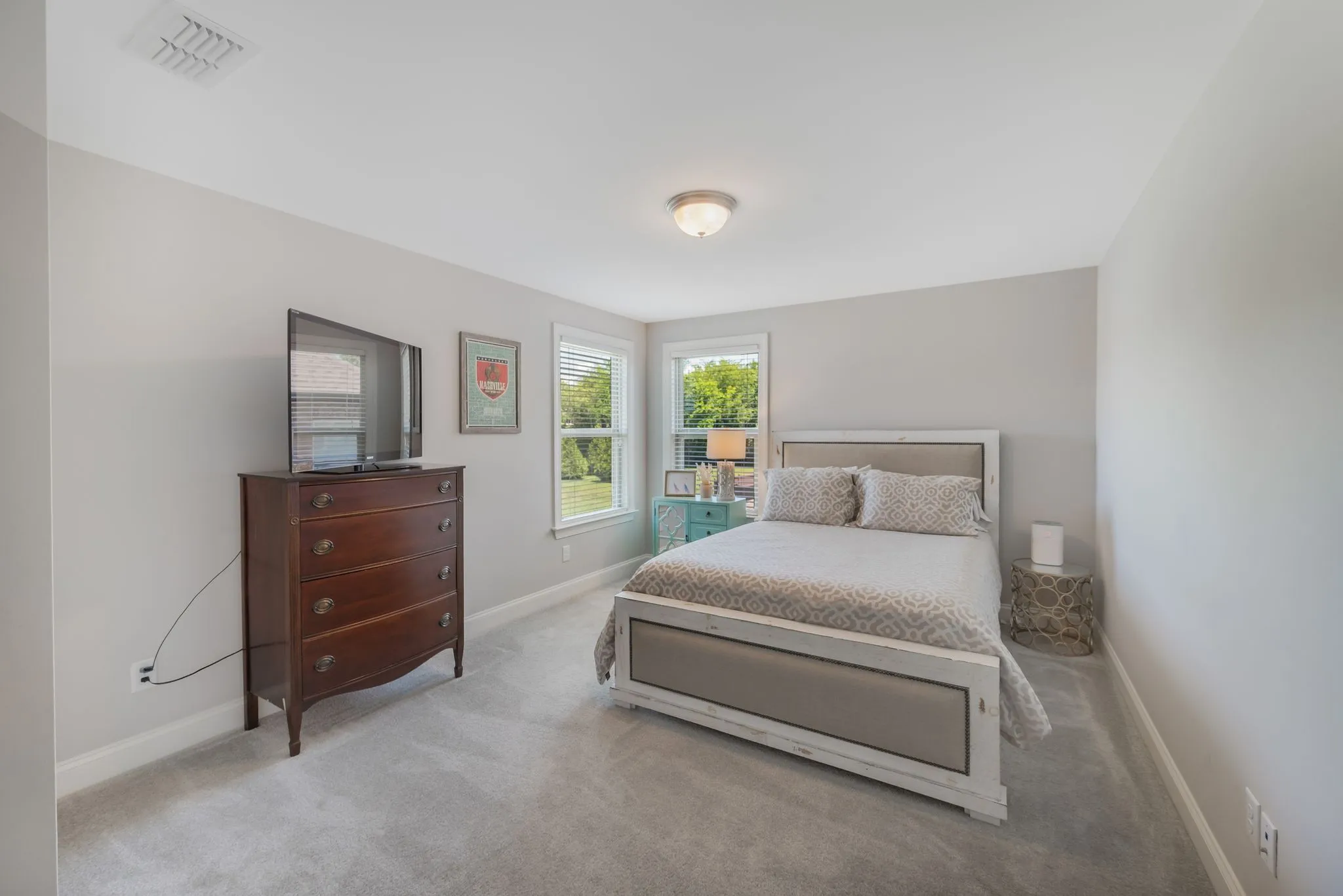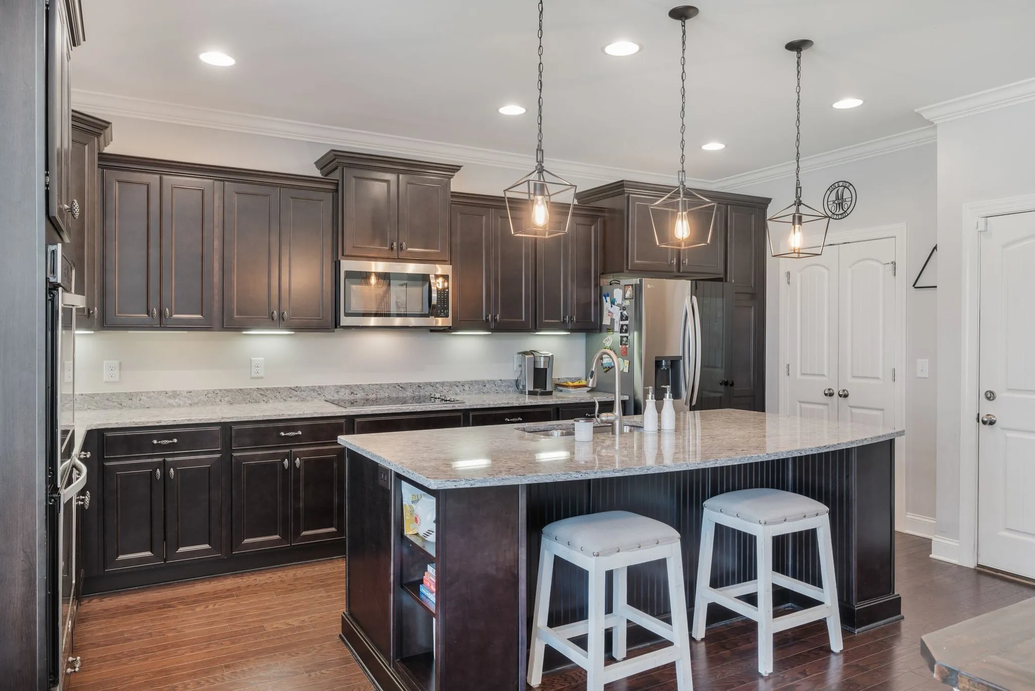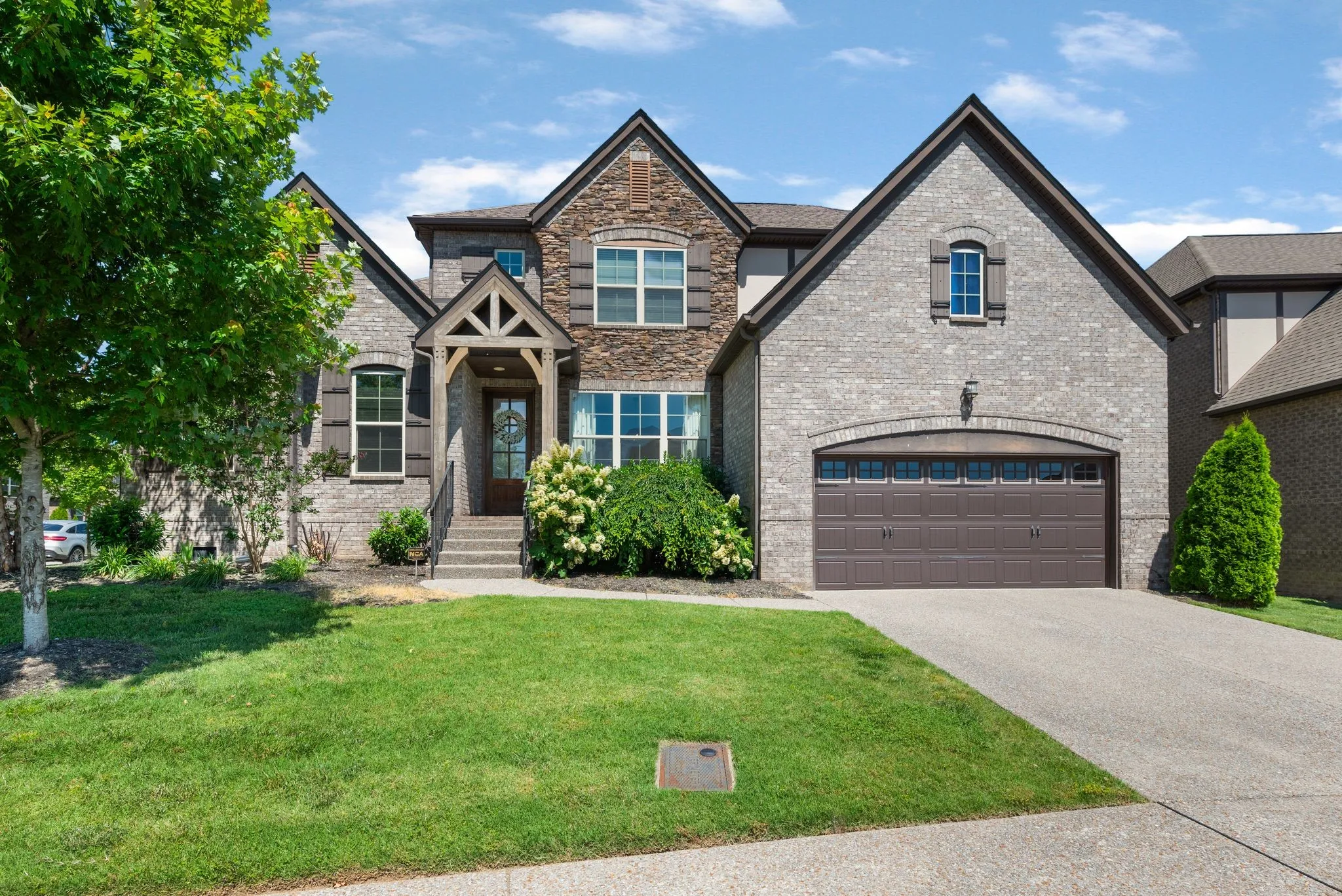Welcome to your dream home. This stunning residence boasts all possible upgrades: Stacked Stone and Brick exterior, Wainscotting, Coffered ceiling, Double-sided fireplace, hardwood floors, and a spacious eat-in kitchen with a work island and Stainless steel appliances. The family room overlooks the spacious private backyard on this corner lot. The house is wired for Ethernet. The Primary Bedroom on the main level with trey ceilings, his & hers walk-in closet areas, a large Primary bath offers convenience and privacy. Upstairs are 3 spacious bedrooms, a full bath, a bonus room, and a large conditioned storage (COSTCO) closet! Minutes to downtown Nashville, shopping, health care, golfing, and boating!