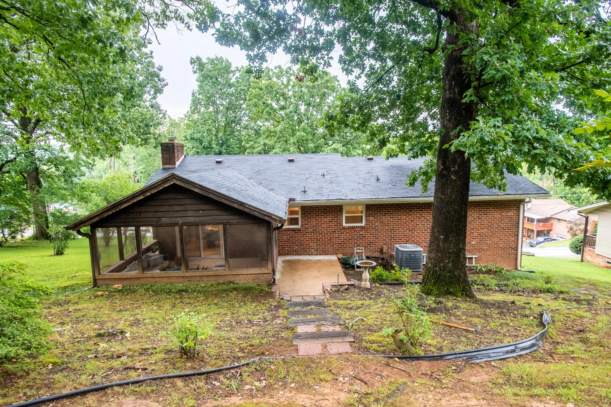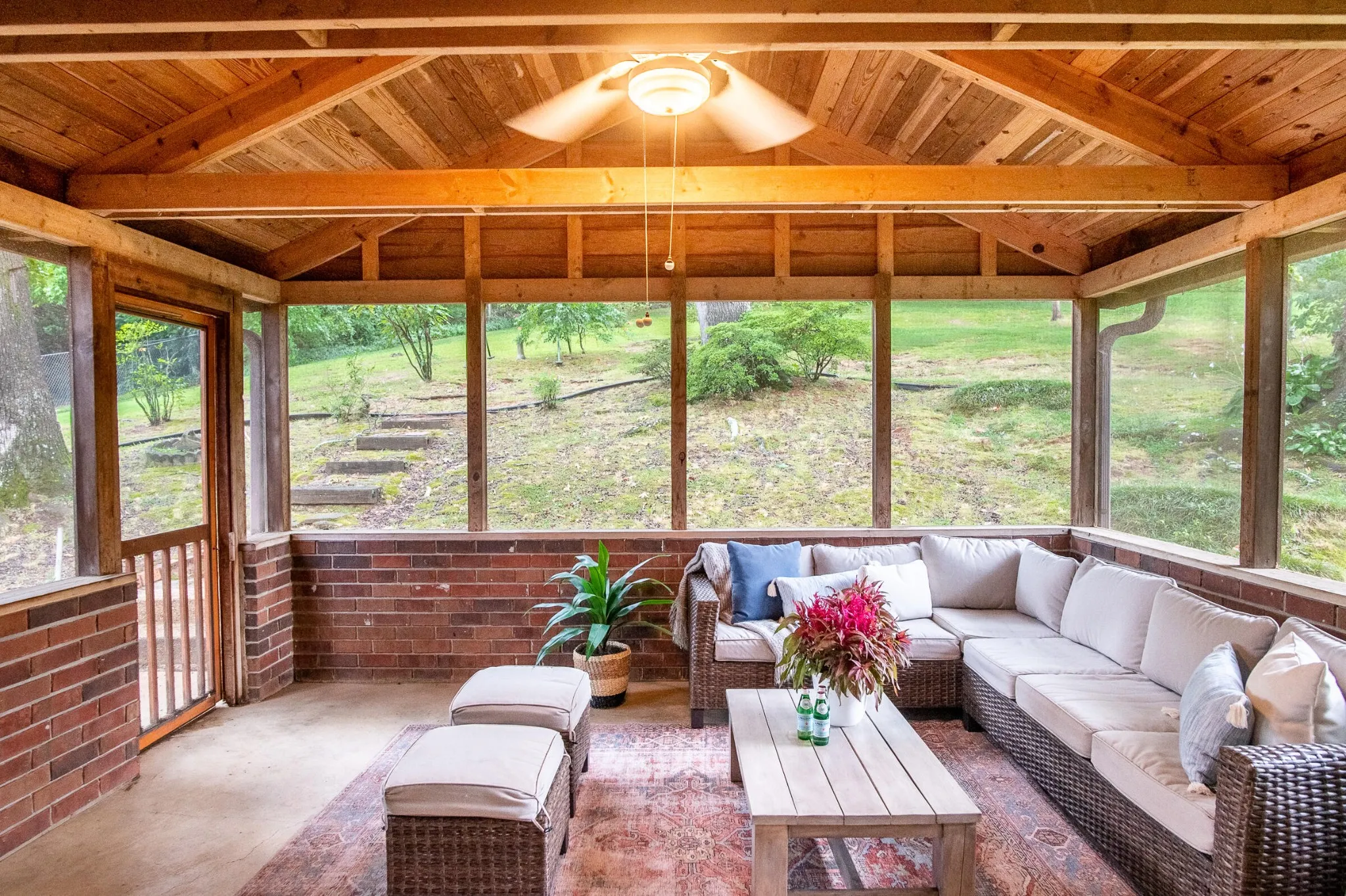 Enjoy morning coffee on the screened in back porch overlooking the private back yard