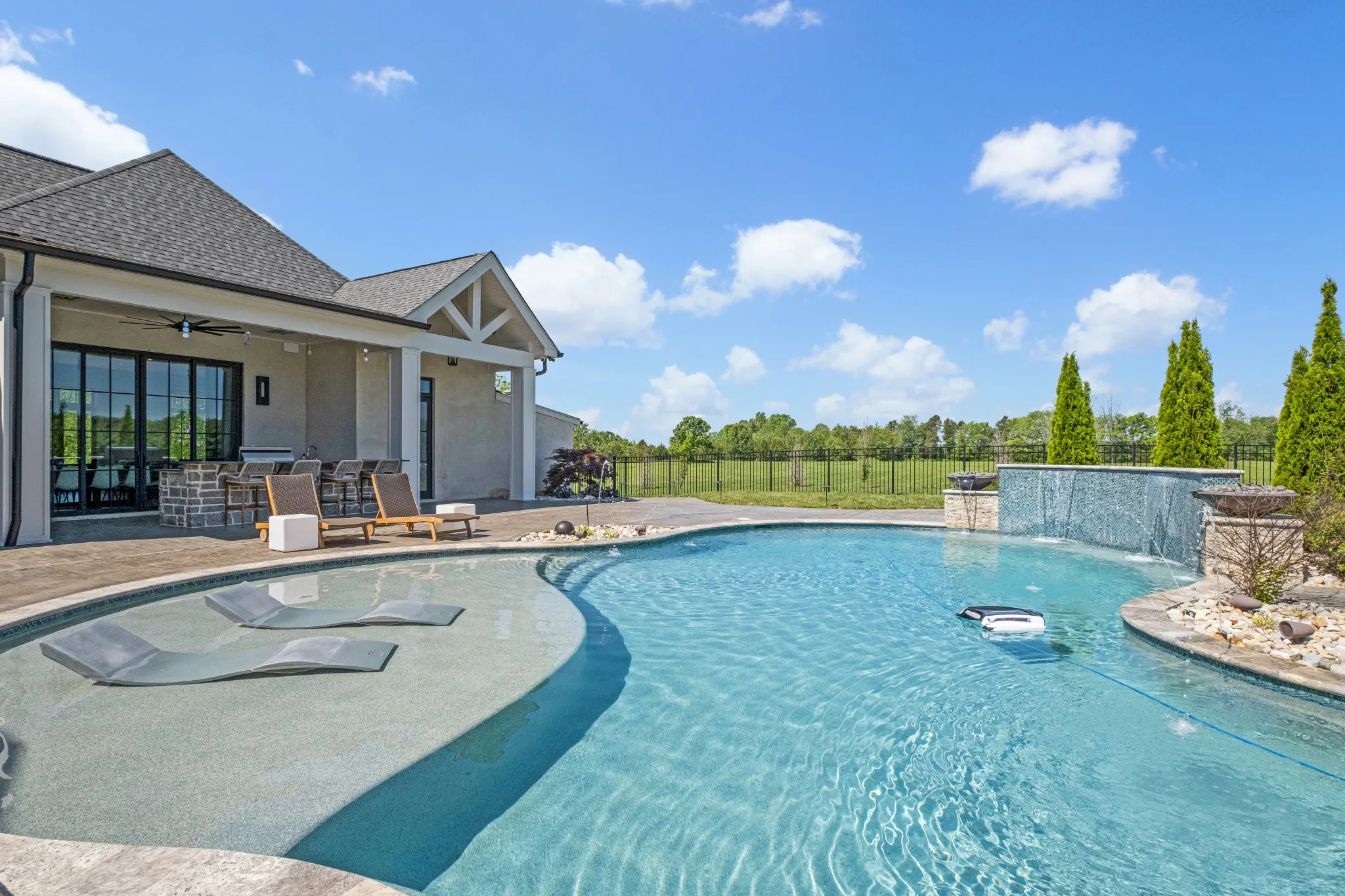 Located less than a mile from Providence, this stunning residence offers a perfect blend of elegance and comfort. Securely nestled on 5.34 acres, this gated property provides a secluded, private setting. Step inside to be greeted by soaring ceilings and expansive windows that flood the space with natural light. Built in 2021, this estate showcases meticulous attention to detail with every detail carefully crafted. This home features an open floor plan and provides a seamless flow for everyday modern living. Two full kitchen spaces, elevator for easy access to all levels, heated tile flooring, tornado shelter, hidden bar are just a few of the many details this home has to offer! Featuring state of the art home automation and geothermal technology. Experience luxury in the lavish outdoor pool area, a perfect retreat for relaxation and entertainment. Seize the chance to make this extraordinary residence your own and experience the unparalleled luxury and comfort it has to offer