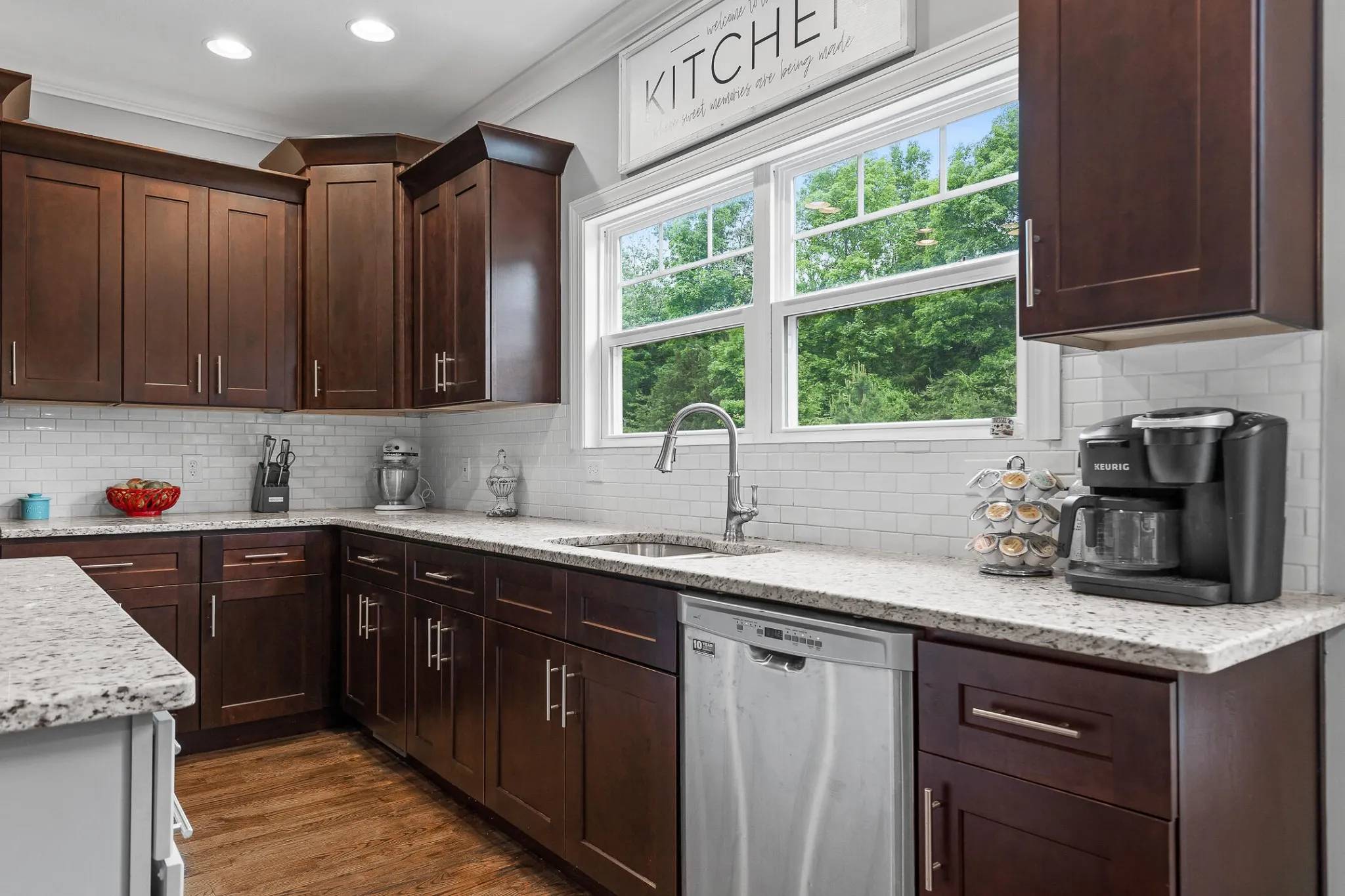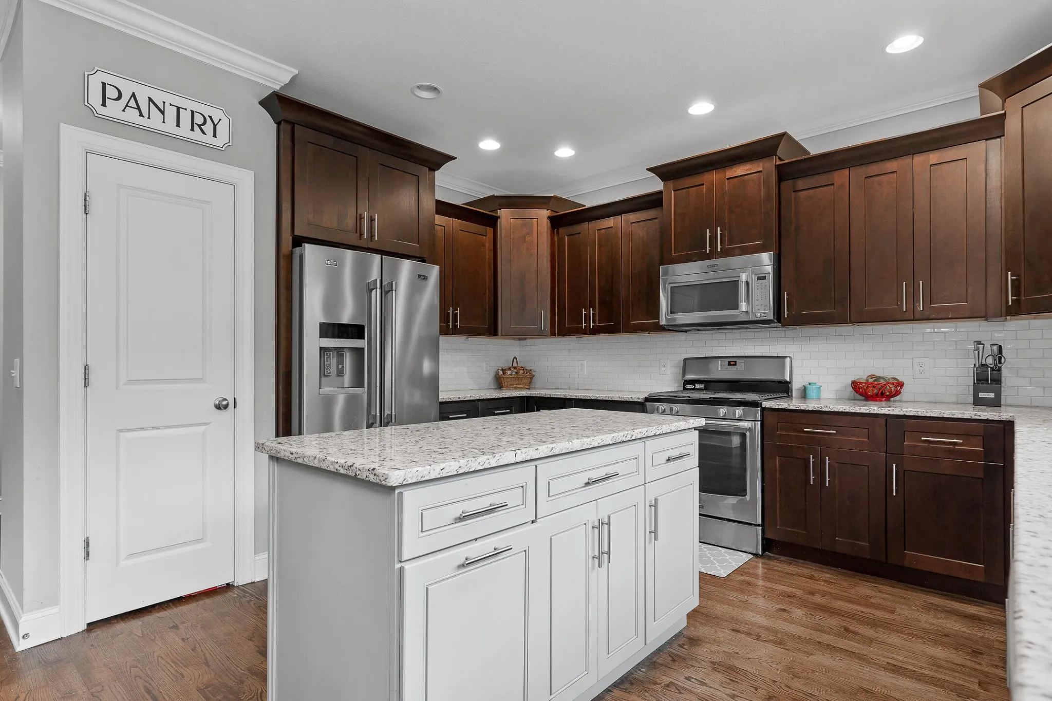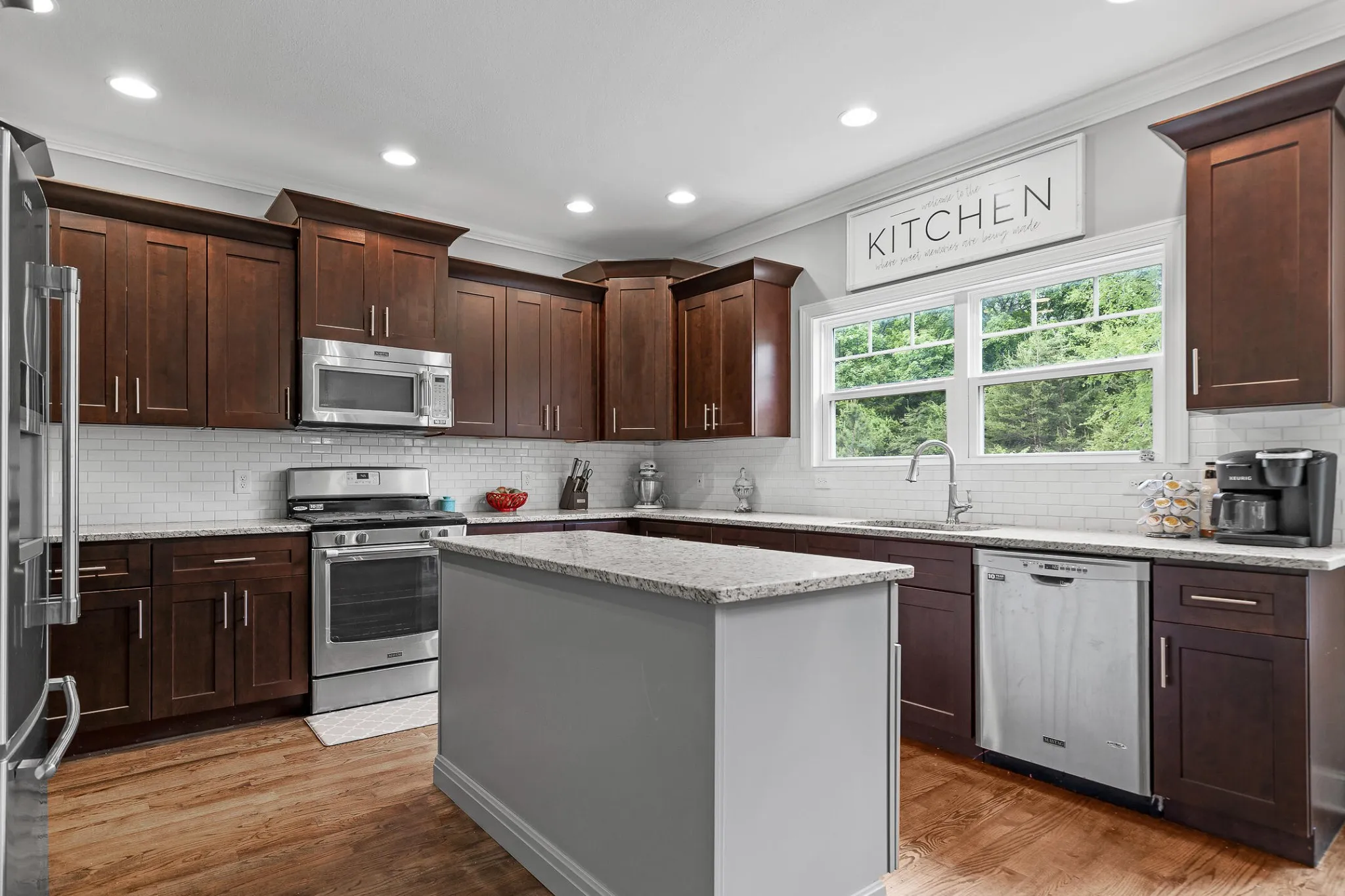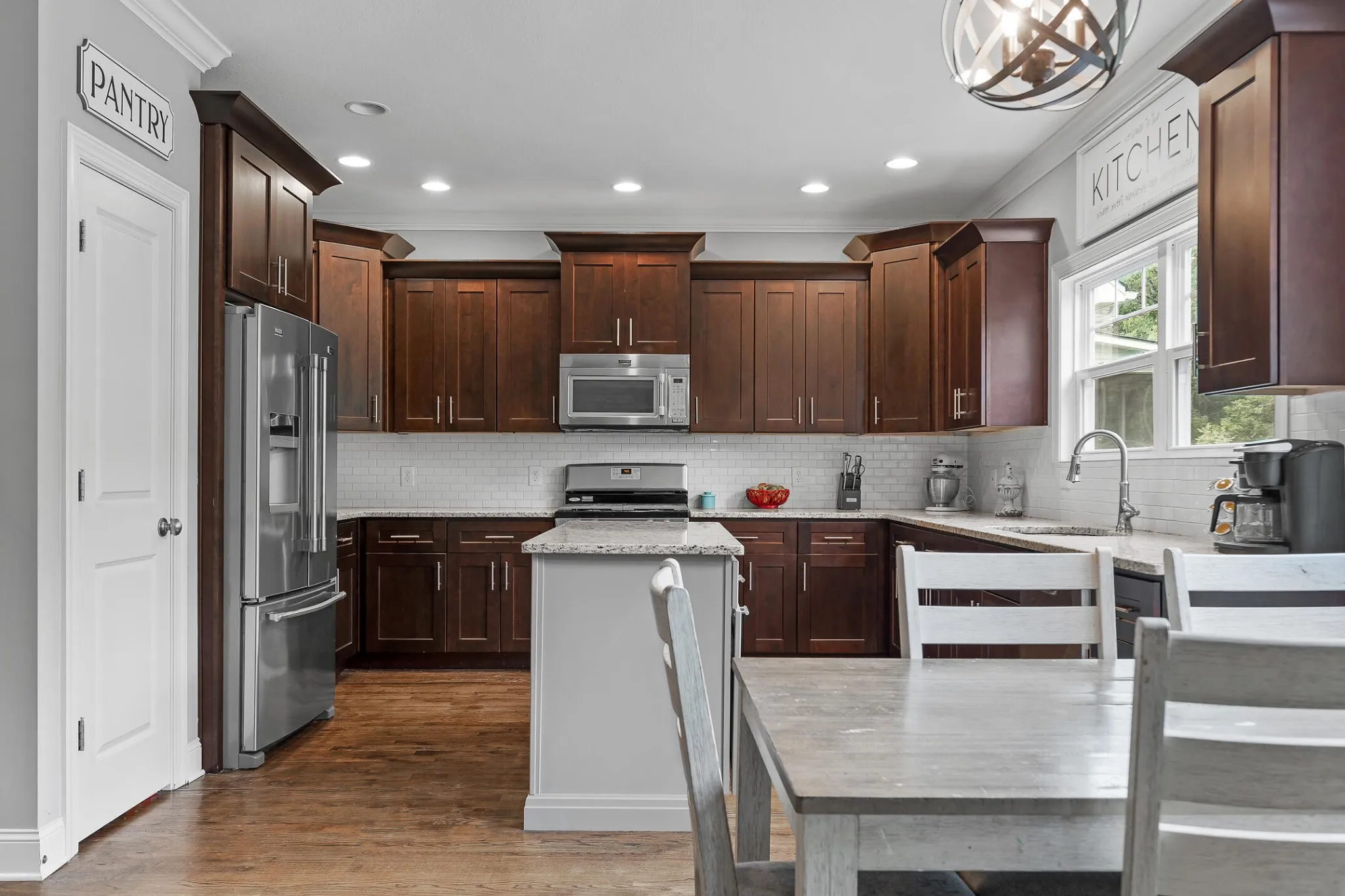 Stepping inside, you’ll be struck by the open floor plan with gorgeous details and finishes, elegant hardwood floors and master on the main.