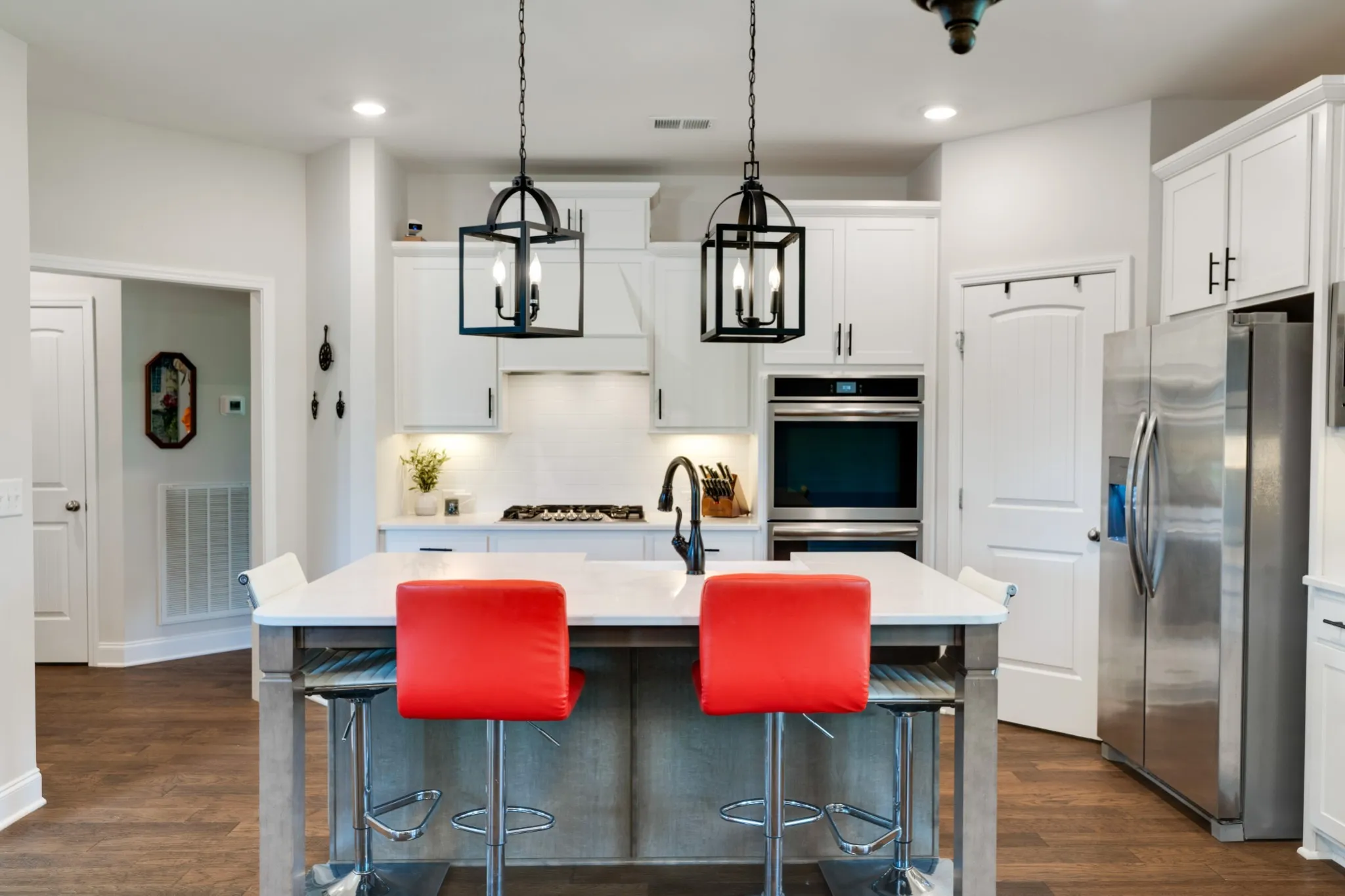 Welcome home to 513 Lingering Way. This 4 bedroom 3.5 bath home situated on a premier corner lot was slated to be the model home and has over $80,000 dollars in upgrades. The gourmet luxury kitchen has upgraded cabinetry with staggard uppers and large crown, quartz countertops, double ovens, gas stove with hood, and so much more. The stunning stacked stone gas fireplace in the living room goes all the way up the 2 story ceilings. So much space upstairs including a bonus room with beautiful french doors. The primary suite on the main level with a tray ceiling is spacious and the bath has double vanities and a large tile shower. Out back you have a brand new screened in porch to relax and a large fenced in backyard. New window treatments and security system throughout the home. Walking distance to all that Millstone has to offer including the pool, clubhouse, and fitness center.