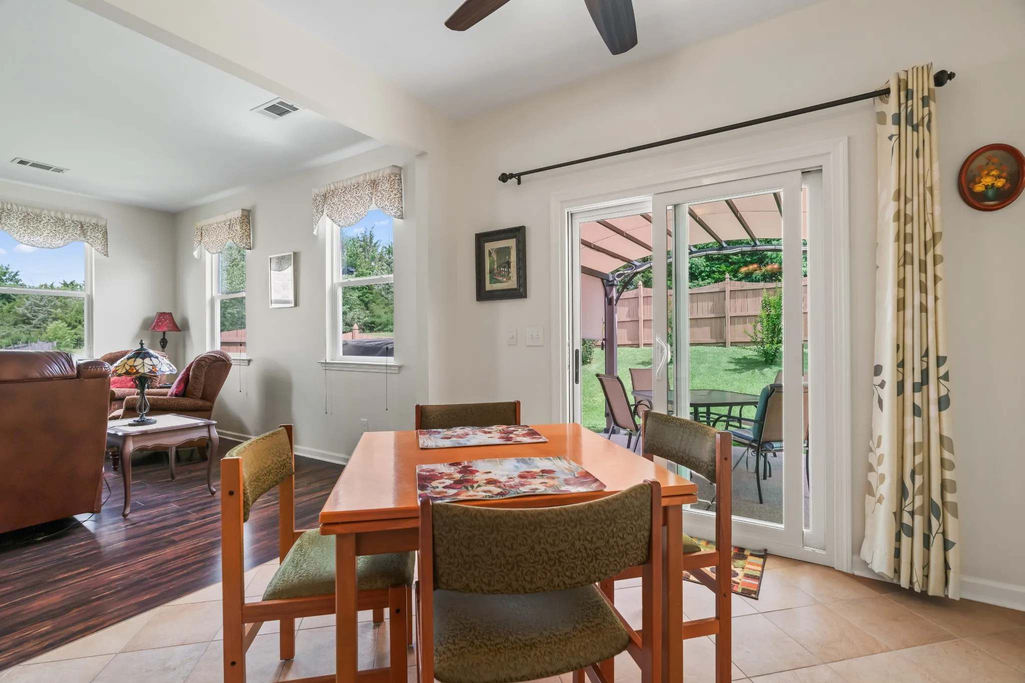 ***NOW TAKING BACKUP CONTRACTS!!! IMMACULATE Well maintained 1 LEVEL home in Kelsey Glen! Zero-Entry steps into the house (maybe half a step)!! 3 BR, 2 Bath, No Carpet! Bottom/Top shades in Living Room & lots of natural light! 10 foot Ceilings throughout! Kitchen has slider shelving. New KitchenAid Dishwasher-(very quiet), and Refrigerator 2024, New Sliding Back Door ($7500) 2024. New AC -15 Seer and Roof 2023, **See the entire upgrade list in the PCD. Outdoor living area patio with a Pergola & Canopy perfect for entertaining or relaxing! Attached Sun Umbrella for a little shade while you’re grilling! Fenced back yard – 2-Car Garage with storage shelving! Community pool, playground, sidewalks and underground Utilities.