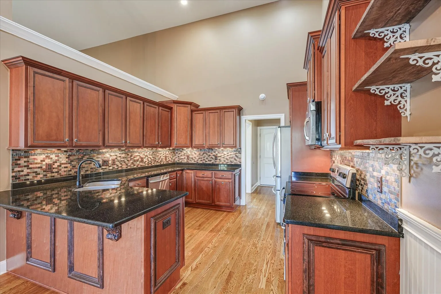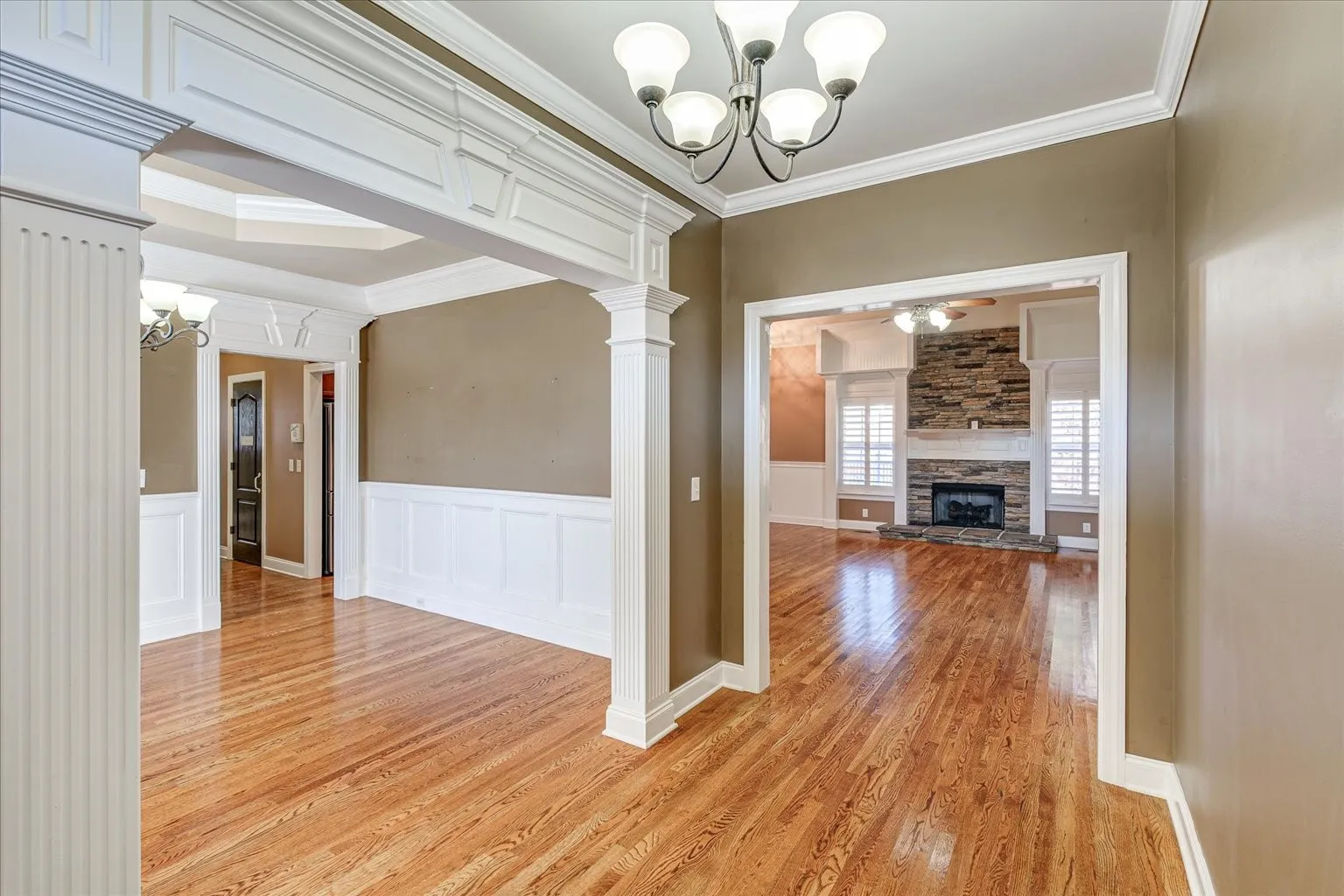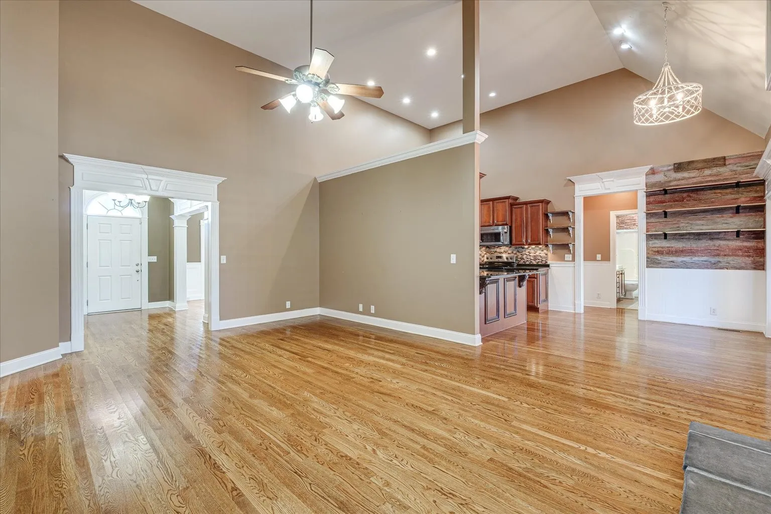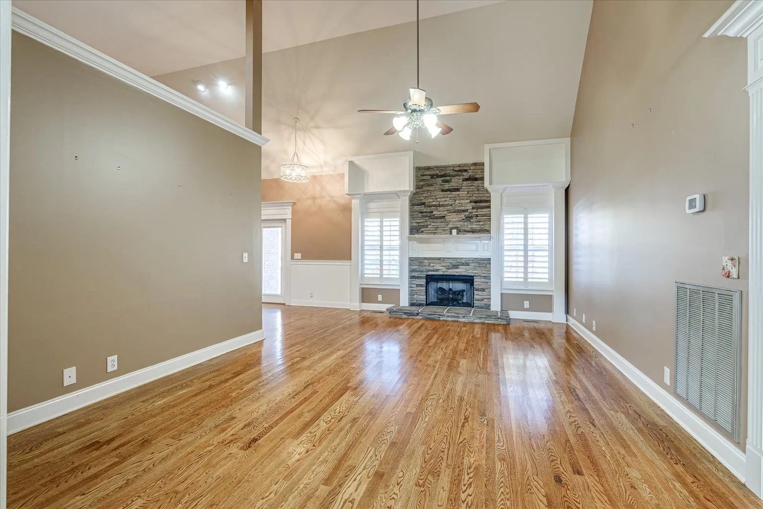 Beautiful all brick home featuring 2,506 square feet with 3 bedrooms and 2 bathrooms. No HOA! Vaulted ceilings in main living area, kitchen and primary bedroom. Bonus room upstairs can be used as a 4th bedroom. Lots of natural light throughout. Custom wood work with open floor plan and plantation shutters on lower level. Large laundry room Large backyard deck that is partially covered as well as firepit area and gazebo. Perfect for entertaining! Fully fenced in backyard!
