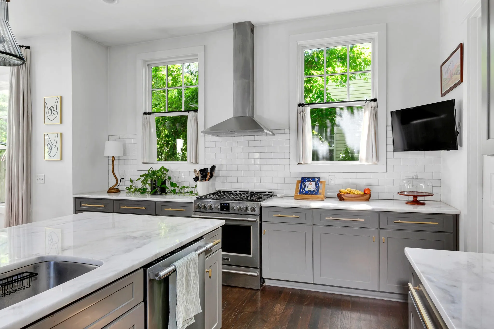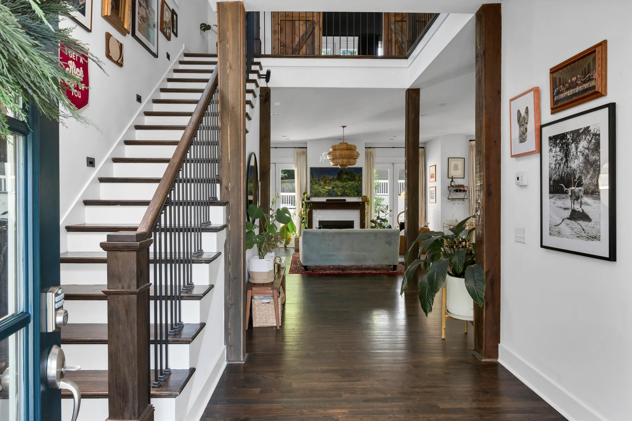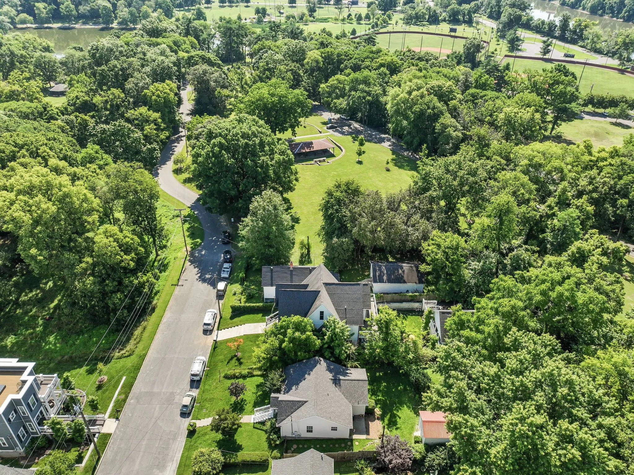 One-of-a-kind entertainer’s dream home right on Shelby Park. Indoor/outdoor living at its finest. Open all 6 back double doors that lead to a covered back deck and look onto your extremely private yard, yet in the heart of Urban Nashville. Hardwood floors throughout, moody gray cabinetry to the ceiling in the kitchen, and luxury wallpaper in the bathrooms and bedrooms. Retreat to your primary bedroom suite – complete with vaulted ceiling with wooden beams, double vanities, large walk-in closet, and working gas fireplace. This exquisite, stylish home has previously been featured in various magazines and online publications. The perfect accessory to this show piece is the rotating mirror ball fixture that adorns the grand entryway. A garage port with alley access and electric car hookup is located behind the house. In addition, behind the fenced yard, you will find a spacious elevated hardscape.