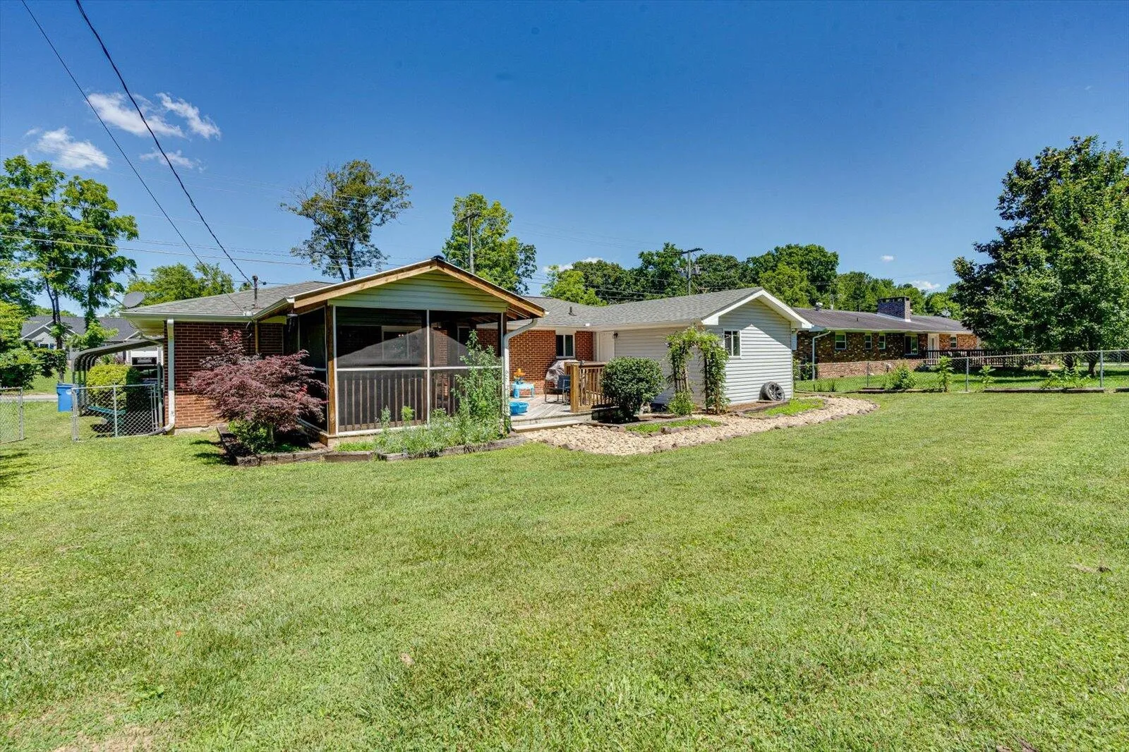 Welcome to this beautifully updated, turn-key home, perfectly situated in the upper part of Hwy 58. Conveniently located near 153, Hwy 58, and still close to Downtown, enjoy the convenience of nearby shopping, parks, food, and being minutes from Harrison Bay for lake enthusiasts. This charming residence offers one-level living with a spacious open floor plan. The kitchen flows seamlessly into the living area, complemented by a master bedroom and two additional sizable bedrooms down the hall. Recent updates include a remodeled bathroom, fresh paint, new lighting and carpet, and a new dishwasher installed in 2022. Step out onto your covered screened-in back porch to enjoy the fully fenced, beautifully landscaped private yard. With its prime location and recent remodeling, this is the home you’ve been searching for! Call today and schedule your private tour!