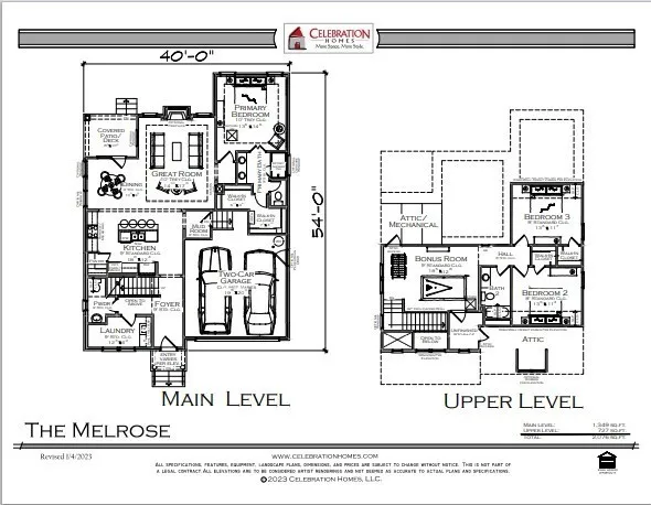 Celebration Homes Designer Melrose Plan offers More Space & More Style! This home features the Owner’s Retreat on main level, accompanied by a spacious laundry room. Upstairs, find two bedrooms, one bathroom, and a versatile bonus room. This home comes complete with included upgrades such as hardwood stair treads, a gas fireplace in the great room, upgraded quartz tops along with stainless Whirlpool appliances in the kitchen. Enjoy outdoor living on the rear covered porch and relish in the details like cubbies with hooks in the mudroom, soft-close doors and drawers in the kitchen, and decorative trim panel detail in the foyer and rear of the kitchen island. There’s still time to make design selections on this home. Don’t Forget To Ask About Our Huge Builder Incentives! Harvest Point is a master planned community offering resort style pool, walking trails, playground and much more! *** The home pictured is of a different Melrose in another community***