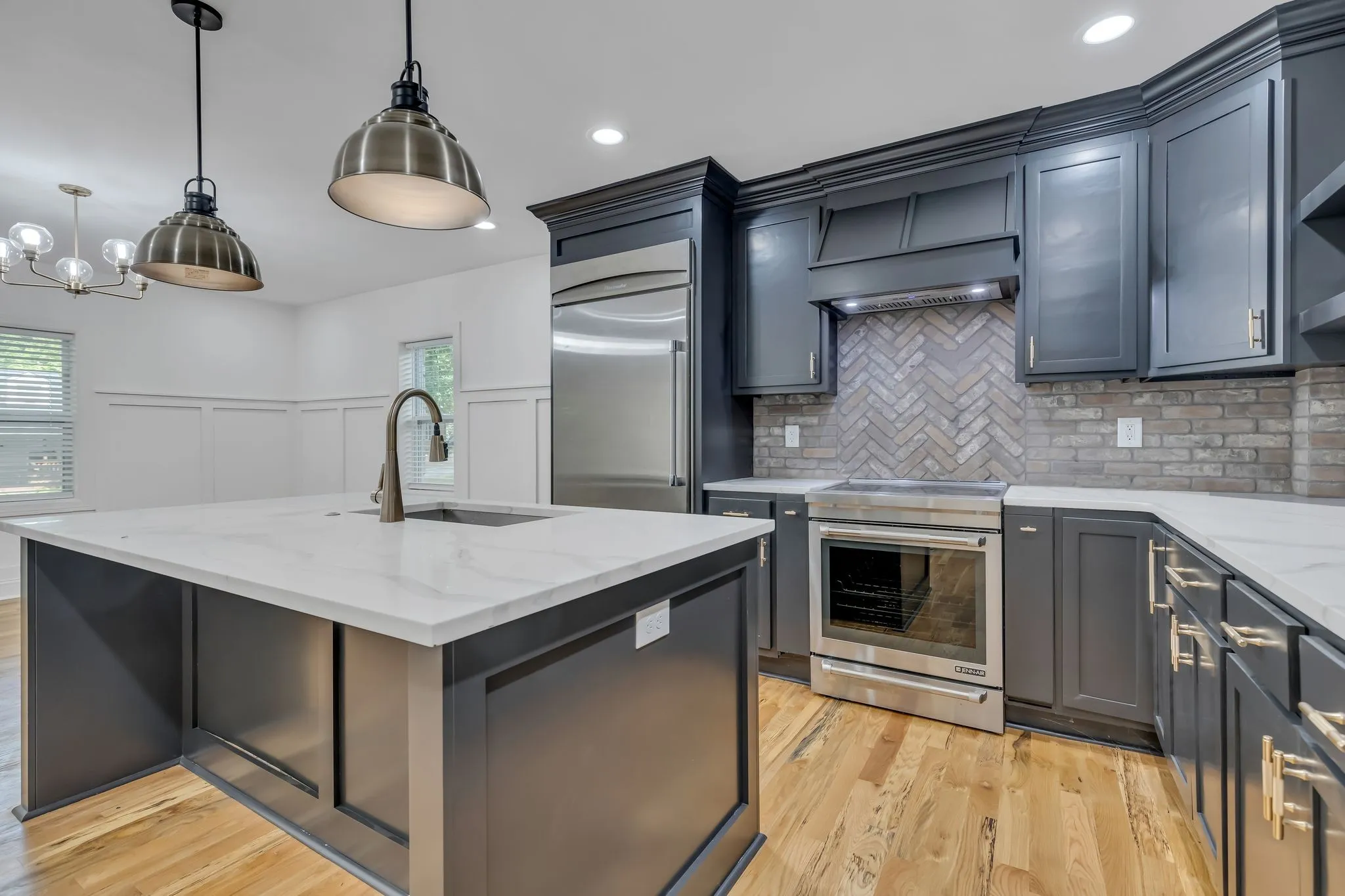 Completely reimagined and transformed, this 1940s home was expanded in 2021, offering a unique blend of charm and modern luxury. You’ll enjoy the open floor plan seamlessly connecting the living and kitchen area. At the heart of the home lies a stunning, contemporary kitchen complete with Quartz countertops and top-tier JennAir appliances—including an induction range, built-in oven, microwave, and refrigerator. The main level also features a Primary suite, boasting a gorgeous walk-in tile shower, double vanity, and a spacious walk-in closet. Upstairs, you’ll find three generously sized bedrooms, a charming hall bathroom with dual vanities, abundant storage, and a tub/shower combo. Finally, step outside to enjoy the tranquility of Inglewood from your brand-new covered screened porch. A wonderful opportunity in East Nashville