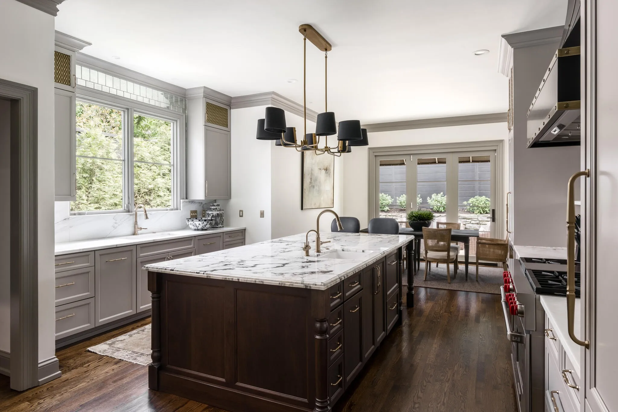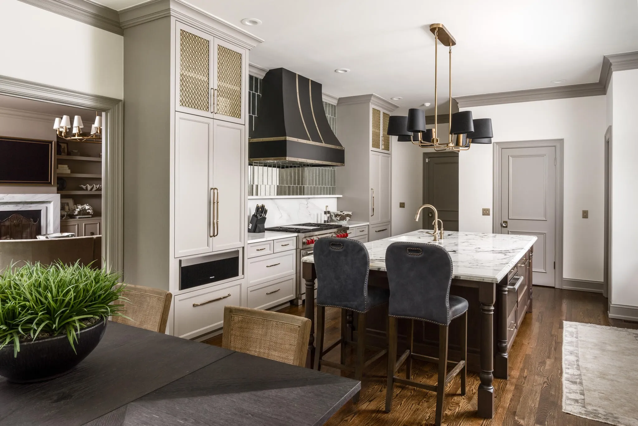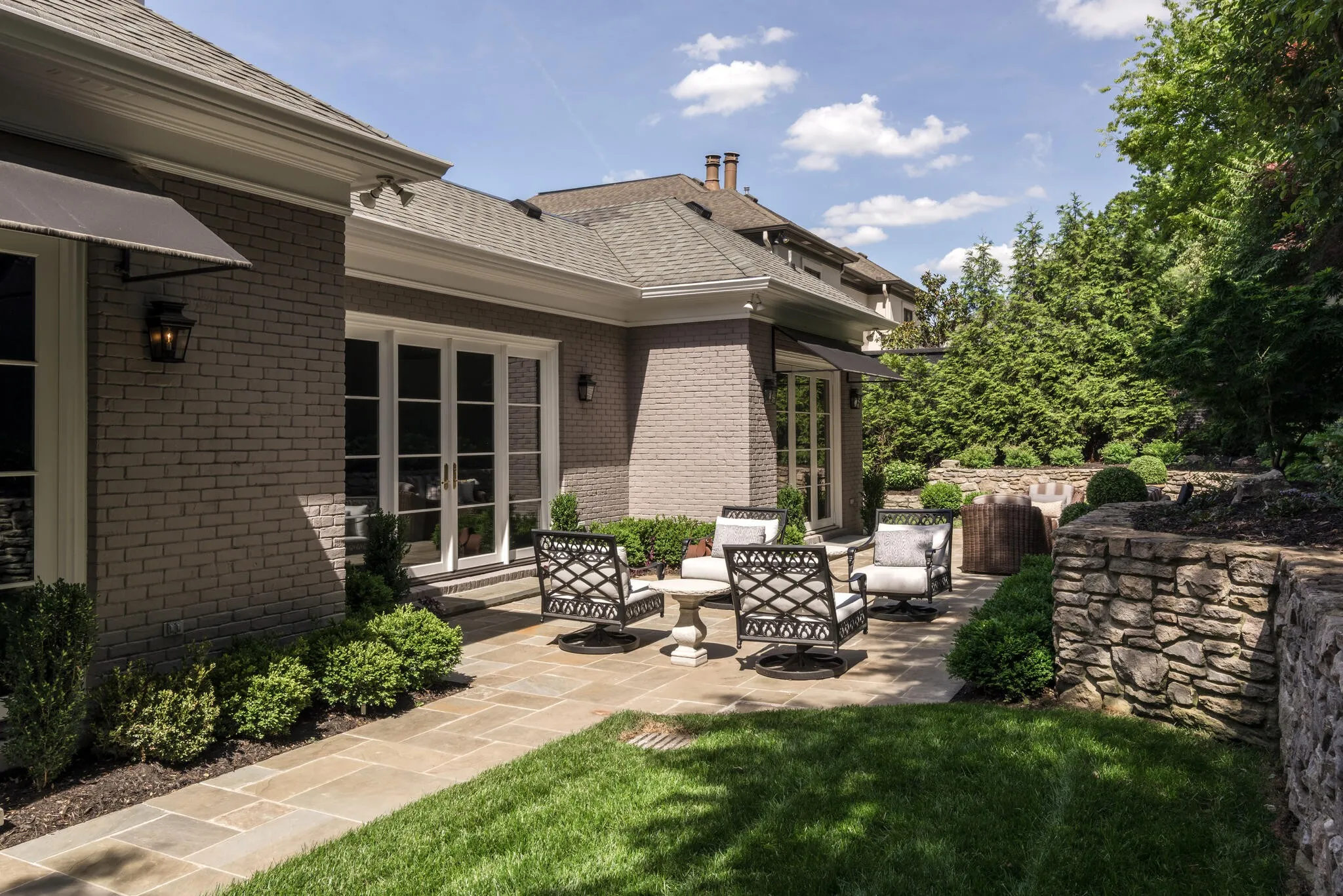 Stunning renovation in Gated Community in the Heart of Green Hills! Renovated for low maintenance this gorgeous Georgian-style home spares no expense. Designer finishes include Farrow & Ball paint, Emtek door hardware, slate & stone front steps, cast iron railing & oversized steel front door. Lighting from John Richards, Visual Comfort & RH. Custom millwork throughout. Elevator to all 3 floors. Main living space features custom shelving w/ marble fireplace, formal dining impresses w/ RH chandelier & designer wallpaper. Also sumptuous study / library… Elegant gourmet kitchen w/ fantastic central island, icemaker, warming drawer, 6 burner wolf range w/ double oven + griddle, Subzero paneled fridge w/ 2 freezer drawers. Primary suite w/ designer grass-cloth wallpaper, automatic shades & gorgeous luxury bath w/ marble tub & walk in shower leading into large custom closet. Collapsing slider door leads to fully fenced & private courtyard + full lot irrigation w/ custom landscape lighting