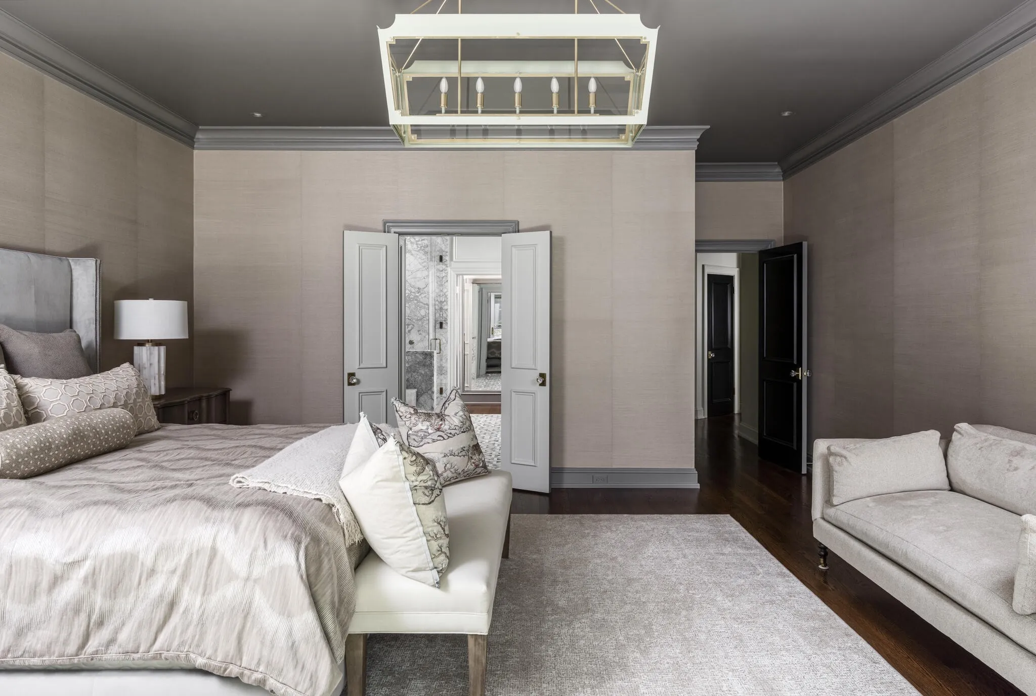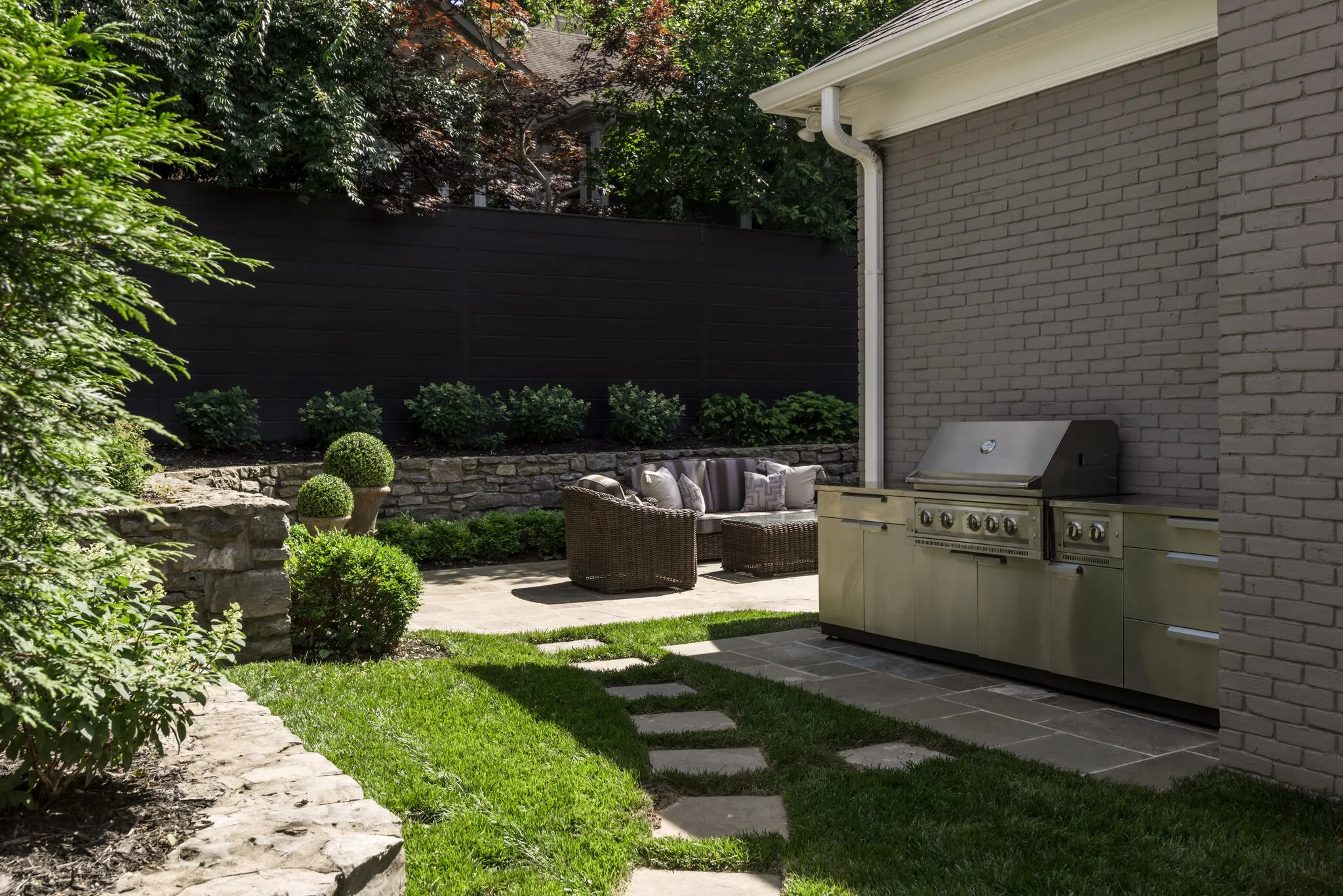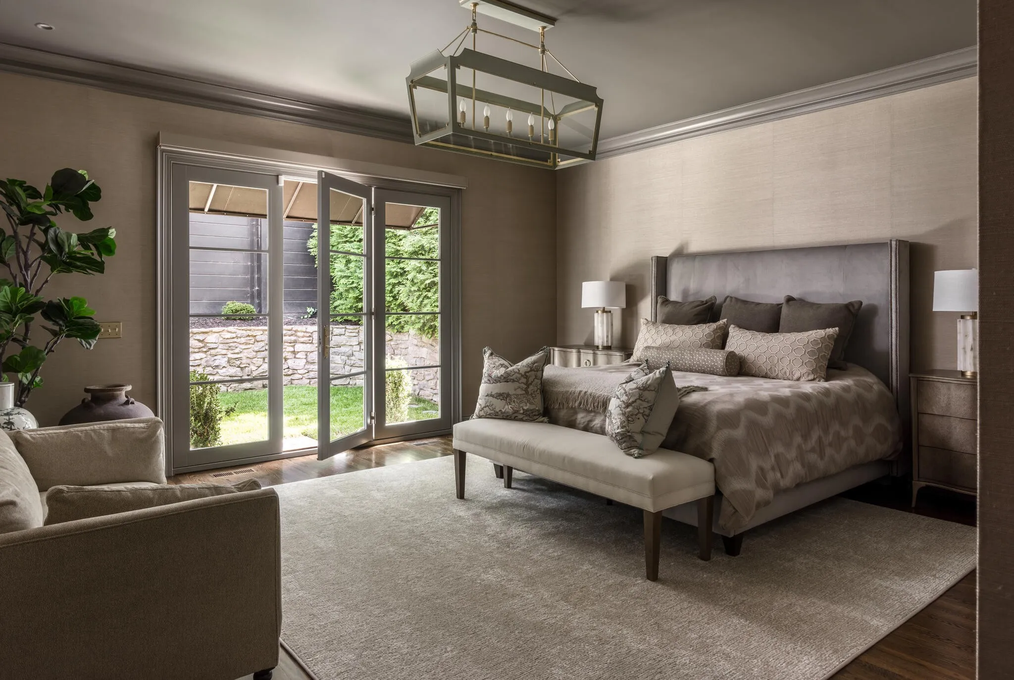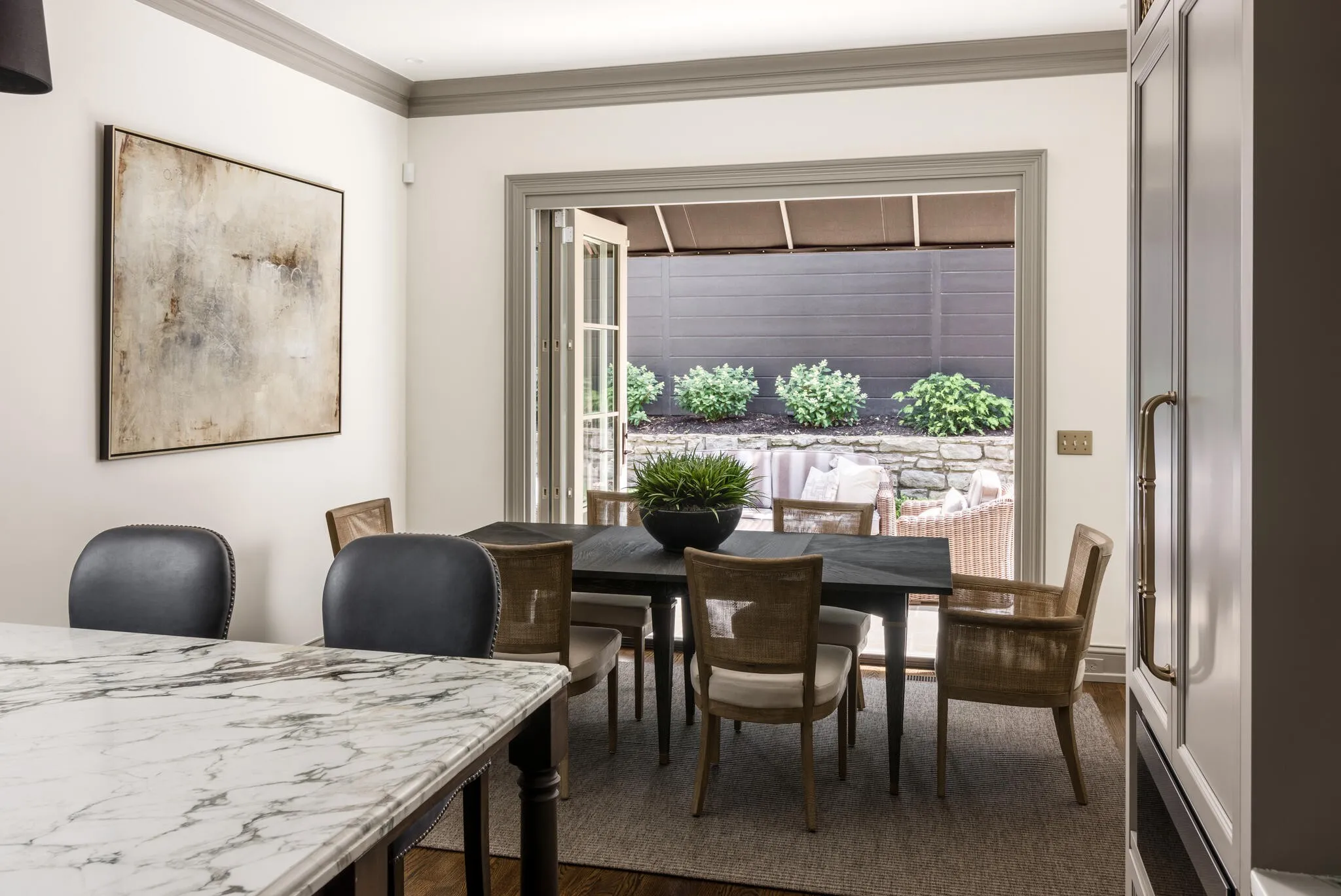 Stunning renovation in Gated Community in the Heart of Green Hills! Renovated for low maintenance this gorgeous Georgian-style home spares no expense. Designer finishes include Farrow & Ball paint, Emtek door hardware, slate & stone front steps, cast iron railing & oversized steel front door. Lighting from John Richards, Visual Comfort & RH. Custom millwork throughout. Elevator to all 3 floors. Main living space features custom shelving w/ marble fireplace, formal dining impresses w/ RH chandelier & designer wallpaper. Also sumptuous study / library… Elegant gourmet kitchen w/ fantastic central island, icemaker, warming drawer, 6 burner wolf range w/ double oven + griddle, Subzero paneled fridge w/ 2 freezer drawers. Primary suite w/ designer grass-cloth wallpaper, automatic shades & gorgeous luxury bath w/ marble tub & walk in shower leading into large custom closet. Collapsing slider door leads to fully fenced & private courtyard + full lot irrigation w/ custom landscape lighting